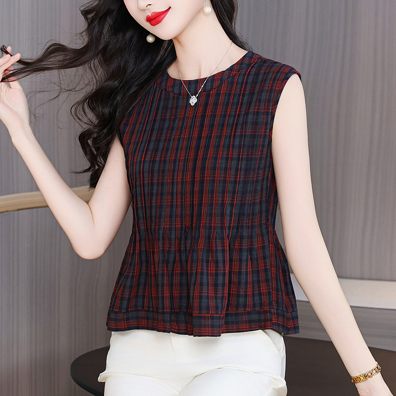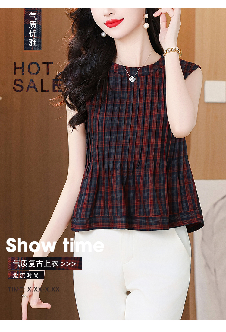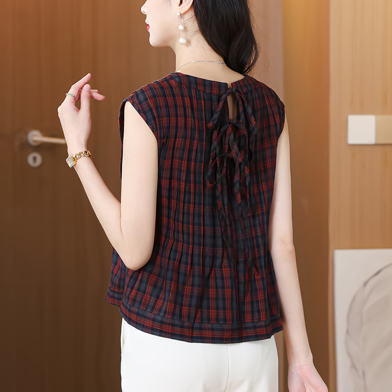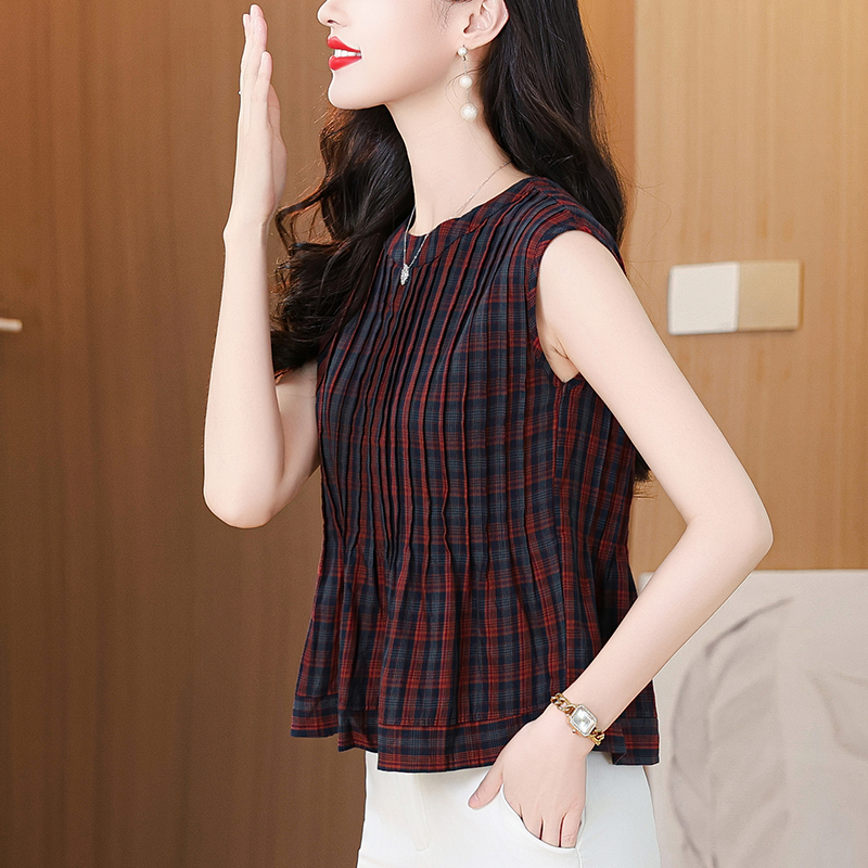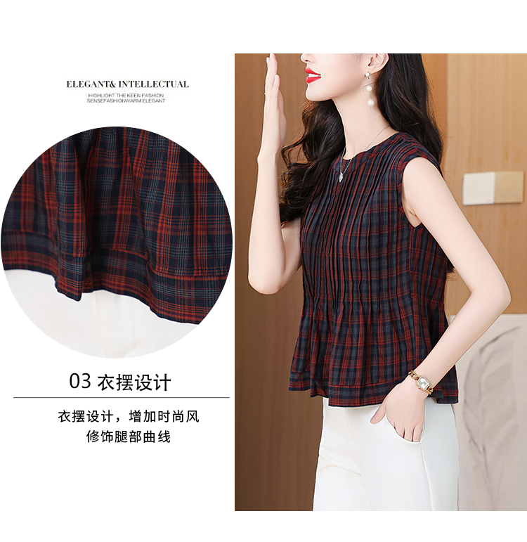2026 새로운 중식 레트로 프린트 연령 감소 민소매 레이스 조끼 패션 캐주얼 작은 셔츠
