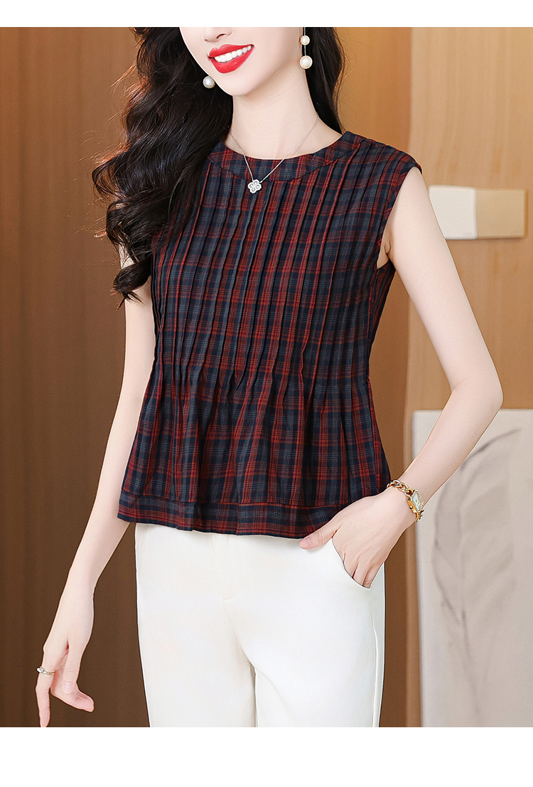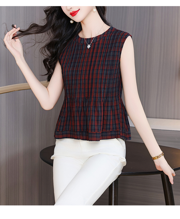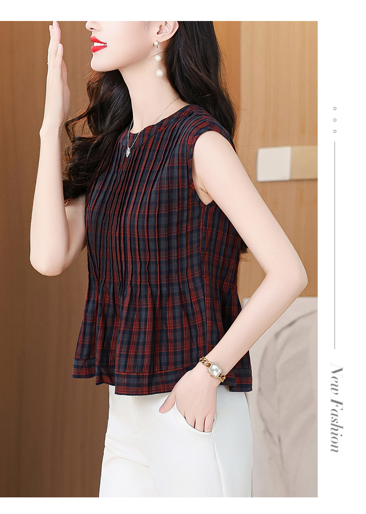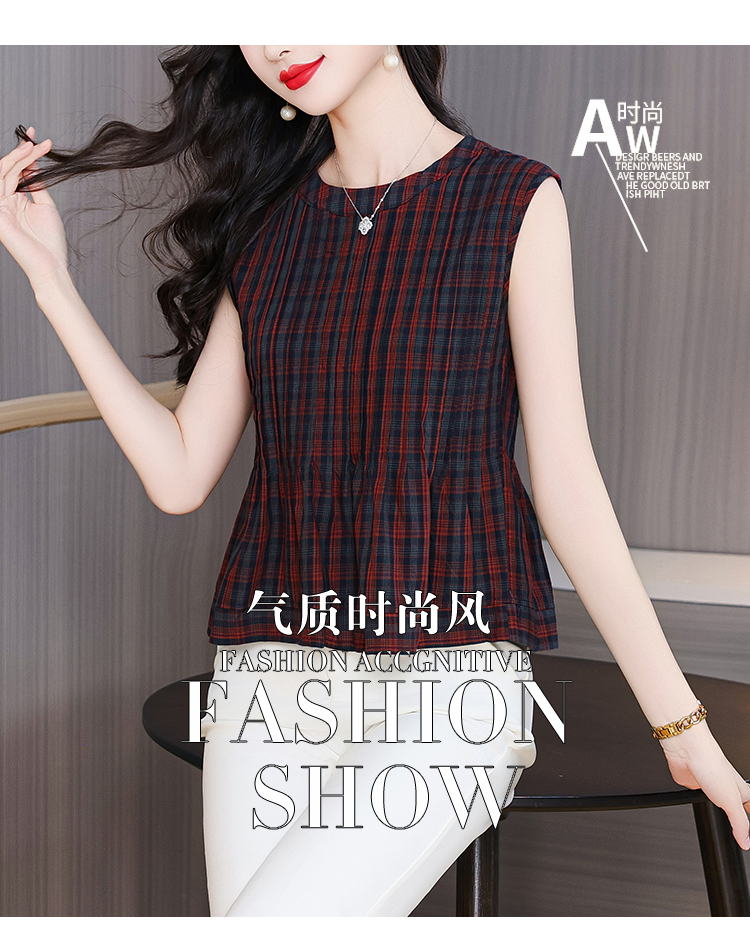 2026 새로운 중식 레트로 프린트 연령 감소 민소매 레이스 조끼 패션 캐주얼 작은 셔츠