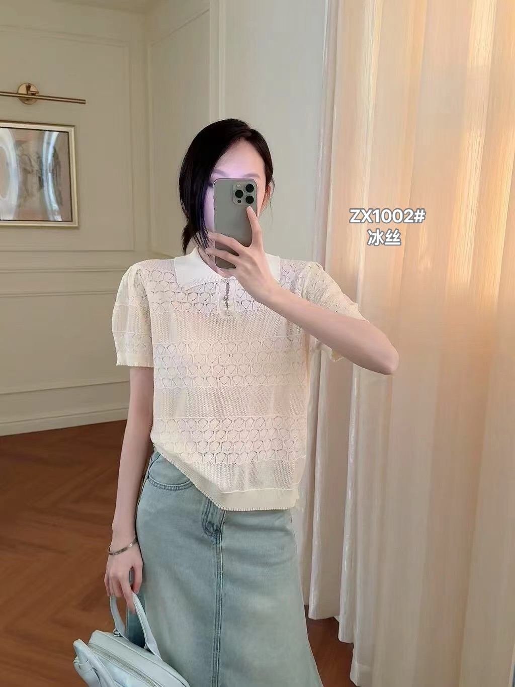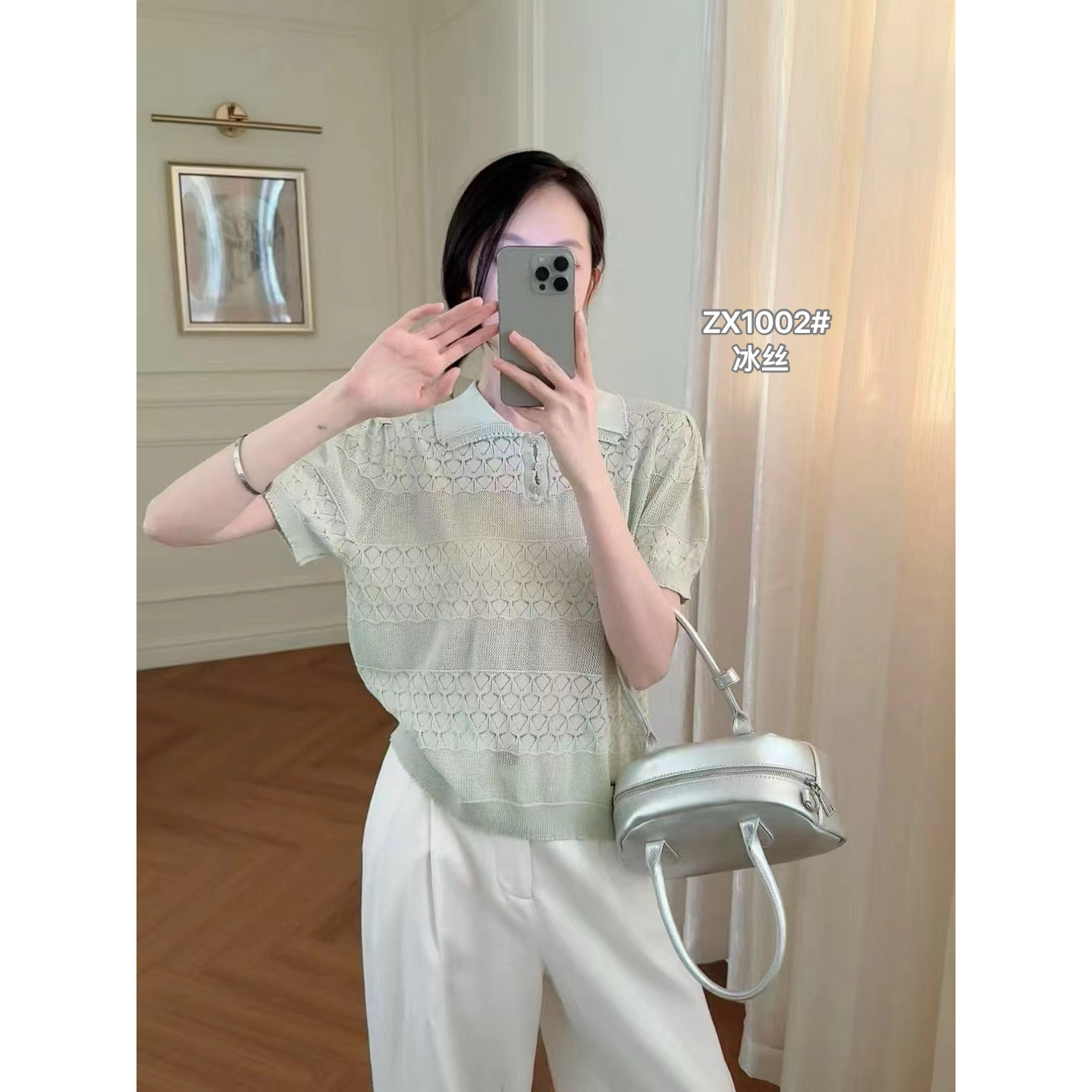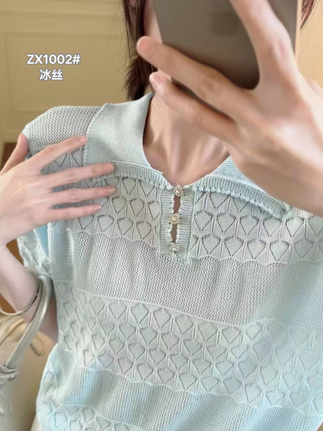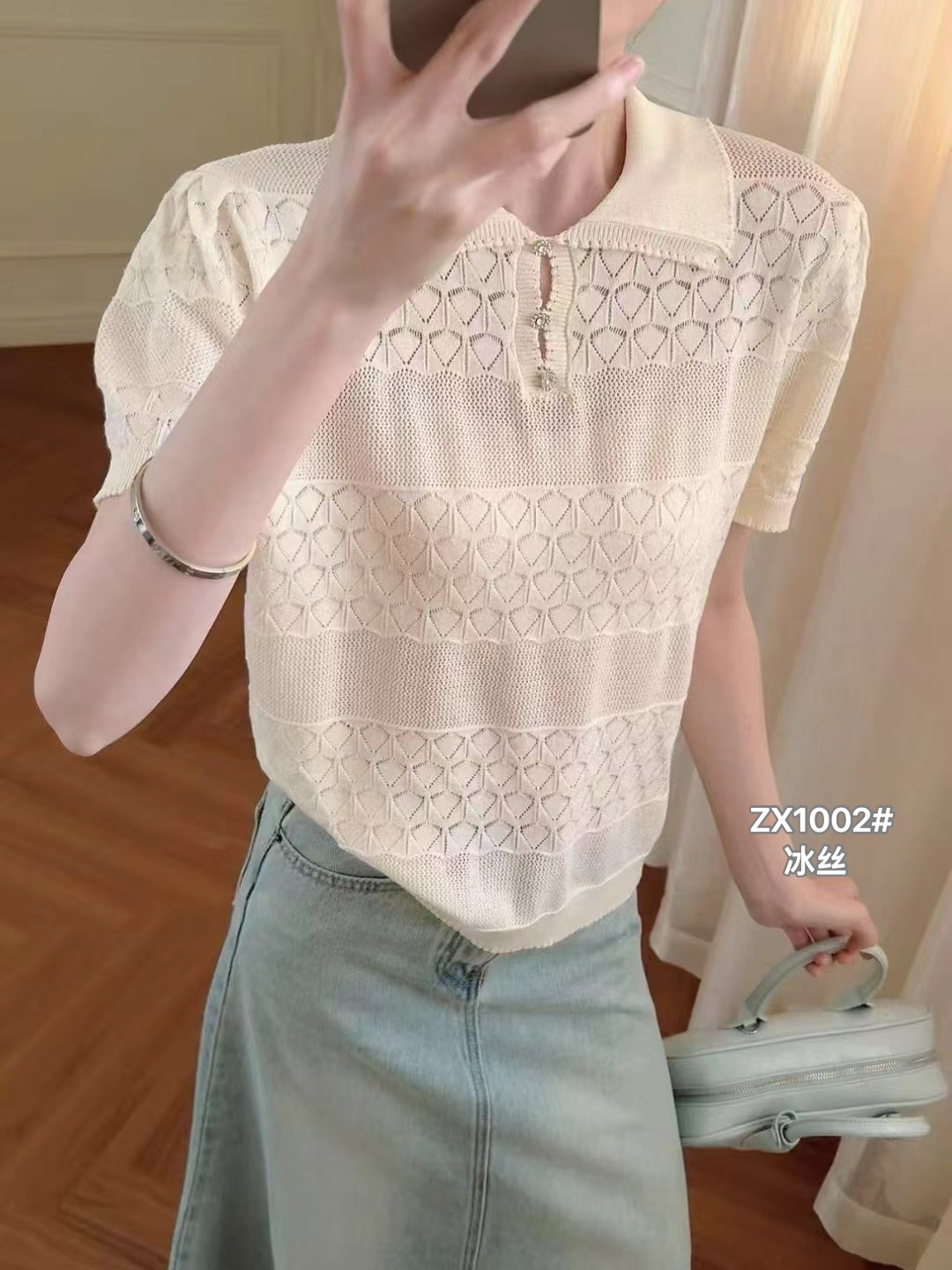 POLO 칼라 니트 스웨터 반팔 티셔츠 여성 2026 새로운 여름 얇은 스타일 홀로우 아웃 디자인 센스 맨위
