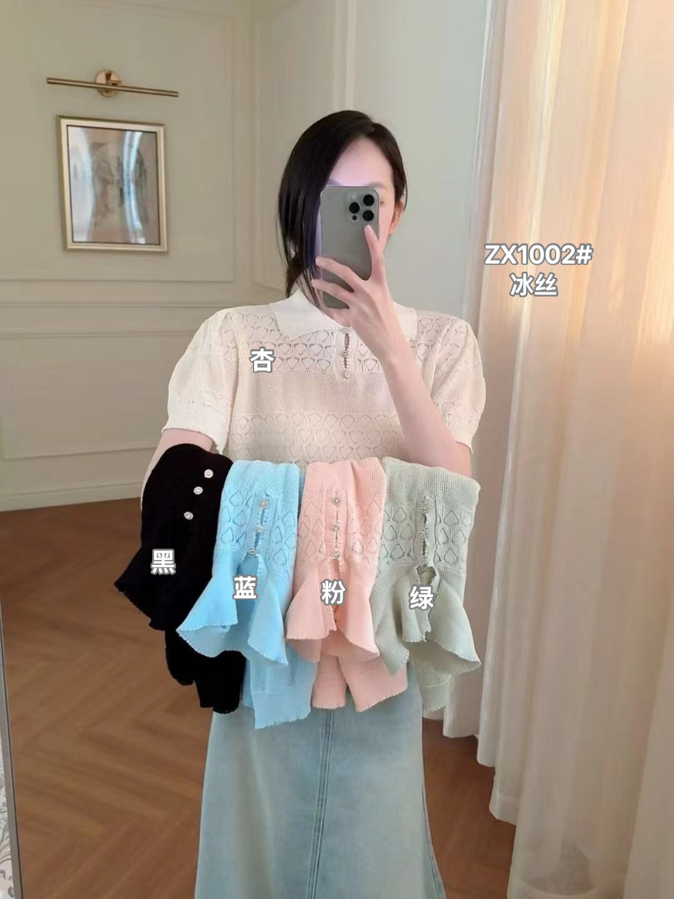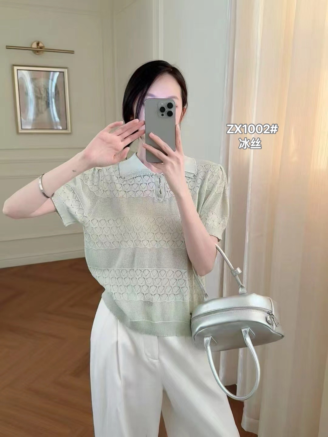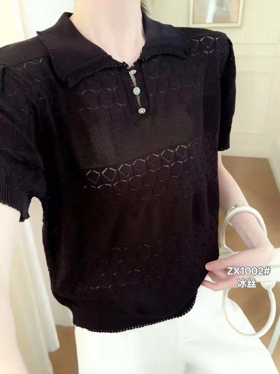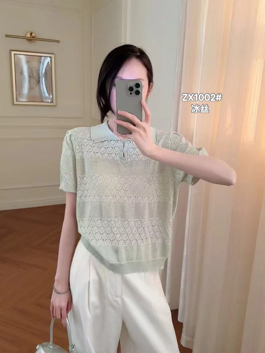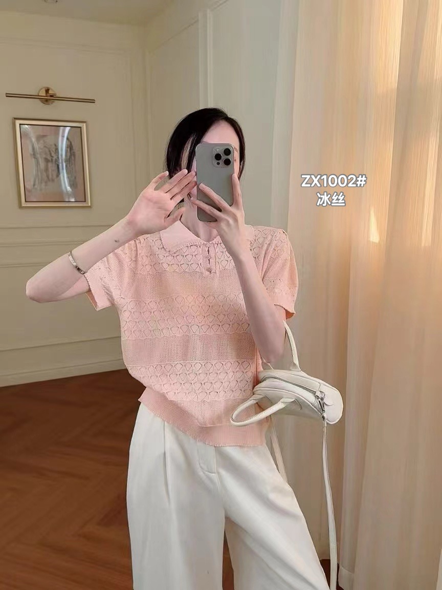 POLO 칼라 니트 스웨터 반팔 티셔츠 여성 2026 새로운 여름 얇은 스타일 홀로우 아웃 디자인 센스 맨위