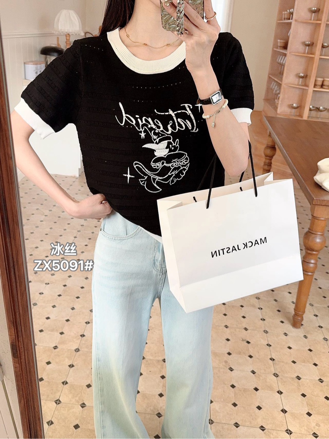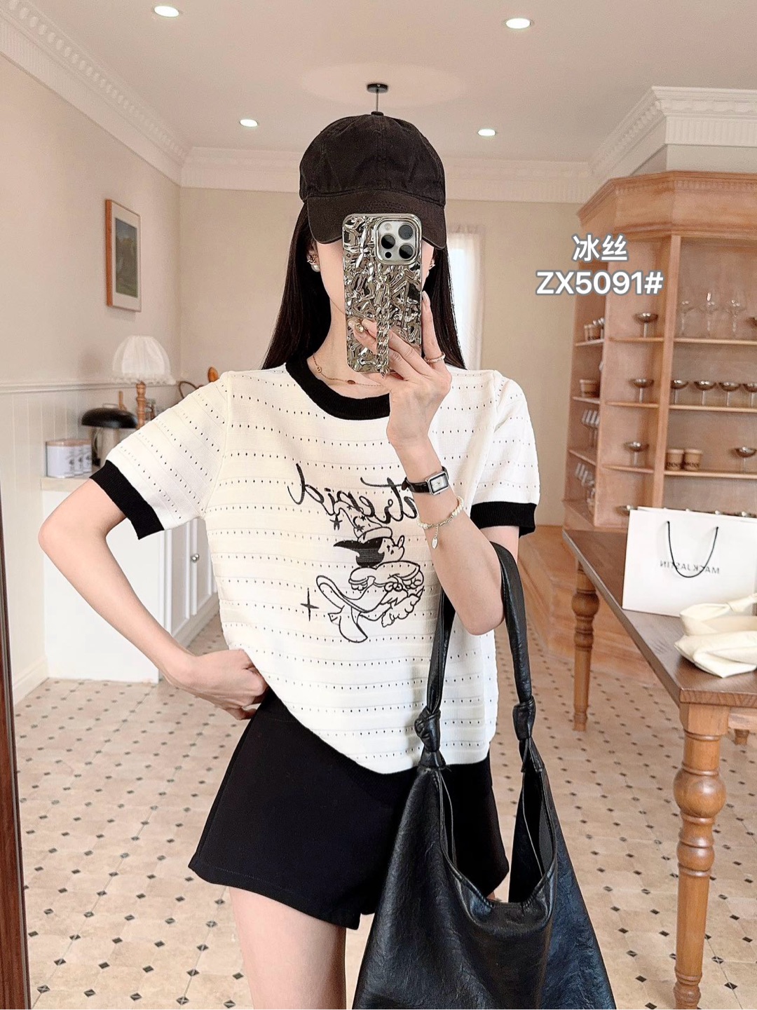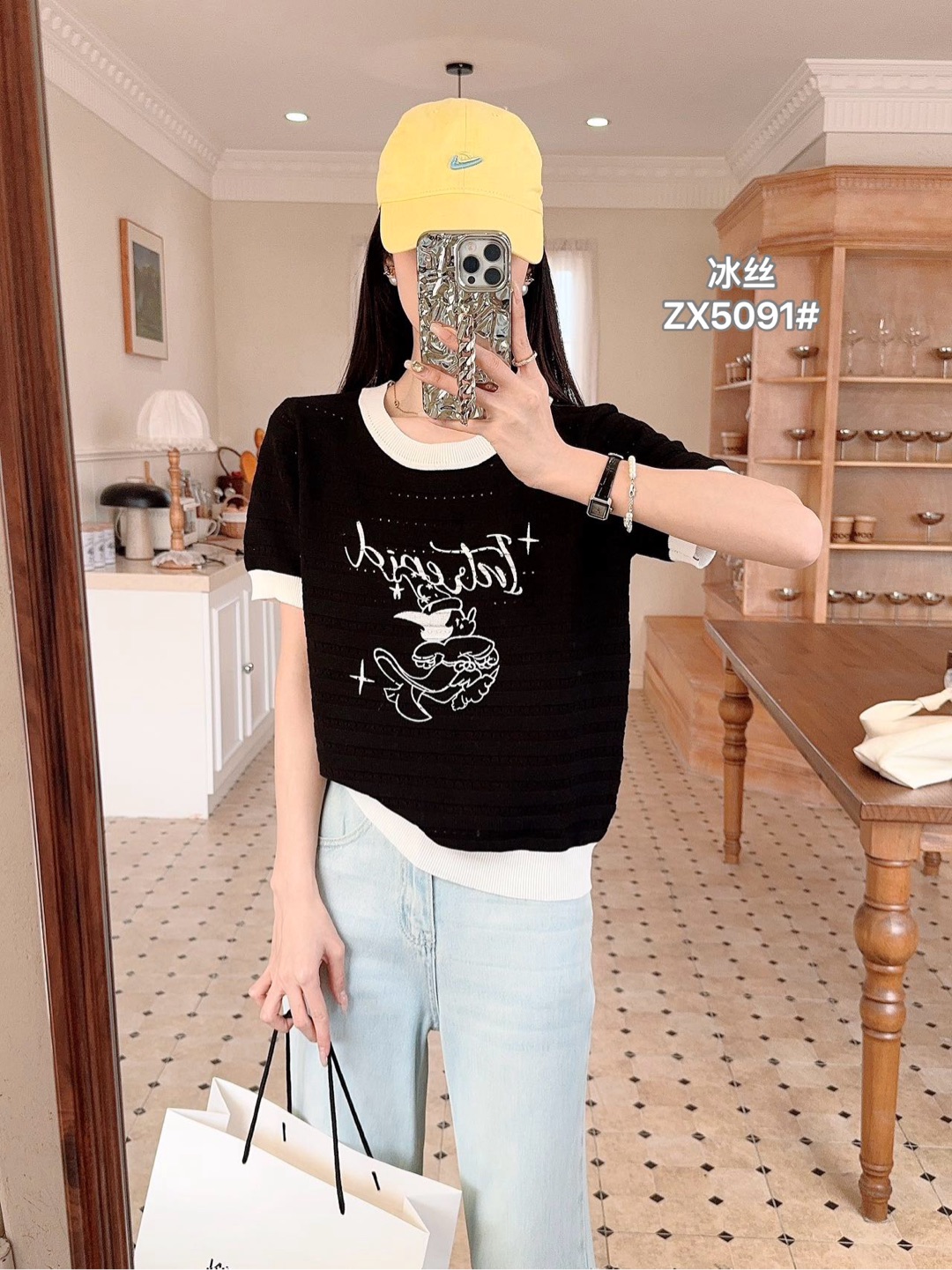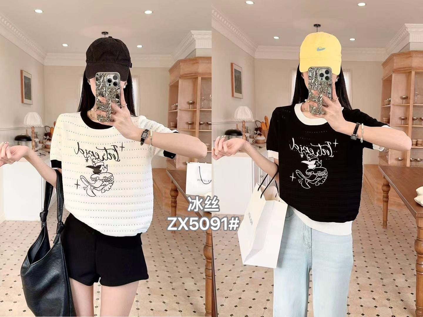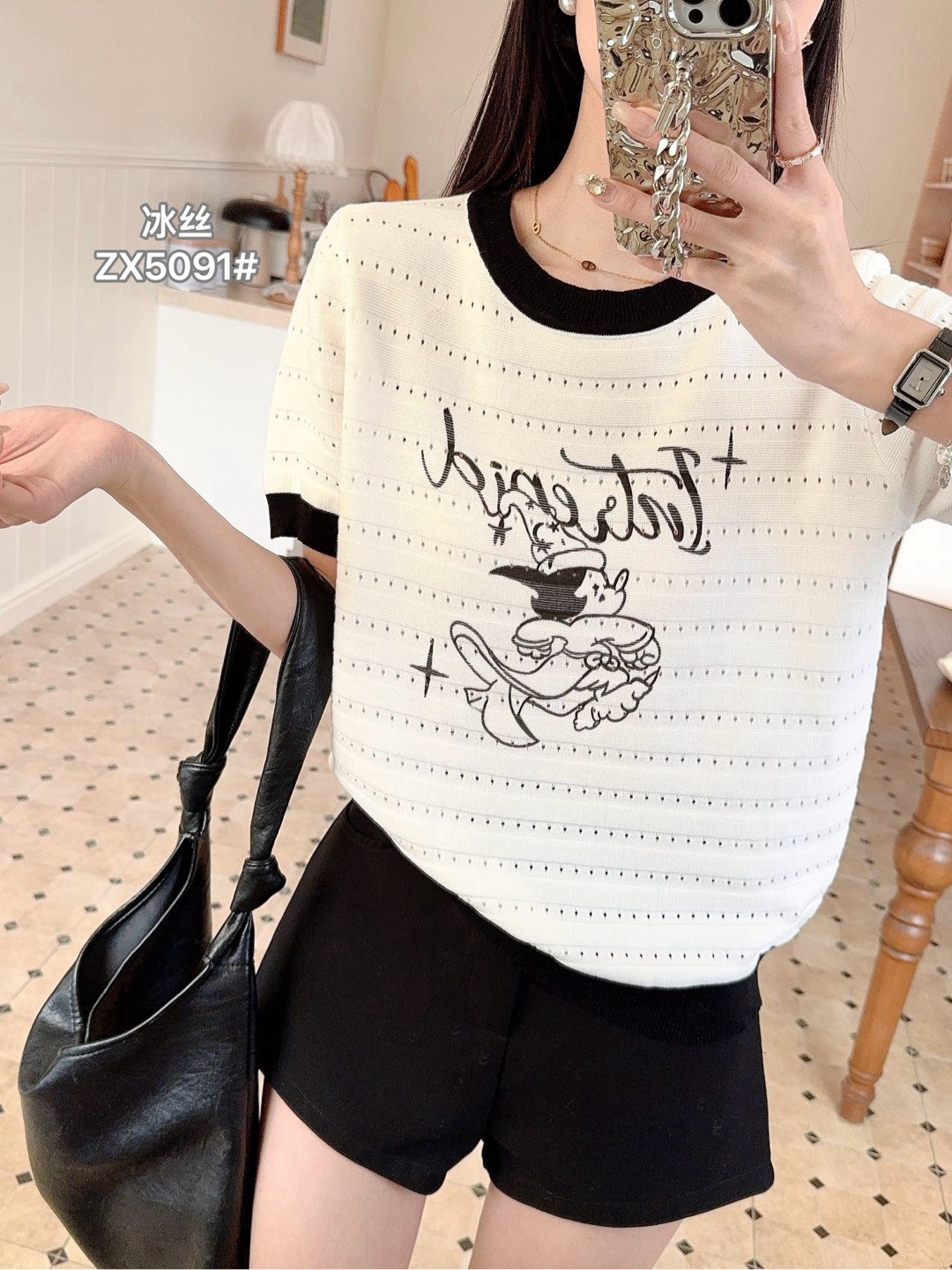 배색 반팔 니트 티셔츠 여성 여름 새로운 라운드 넥 디자인 센스 작은 대중 홀로우 아웃 몸매 가꾸기 쇼트 스타일 핫걸 맨위