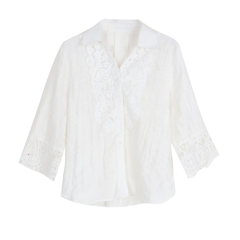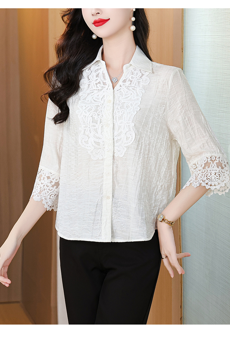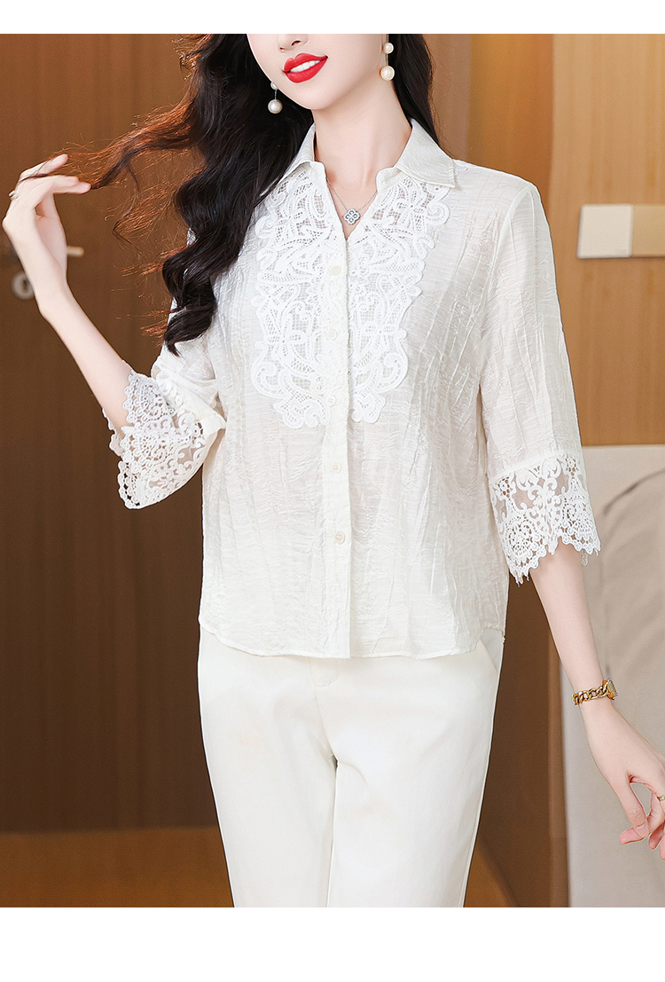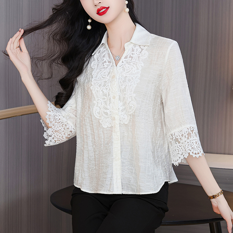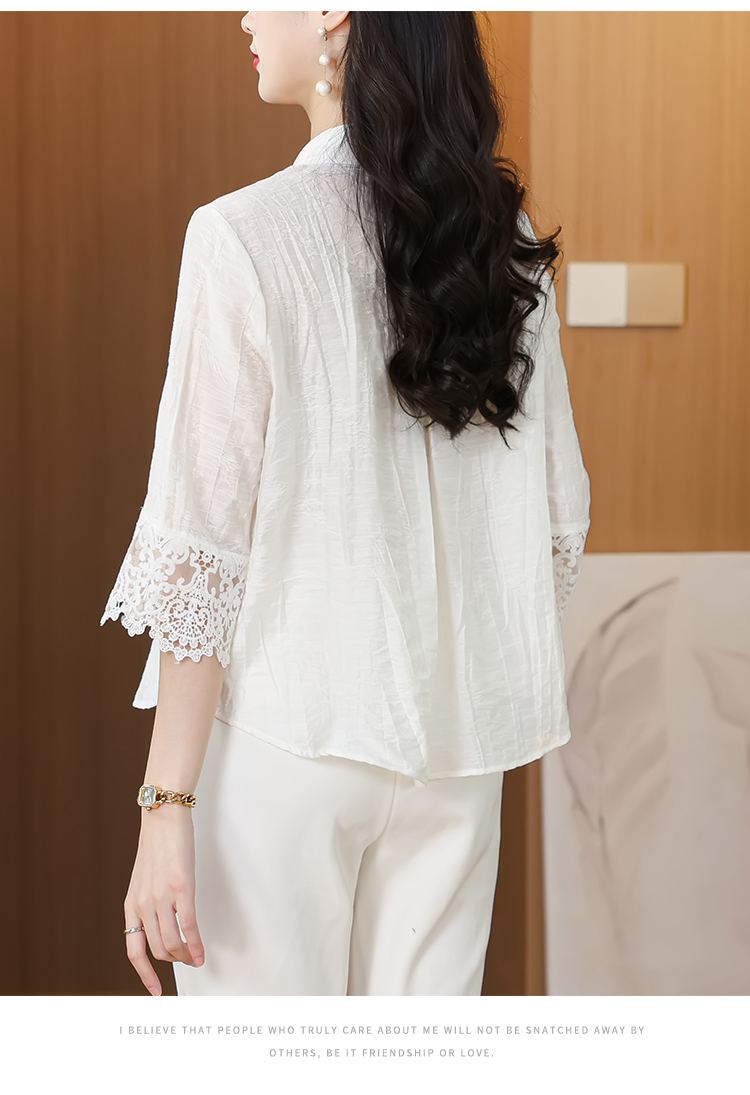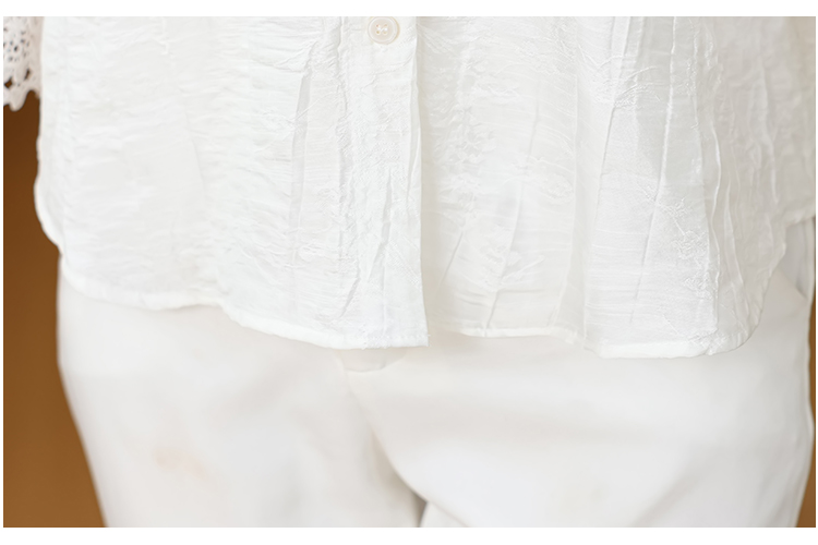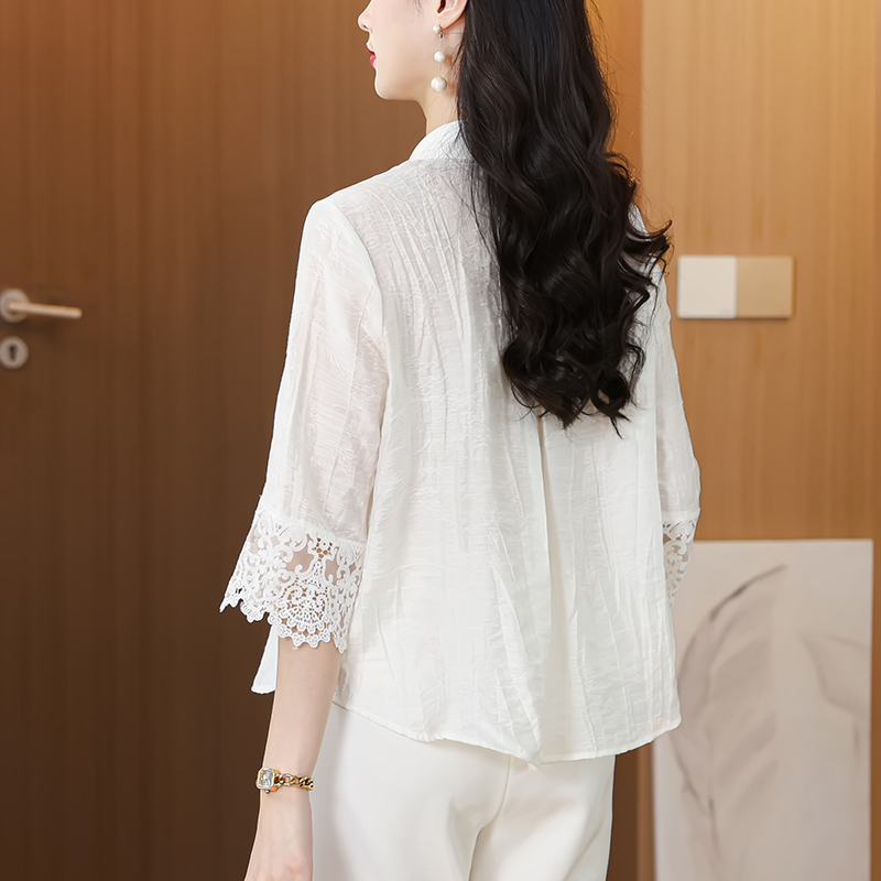 2026 여성 의류 여름 부드러운 바람 레이스업 레이스 자카드 반팔 셔츠 얇고 가벼운 편안함 맨위 여성