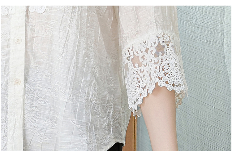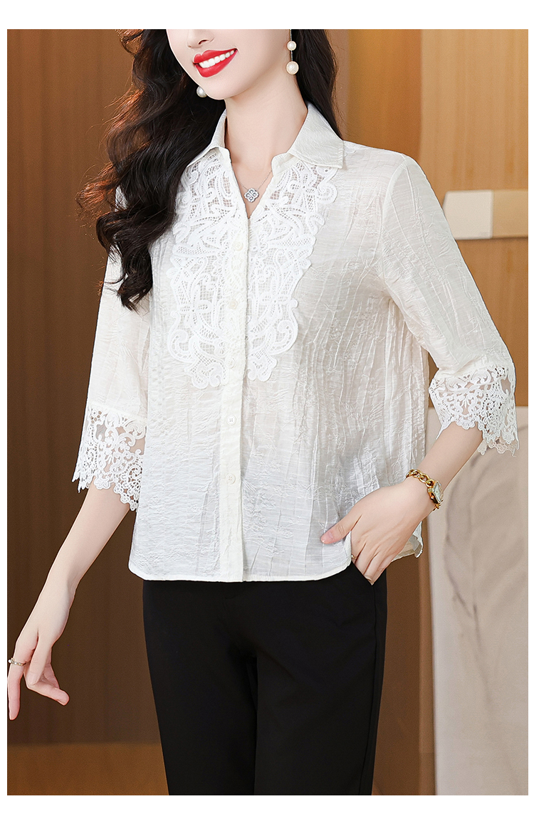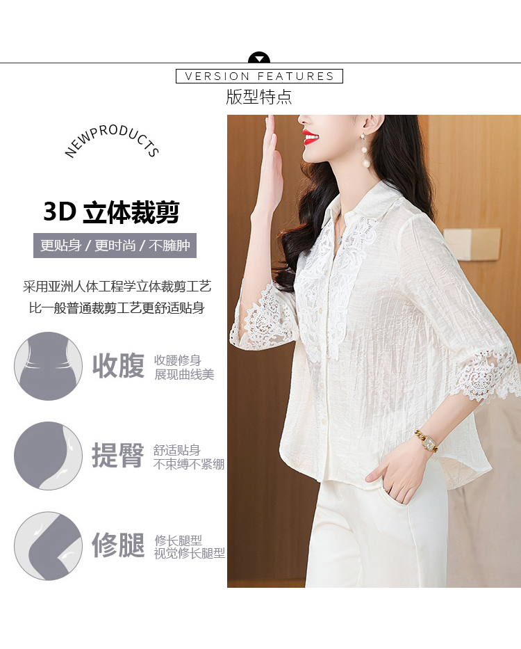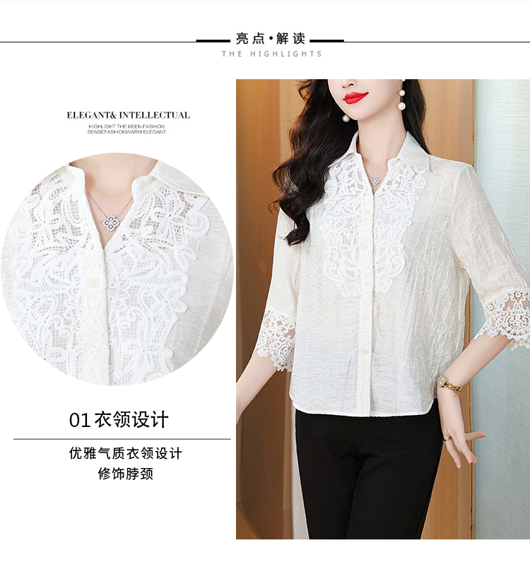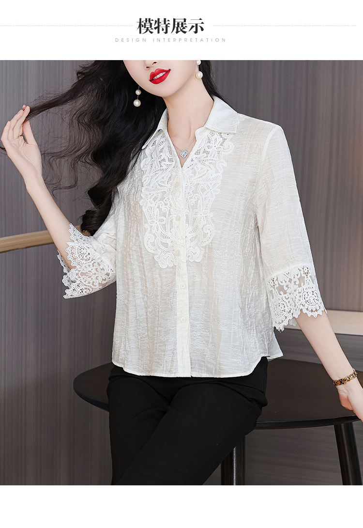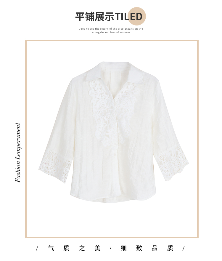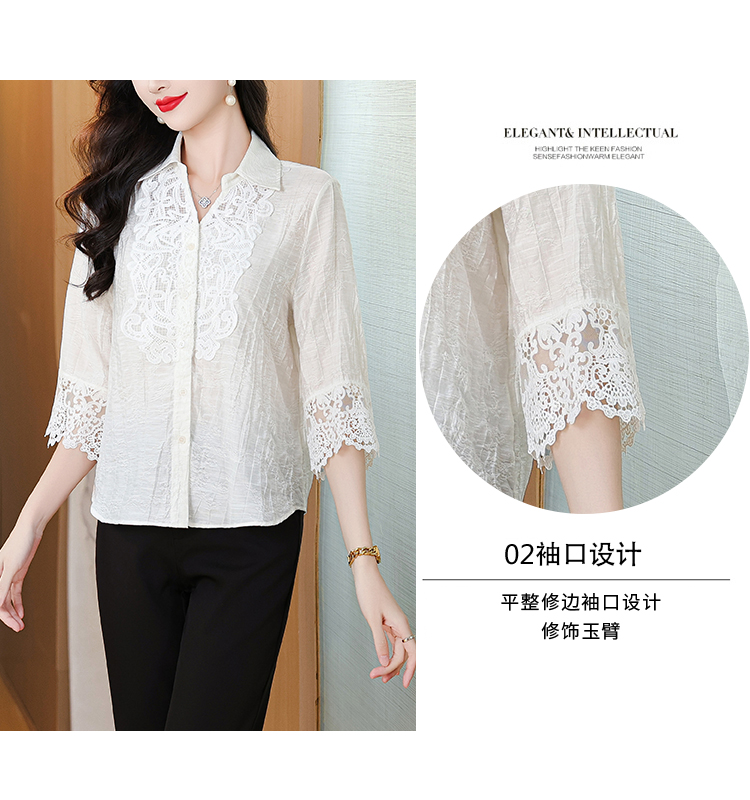 2026 여성 의류 여름 부드러운 바람 레이스업 레이스 자카드 반팔 셔츠 얇고 가벼운 편안함 맨위 여성