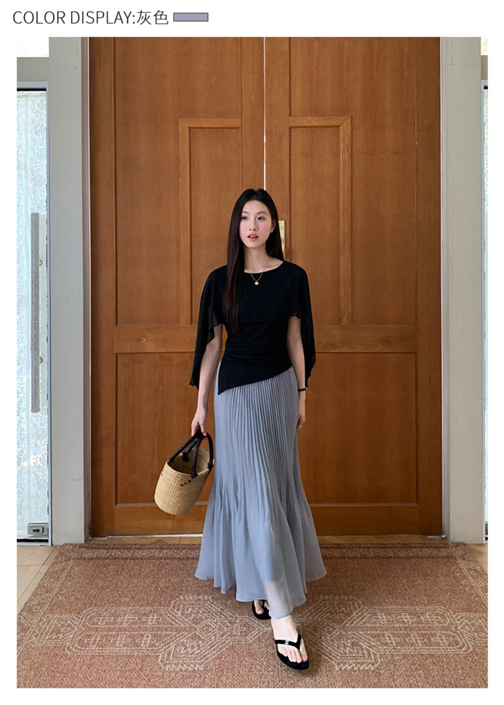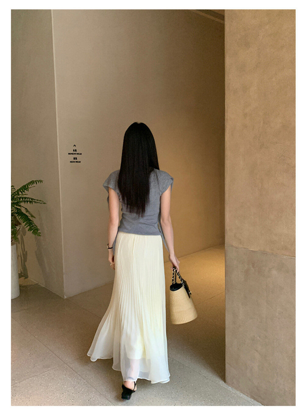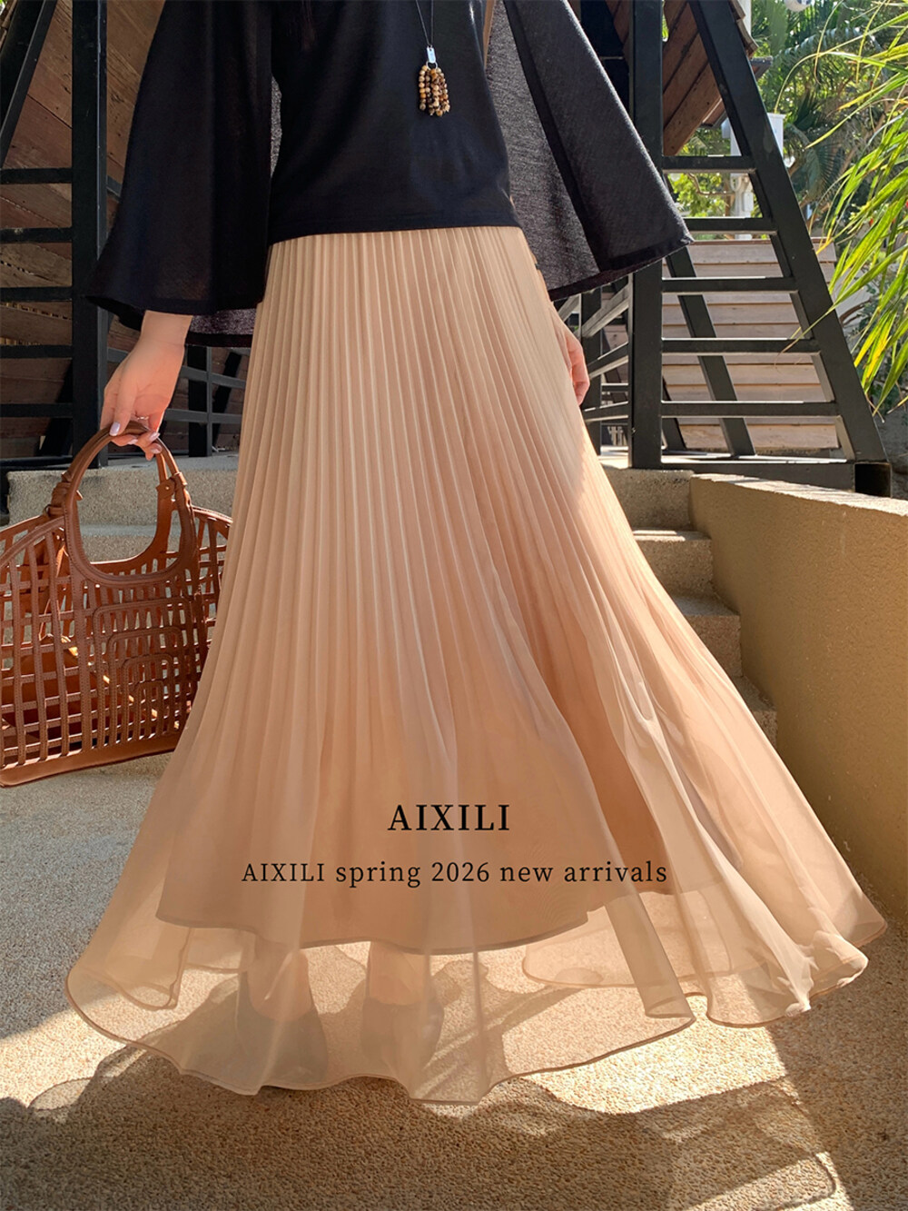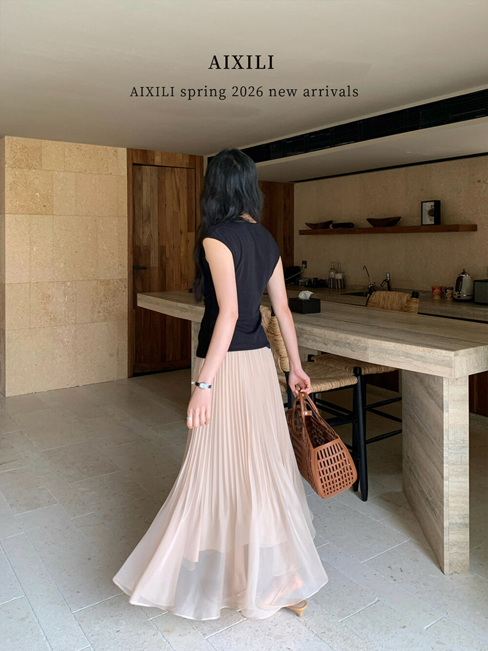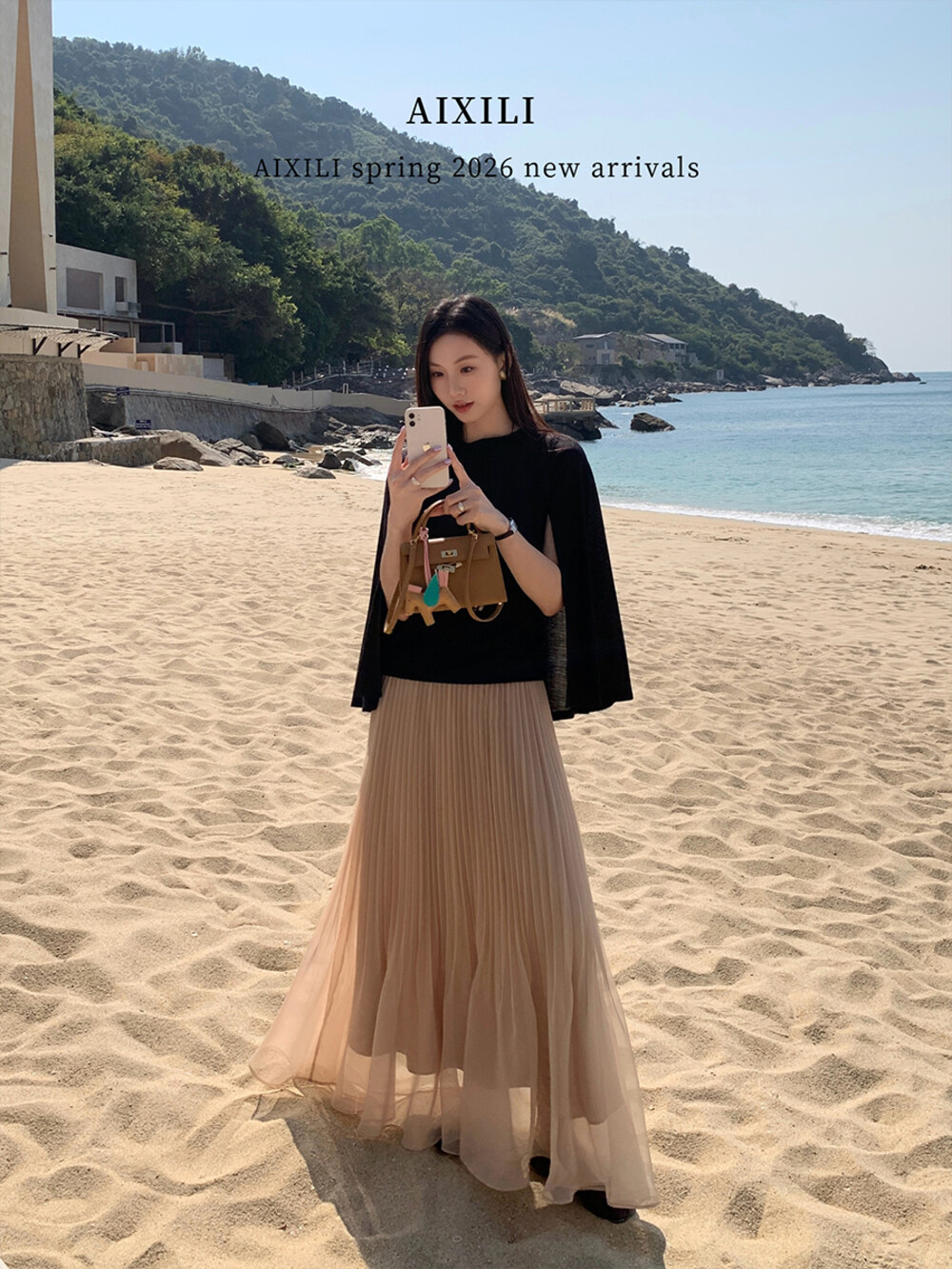 사랑 시리 2026 봄 요정 가스 우아함 허리밴드 디자인 플리츠 세련된 센스 주름 슬림해 보이는 반신 스커트