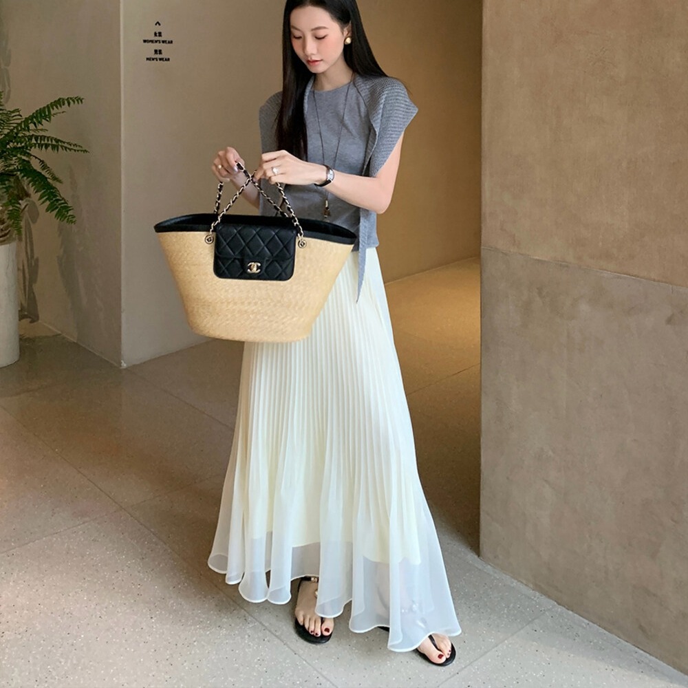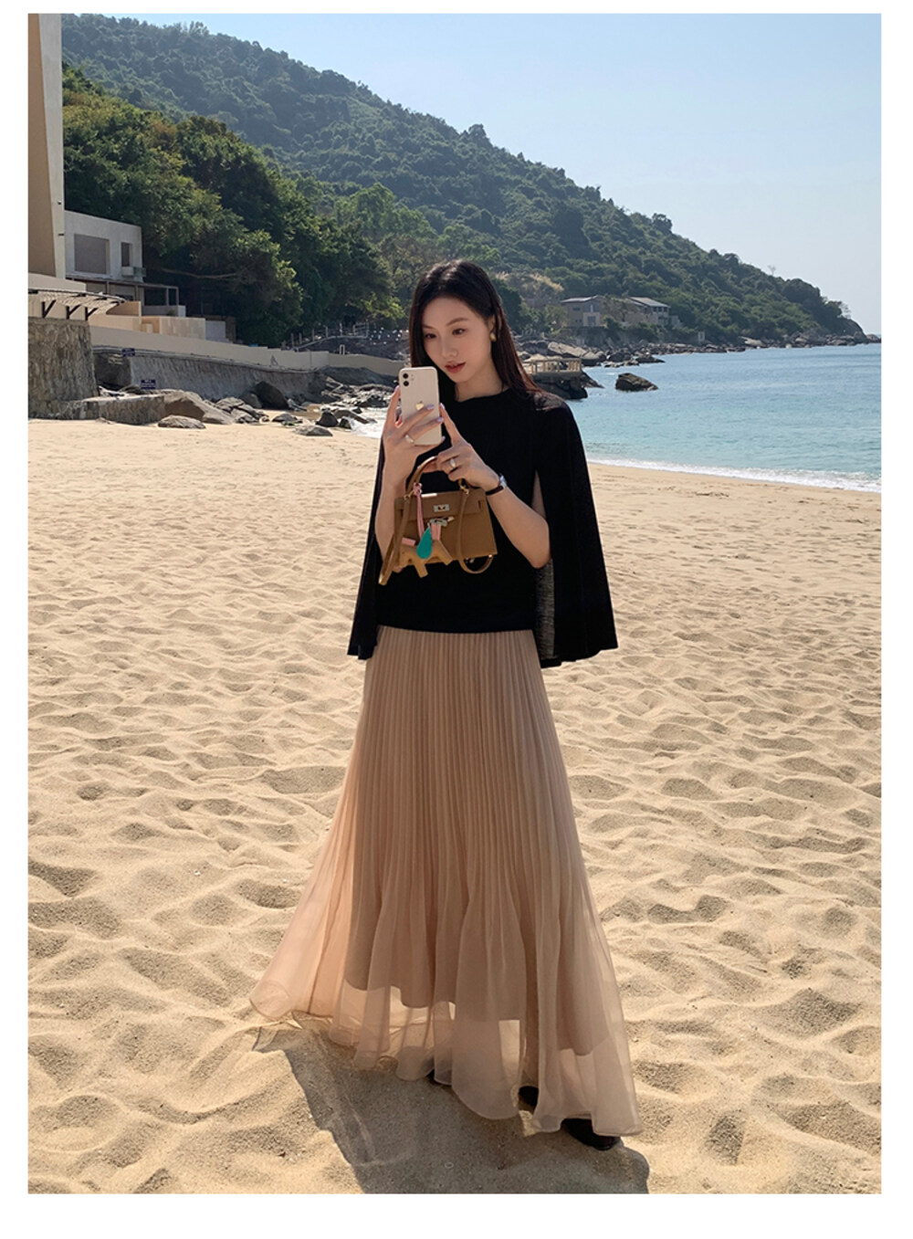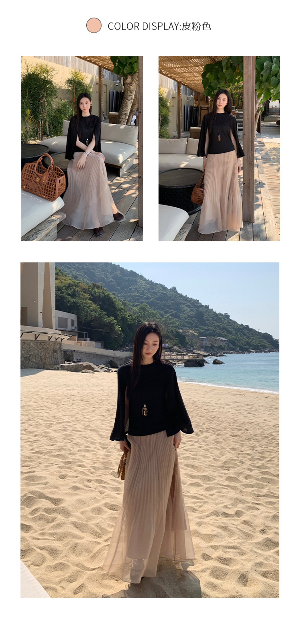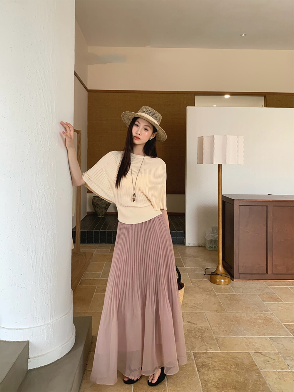 사랑 시리 2026 봄 요정 가스 우아함 허리밴드 디자인 플리츠 세련된 센스 주름 슬림해 보이는 반신 스커트