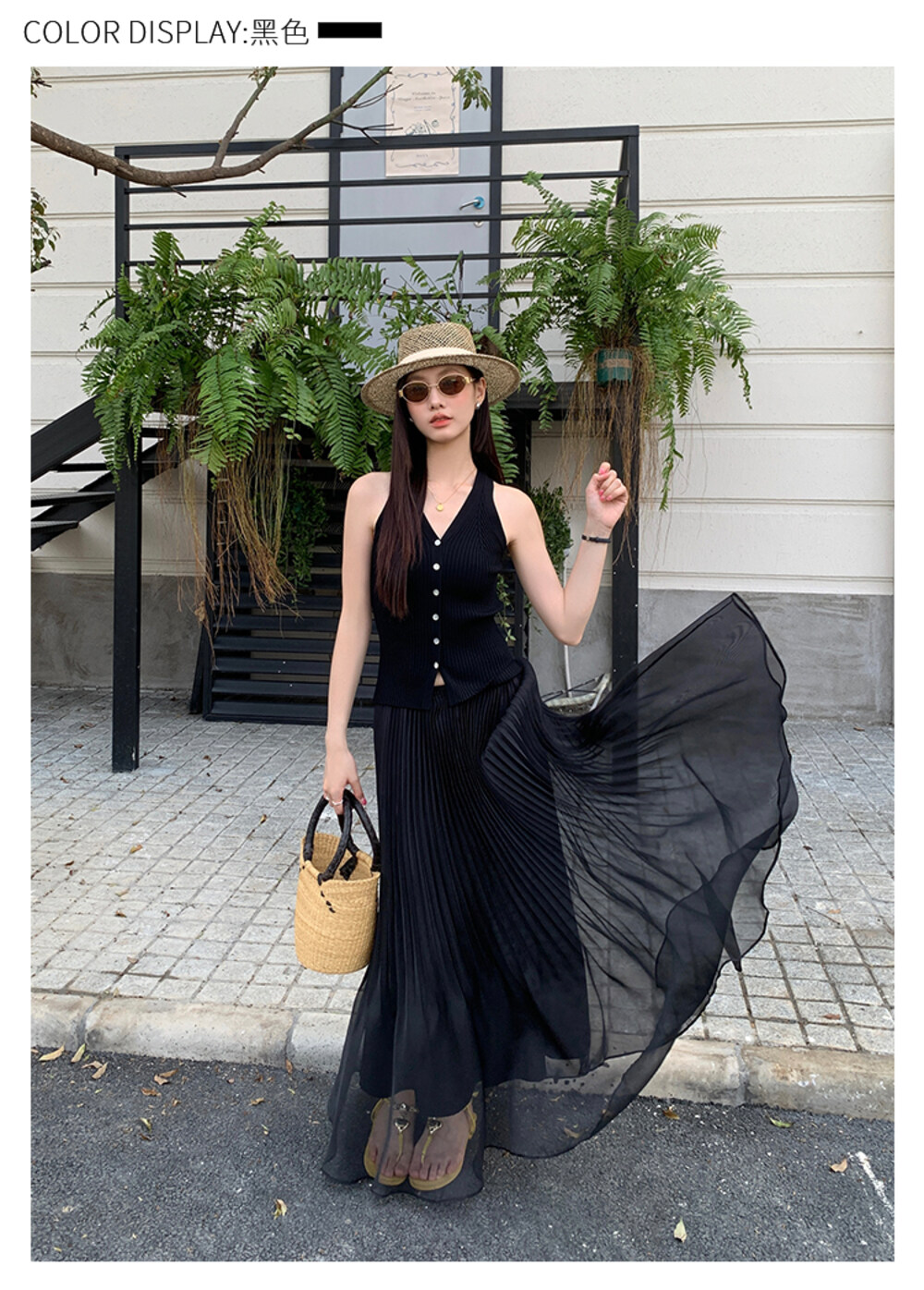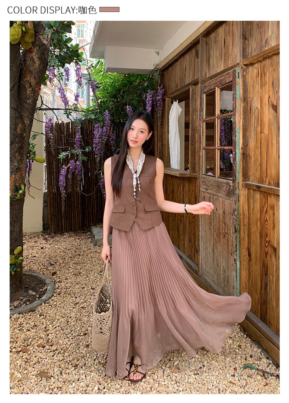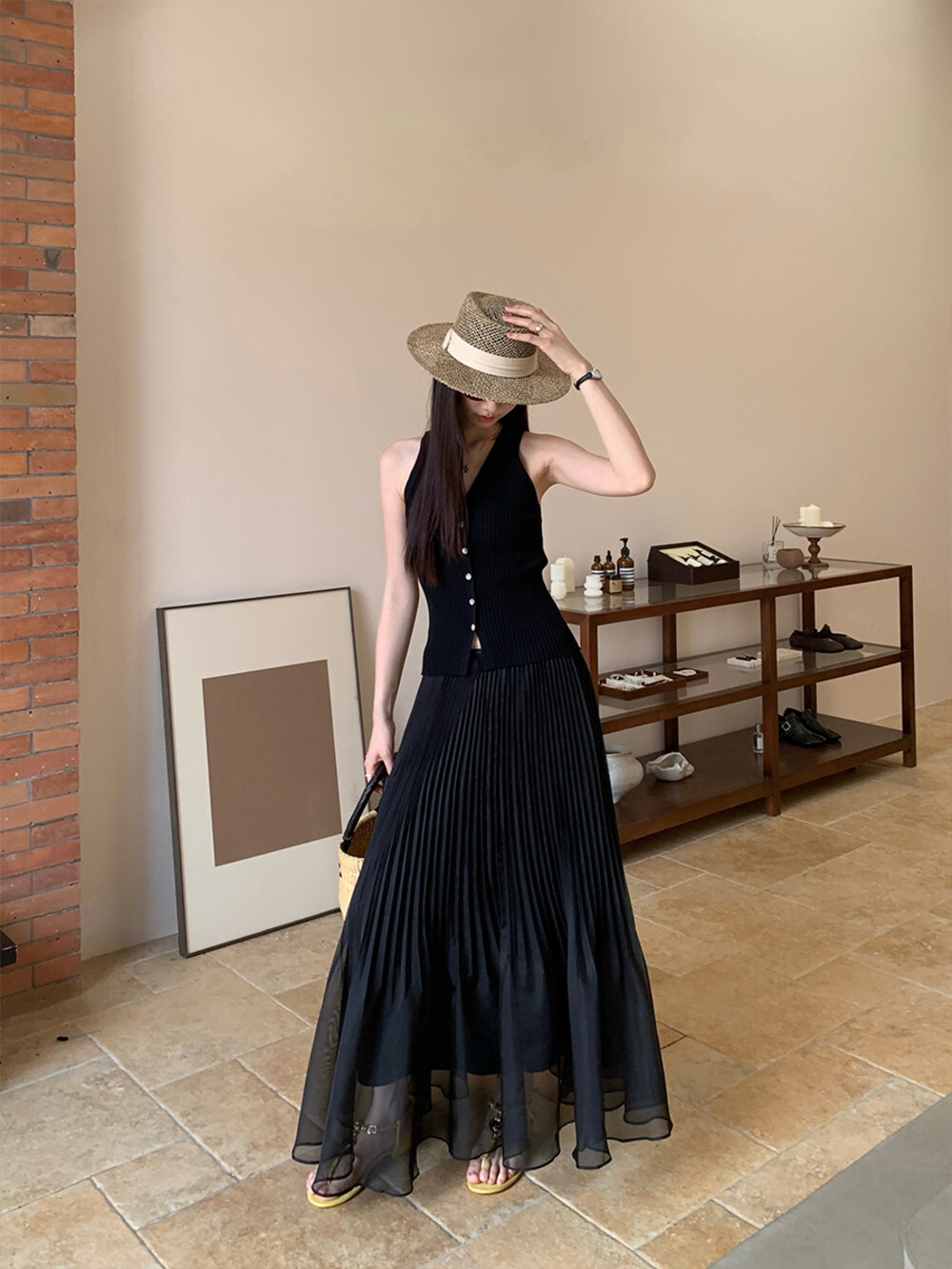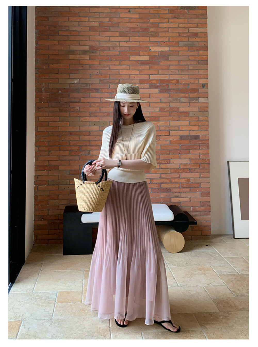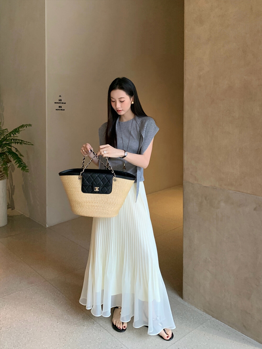 사랑 시리 2026 봄 요정 가스 우아함 허리밴드 디자인 플리츠 세련된 센스 주름 슬림해 보이는 반신 스커트