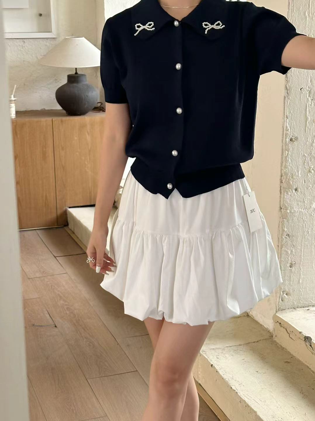 맨위 2026 여름 프랑스식 레트로 POLO 칼라 슬림해 보이는 다용도 풀오버 반팔 니트 스웨터