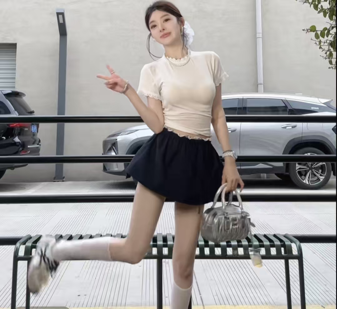 잉 어린이 맞춤 일몰 독백 고급 센스 품격 홀로우 아웃 루즈핏 셔츠 패션 캐주얼 하이웨이스트 미니 스커트