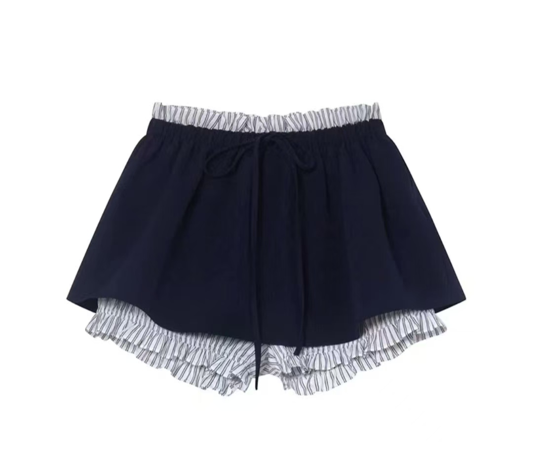 원 유안 여름 달콤한 차 발레 바람 학원 스타일 꽃밭 치마 페이크 레이어드 허리밴드 반신 치마바지