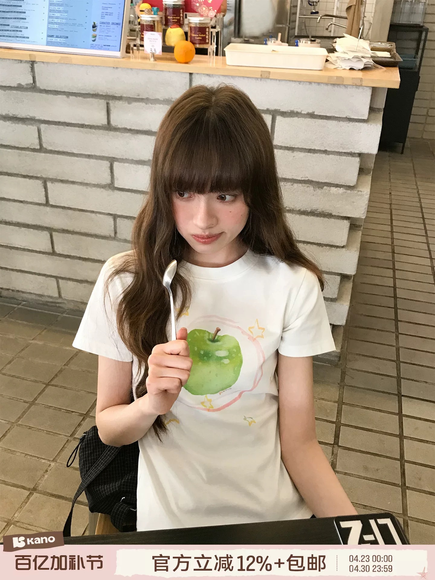 안녕하세요. 대포 오리지널 녹색 사과 프린트 반팔 티셔츠 여성 여름 새로운 미니멀리즘 디자인 센스 작은 대중 긍정적 인 어깨 의류