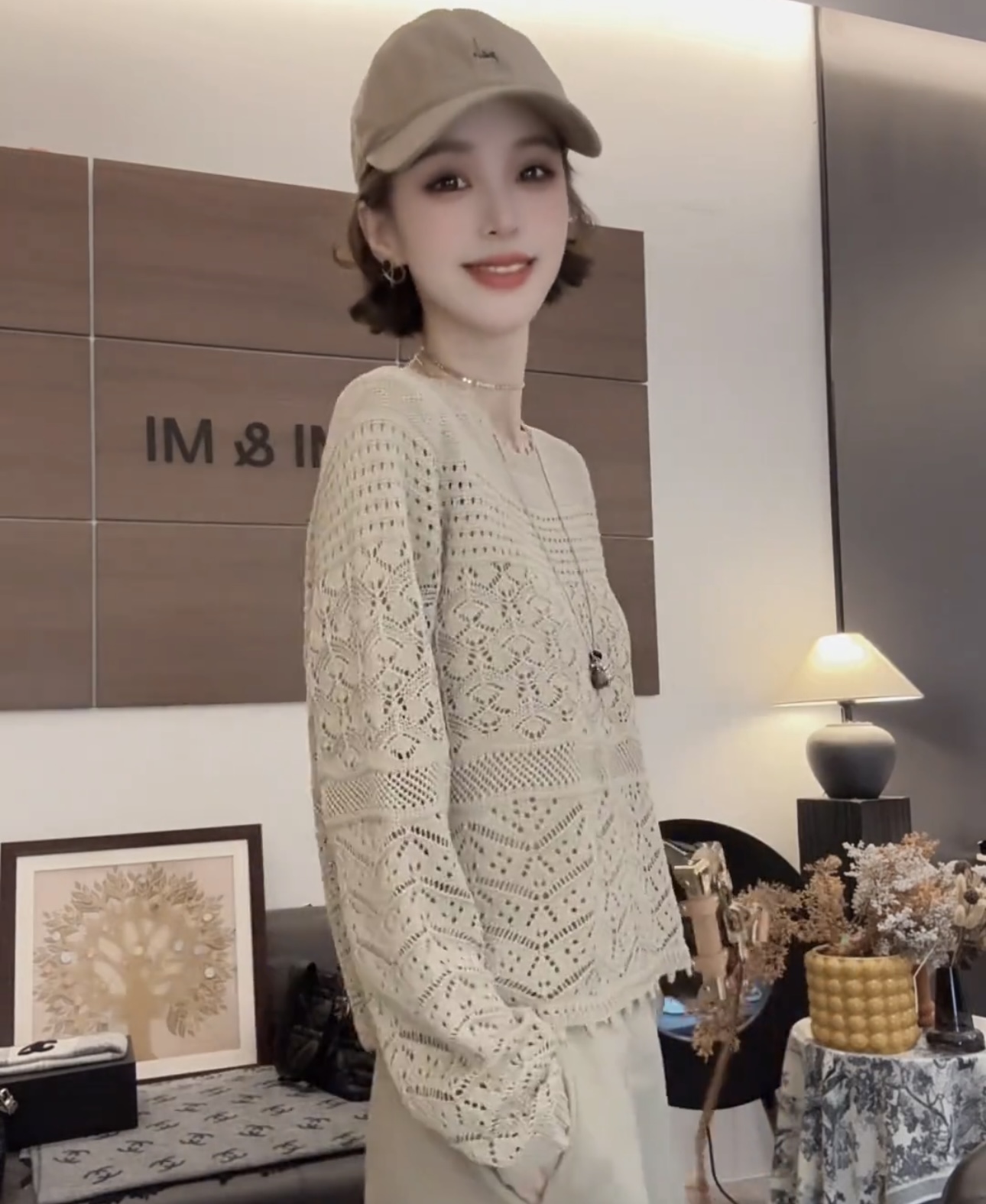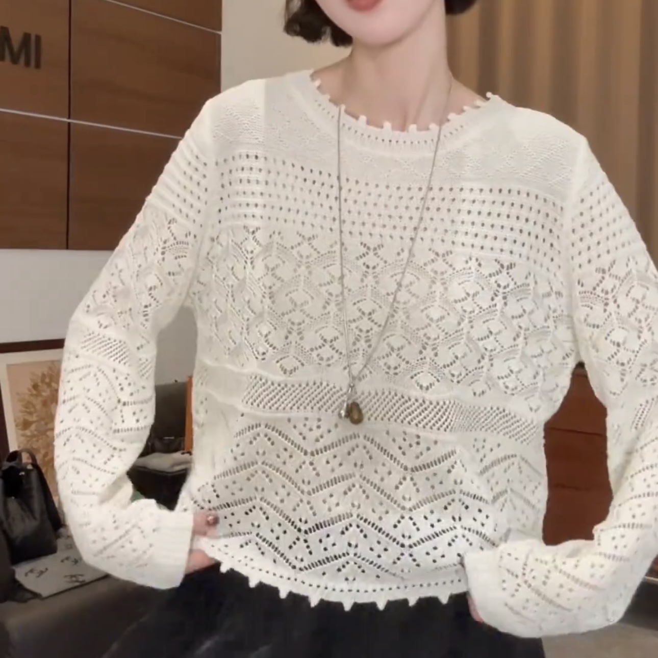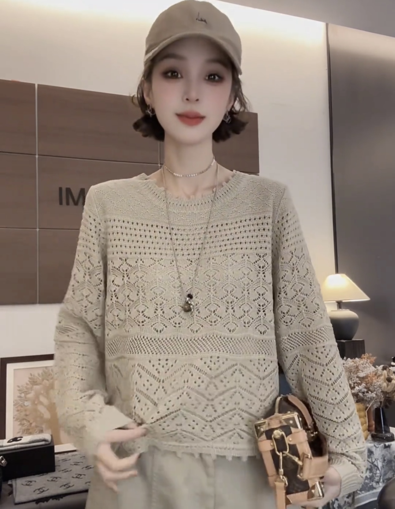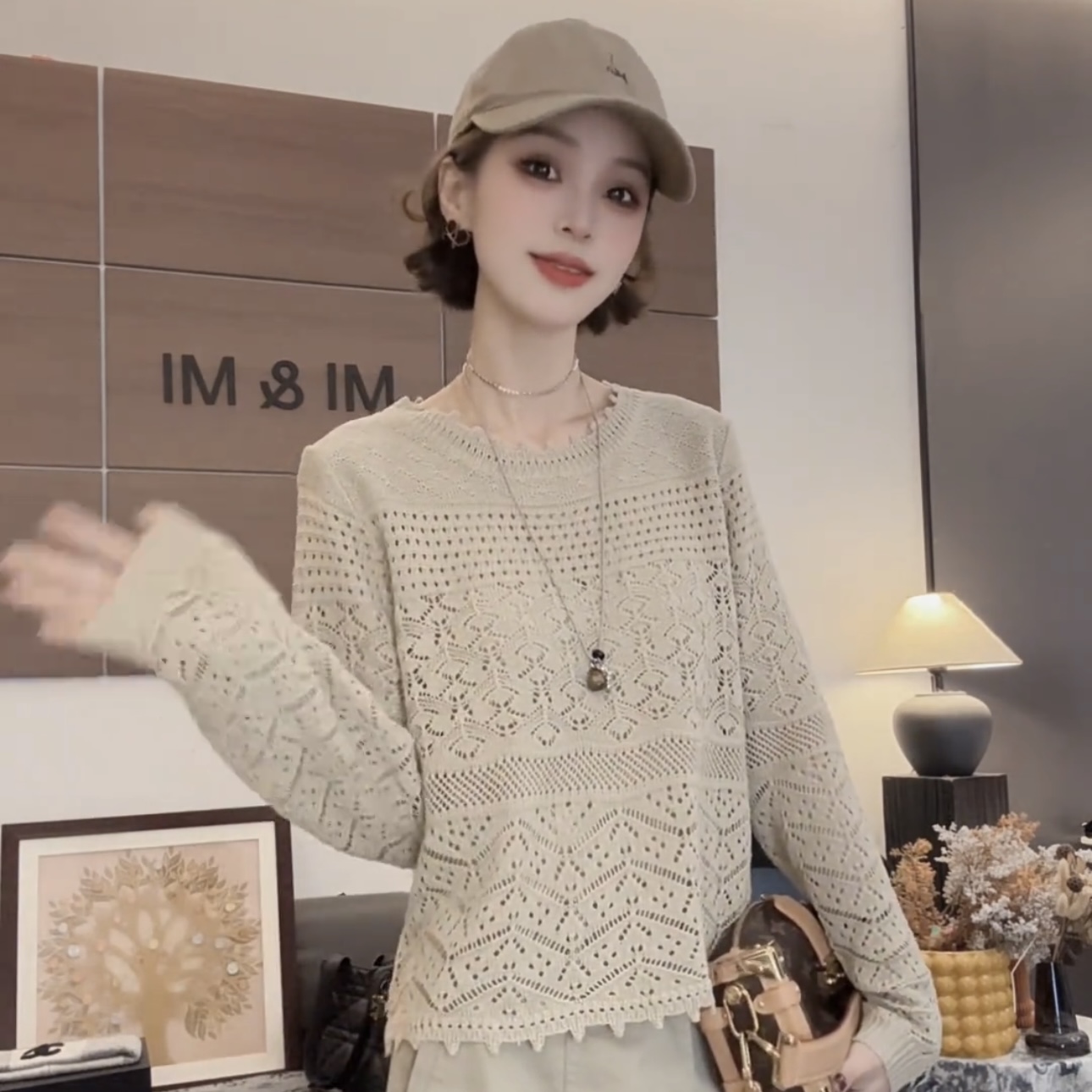 비즈 홀로우 아웃 니트 스웨터 2026 년 여름 새로운 다용도 슬림해 보이는 맨위 여성