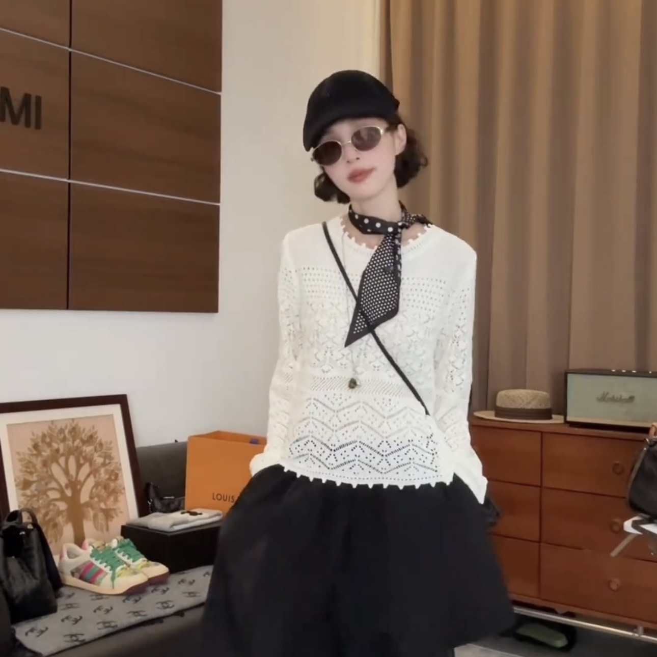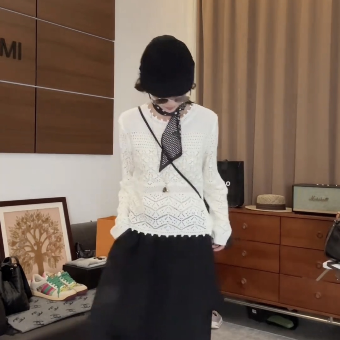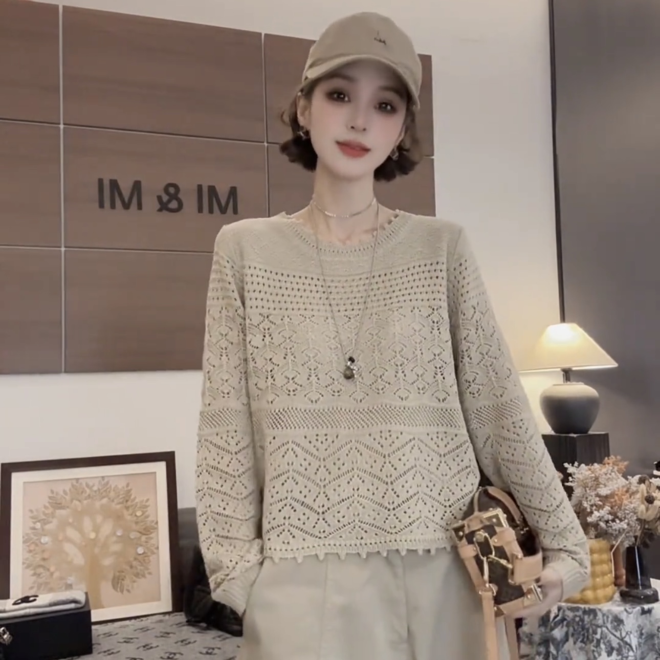 2026 년 봄 여름 새로운 홀로우 아웃 니트 작은 대중 디자인 털 니트 스웨터 여성
