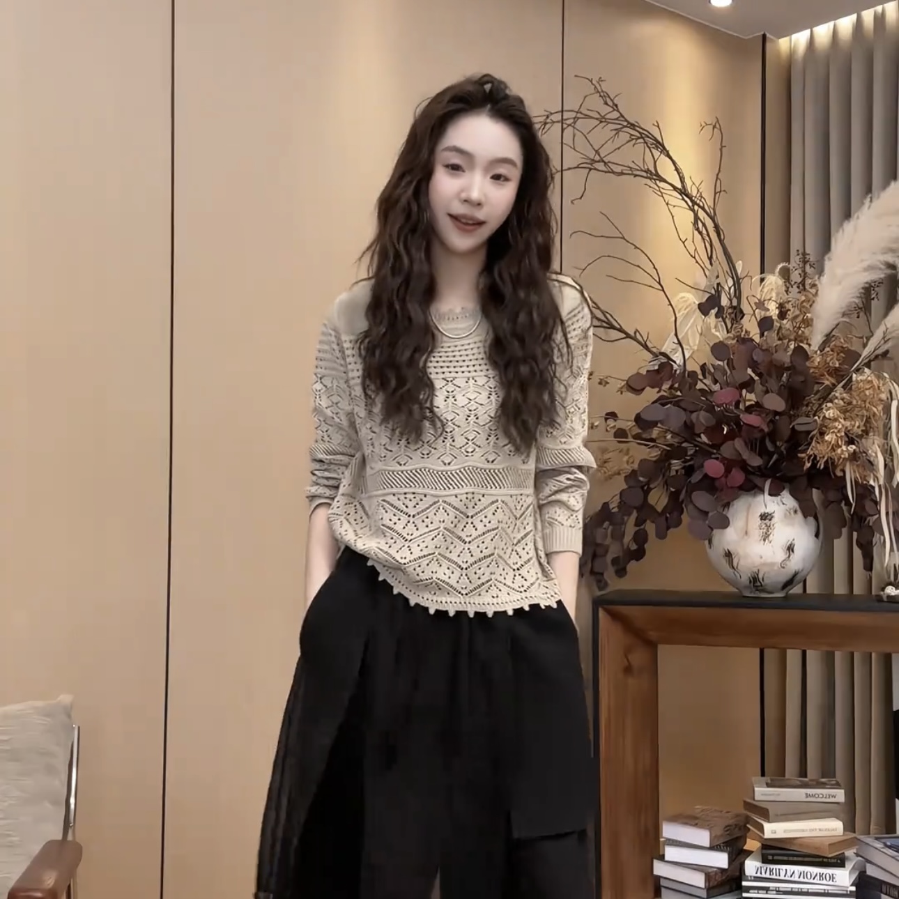 비즈 홀로우 아웃 니트 스웨터 2026 년 여름 새로운 다용도 슬림해 보이는 맨위 여성