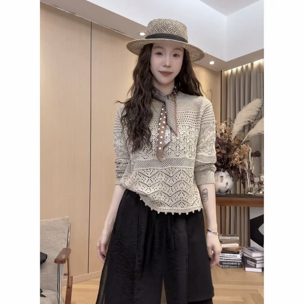 2026 년 봄 여름 새로운 홀로우 아웃 니트 작은 대중 디자인 털 니트 스웨터 여성