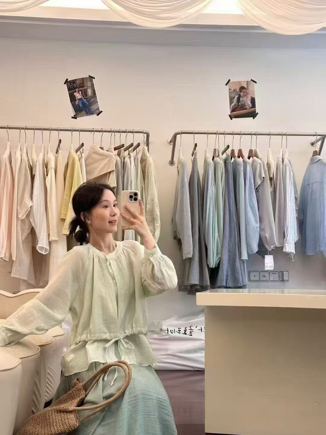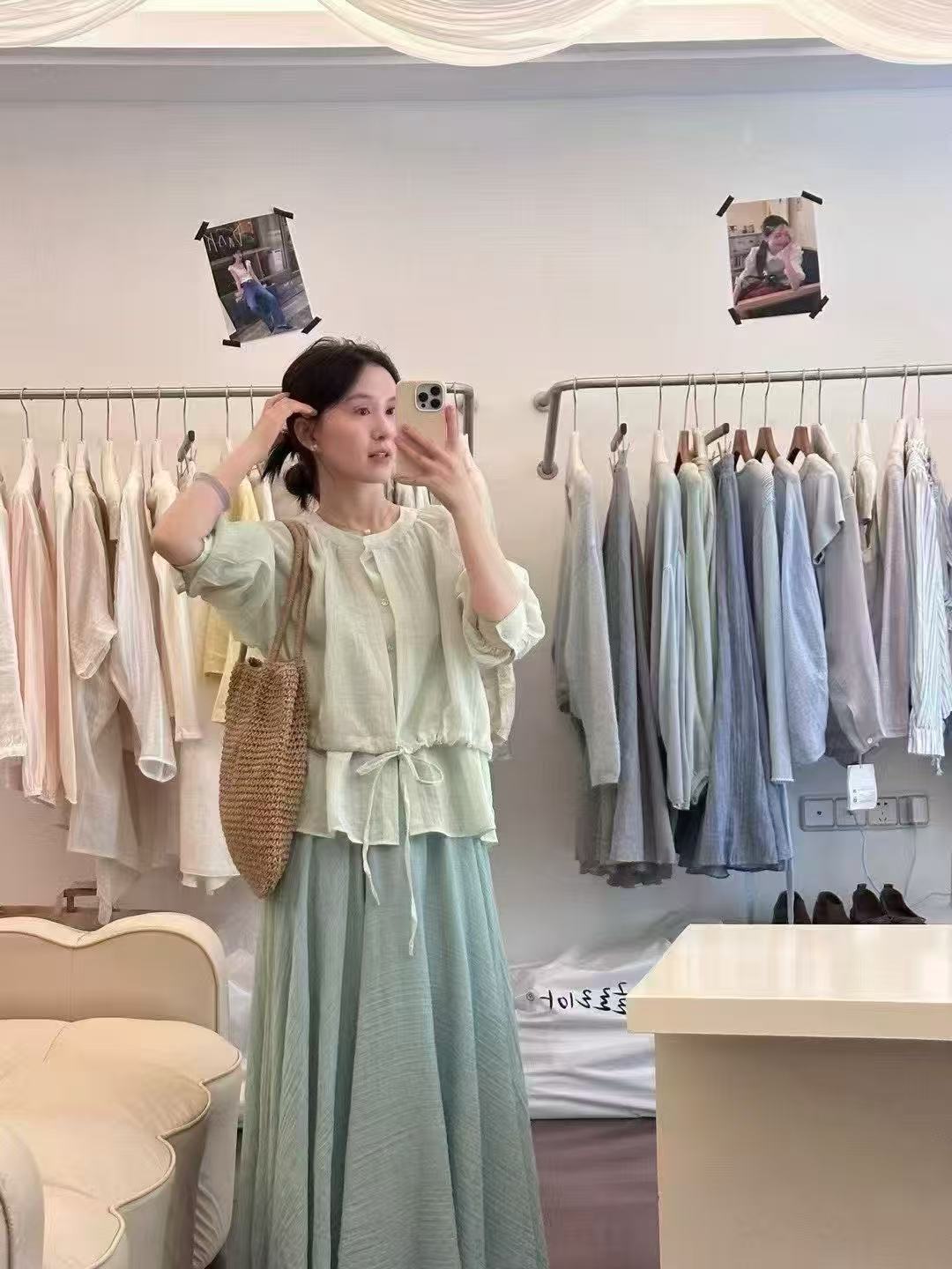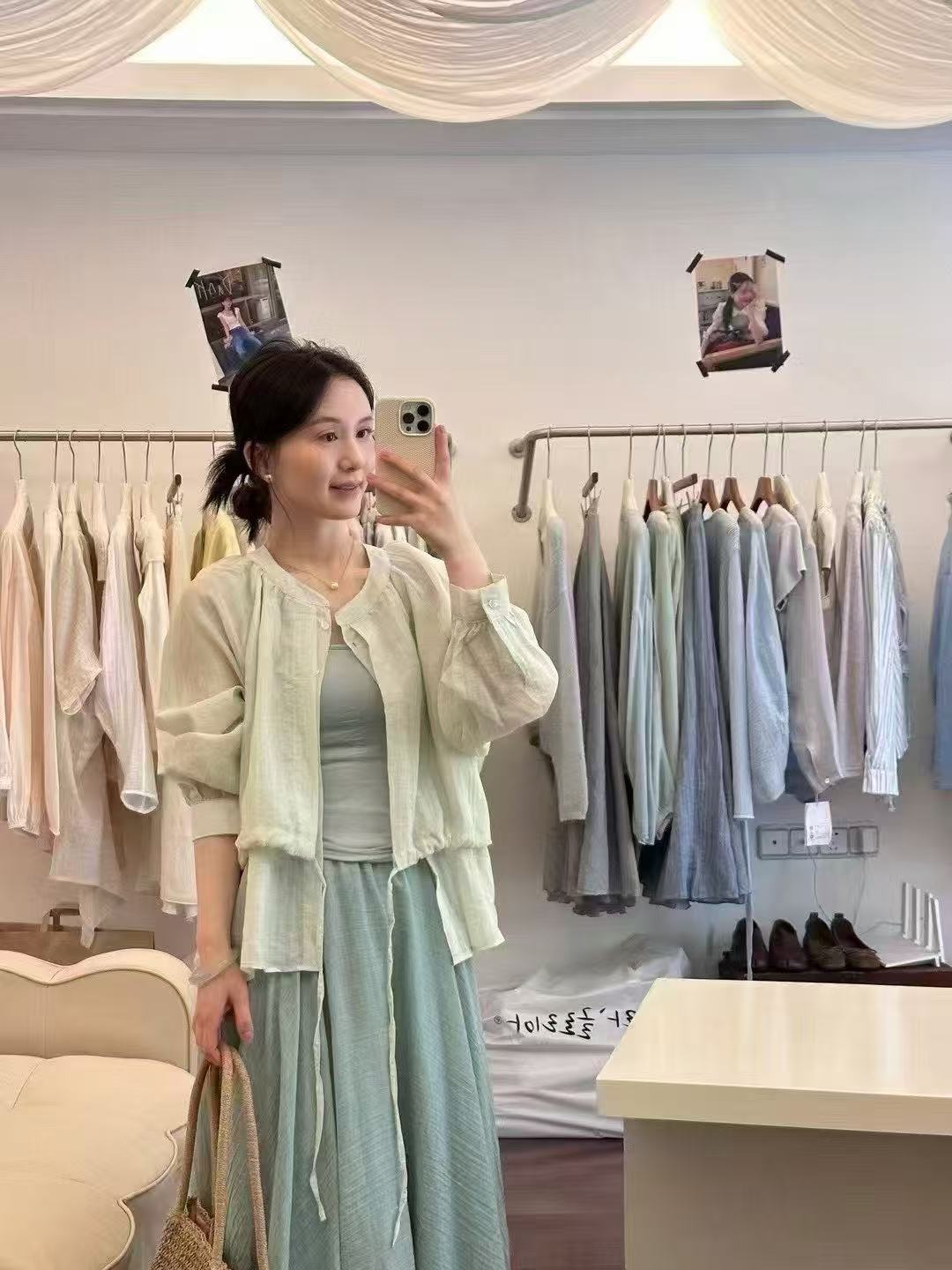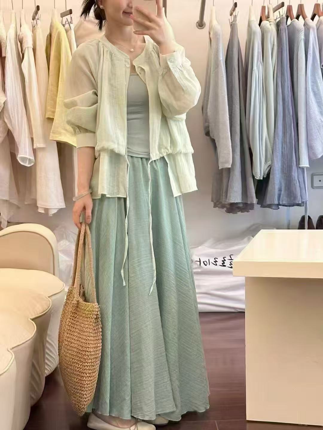새로운 프랑스식 느긋한 문예 마 재료 오픈 가디건 캐미솔 허리밴드 반신 스커트 3 세트