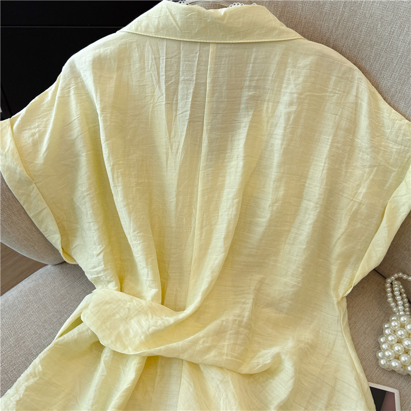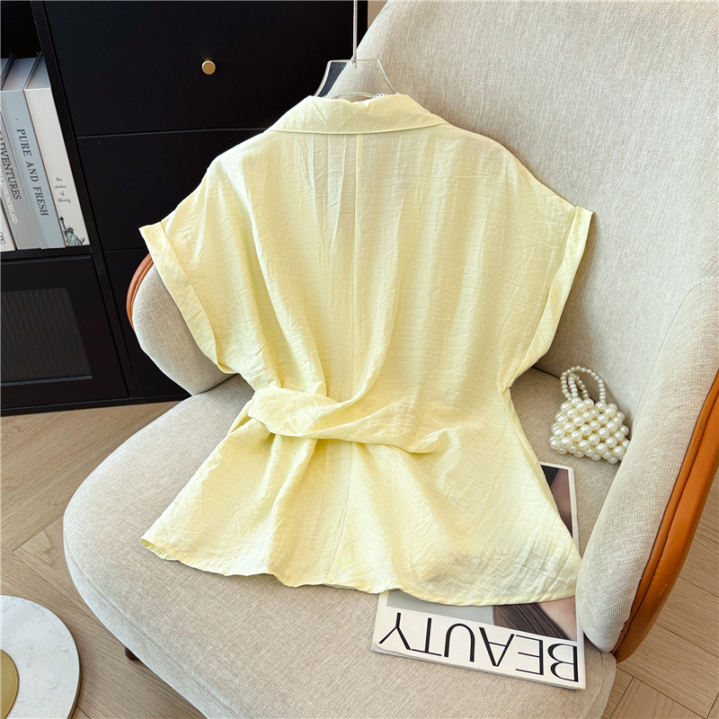 황색 프릴 행침 목 민소매 맨위 여성 2026 여름 새로운 순수한 욕망 디자인 센스 빅 사이즈 슬립 쉬폰 블라우스