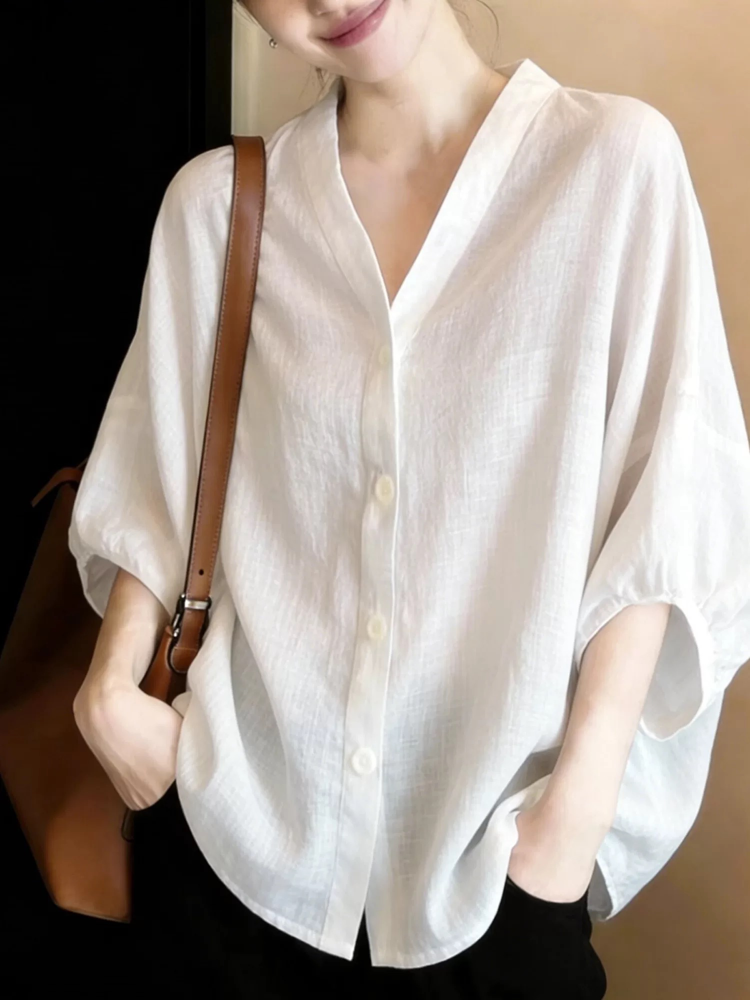 2026 여름 새로운 루즈핏 문예 단색 셔츠 여성 긴 소매 황색 라미 셔츠 얇고 가벼운 통기성 태양 보호 셔츠