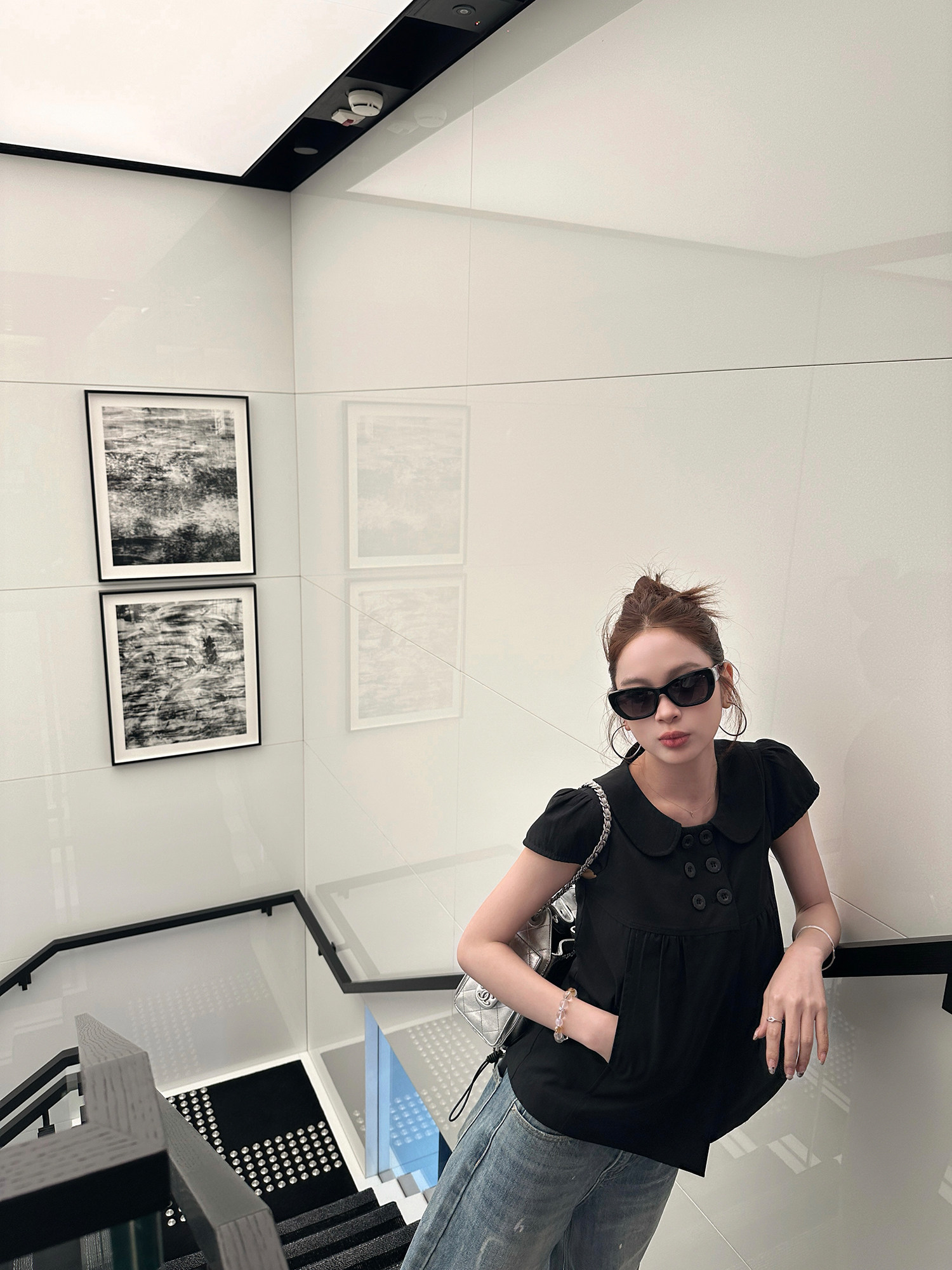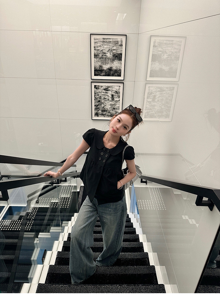 신제품 제한된 시간 95 접기 goo goo eyes 주간 실크 코튼 이중 버튼 반팔 인형 셔츠