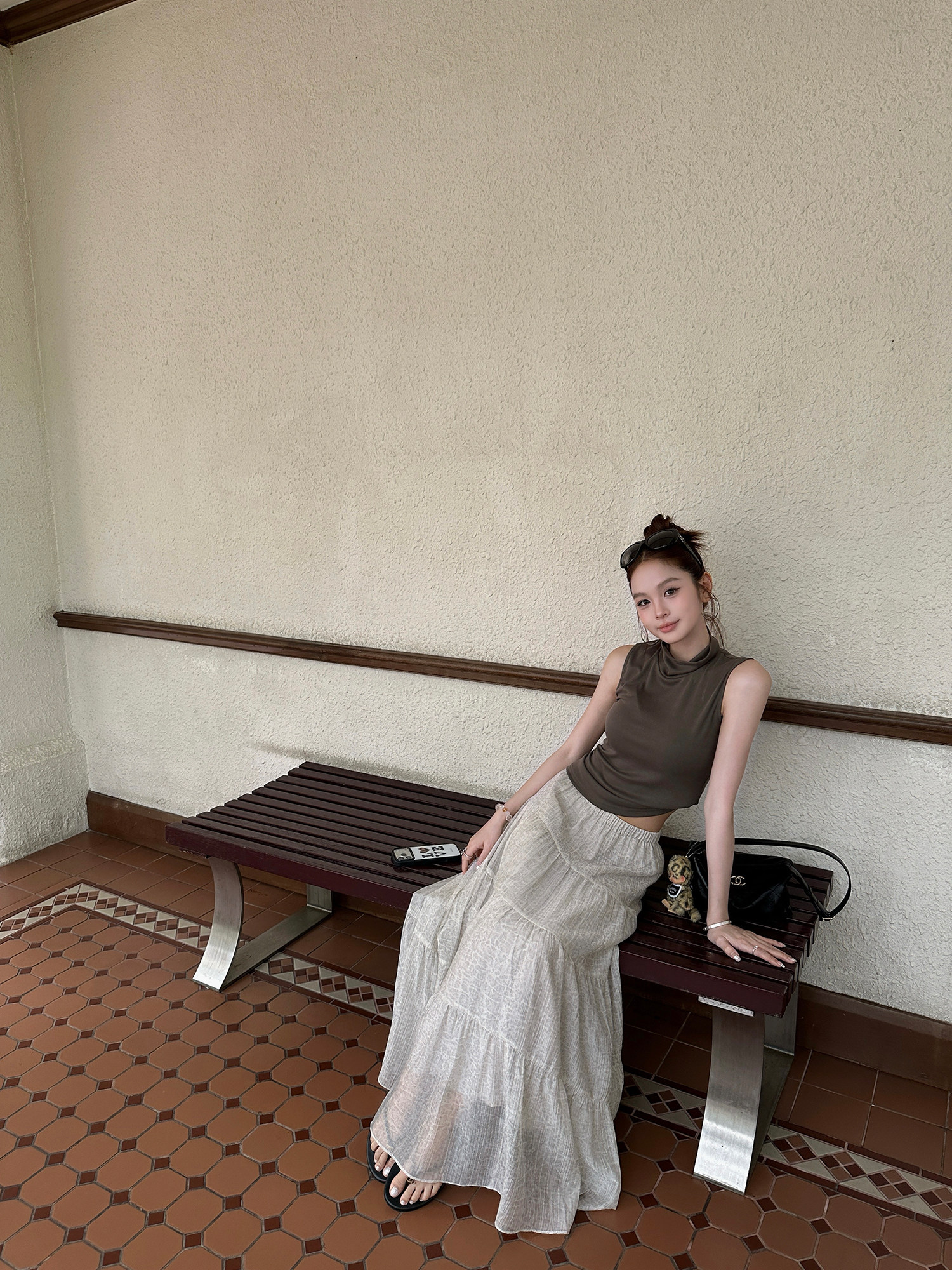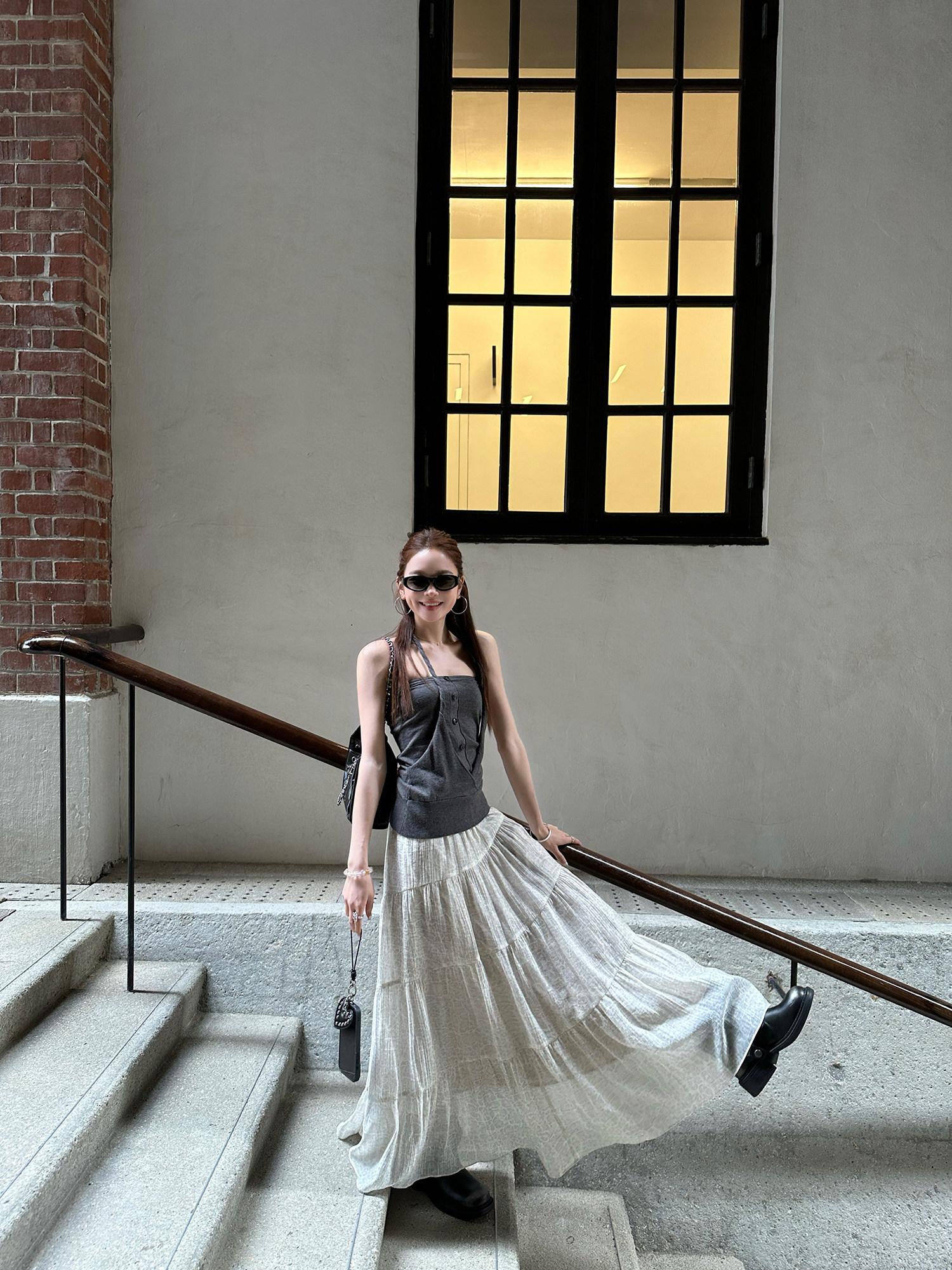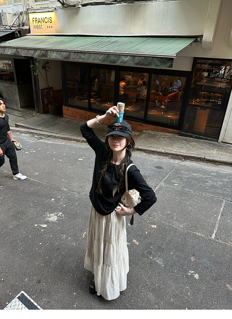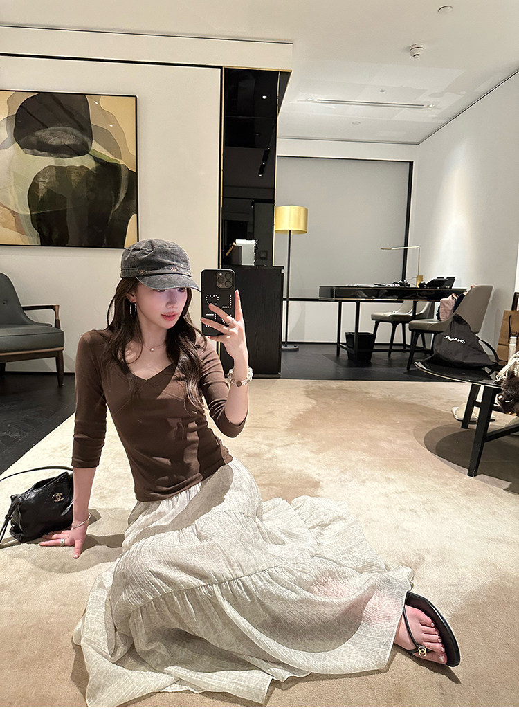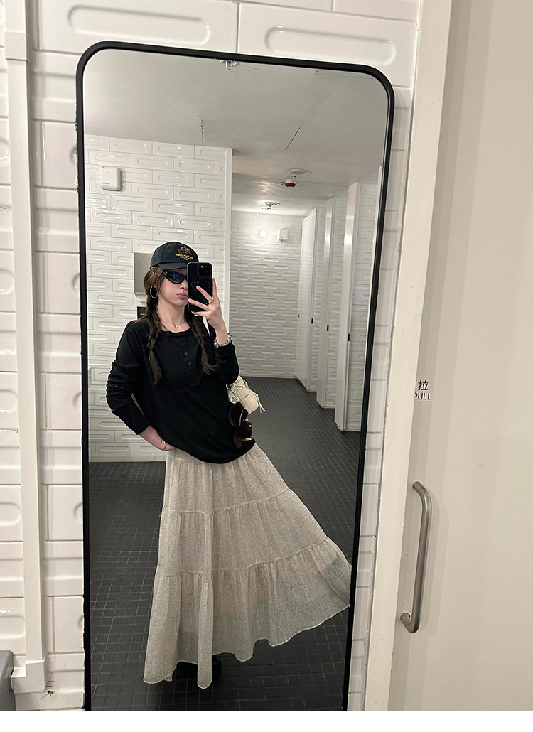 세븐 작은 세븐 sicily 연기 웅장 함 프랑스식 가스 질감 빛 럭셔리 허리 수축 슬림해 보이는 장미 디자인 센스 롱 스커트