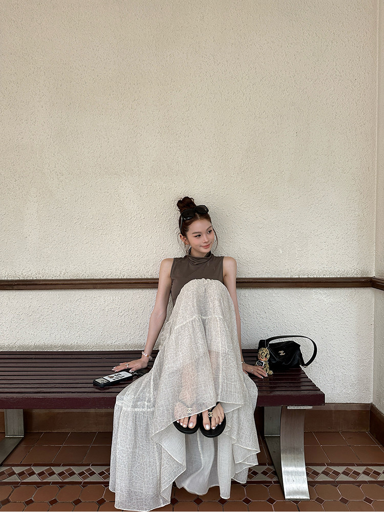 필드 크 사이 웨이 스타 같은 단락 2026 프랑스식 레트로 장미 여성 드레스 품격 슬림해 보이는 민소매 조끼 롱 스커트 여름
