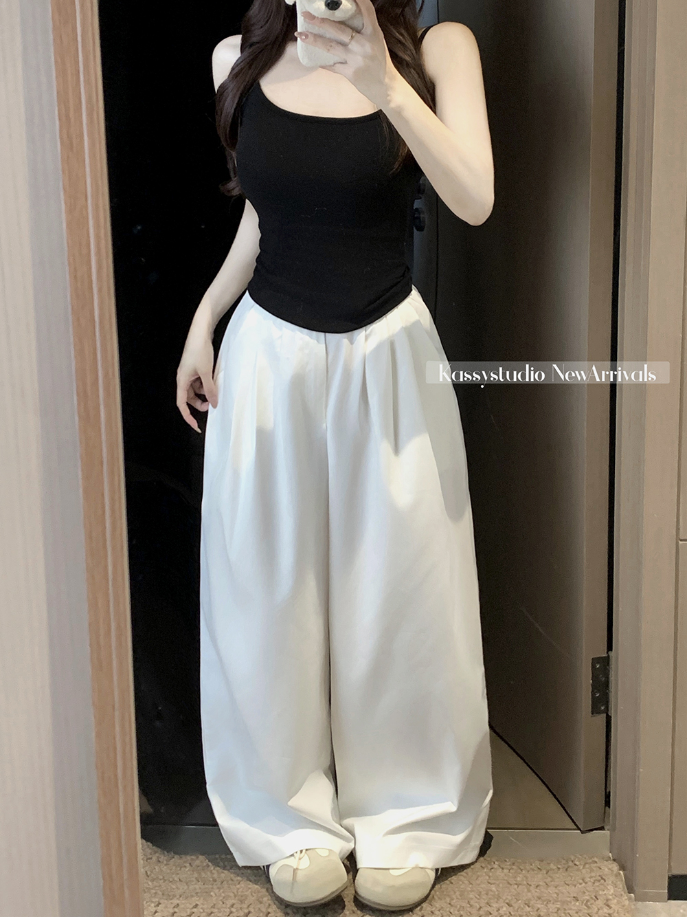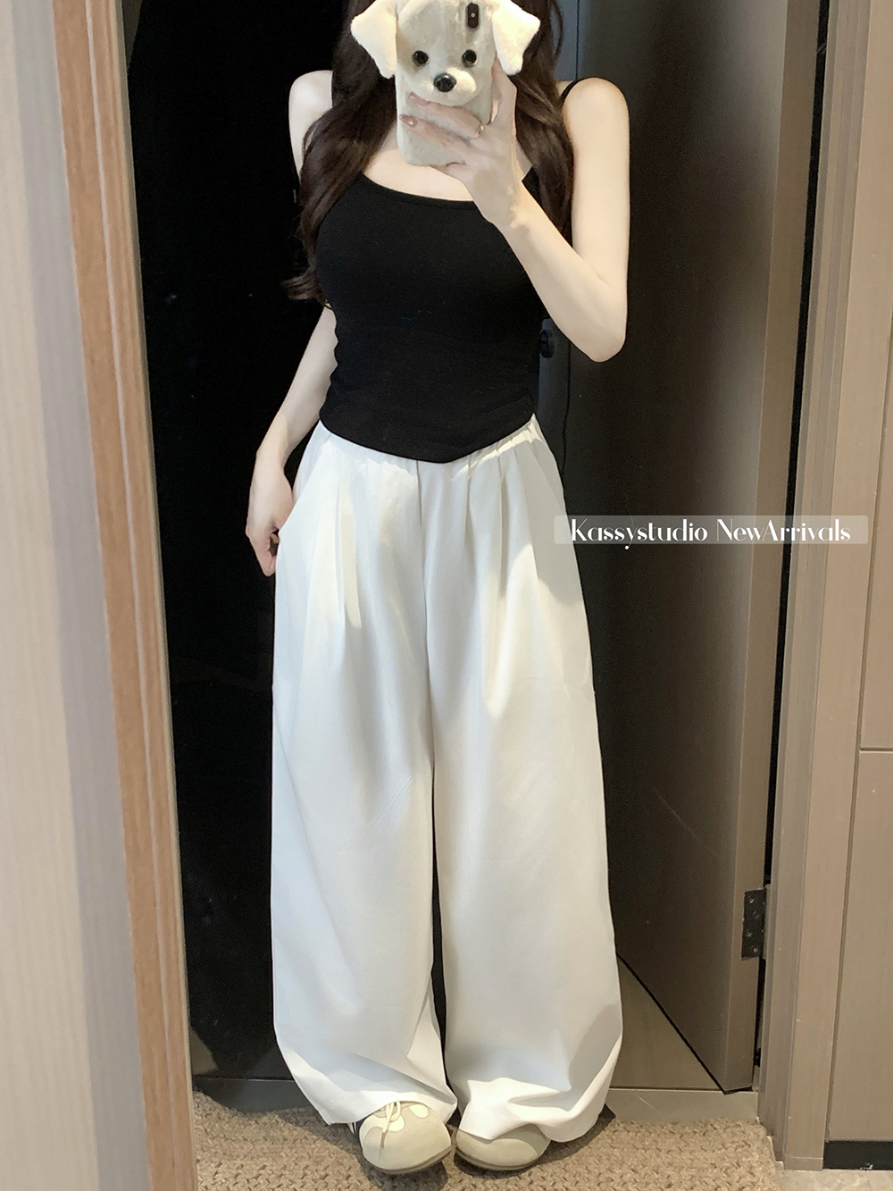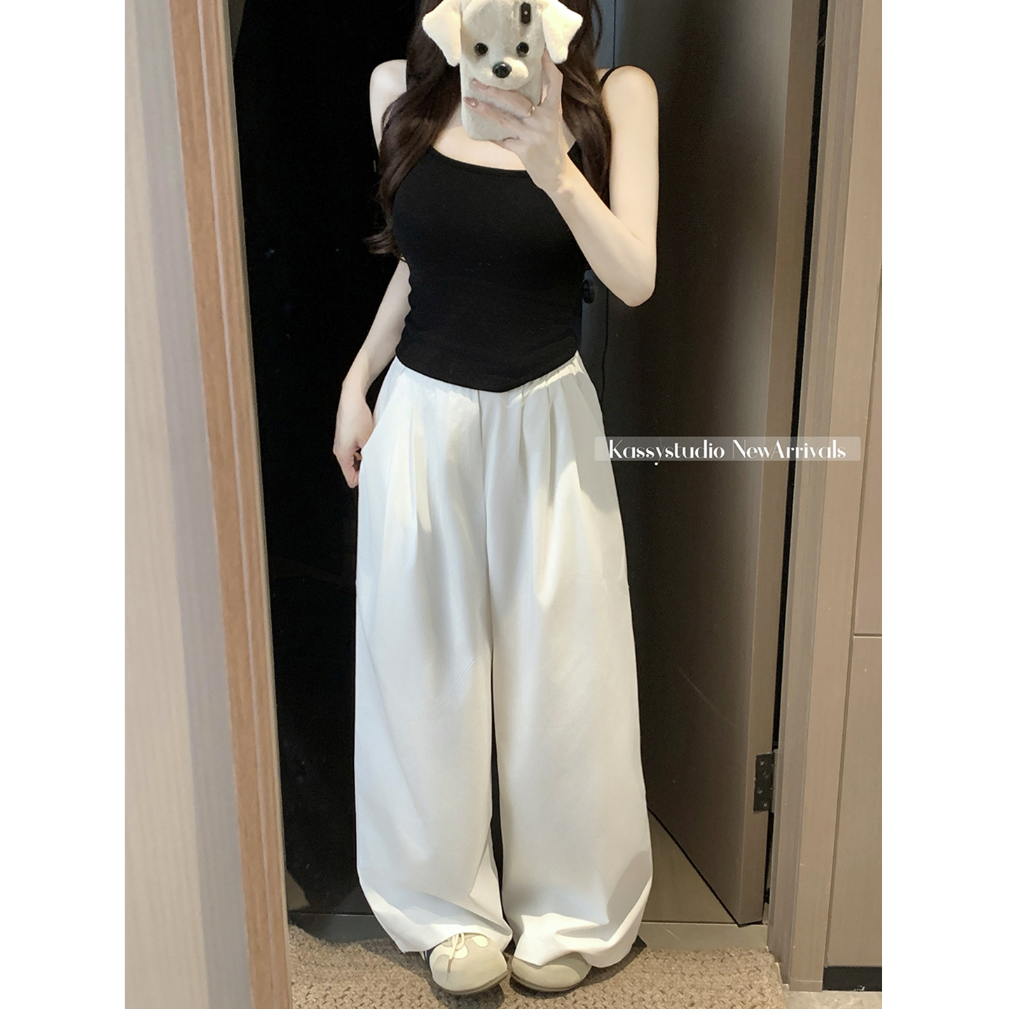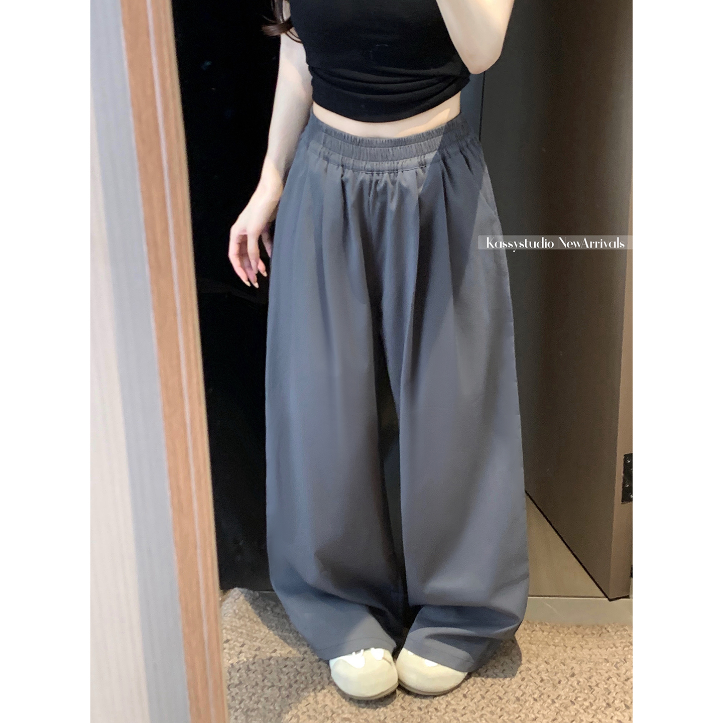 실사 2026 루즈핏 개성 정장 바지 캐주얼 바지 여성 와이드 레그 팬츠 하이웨이스트 도루 센스 바닥 청소 바지