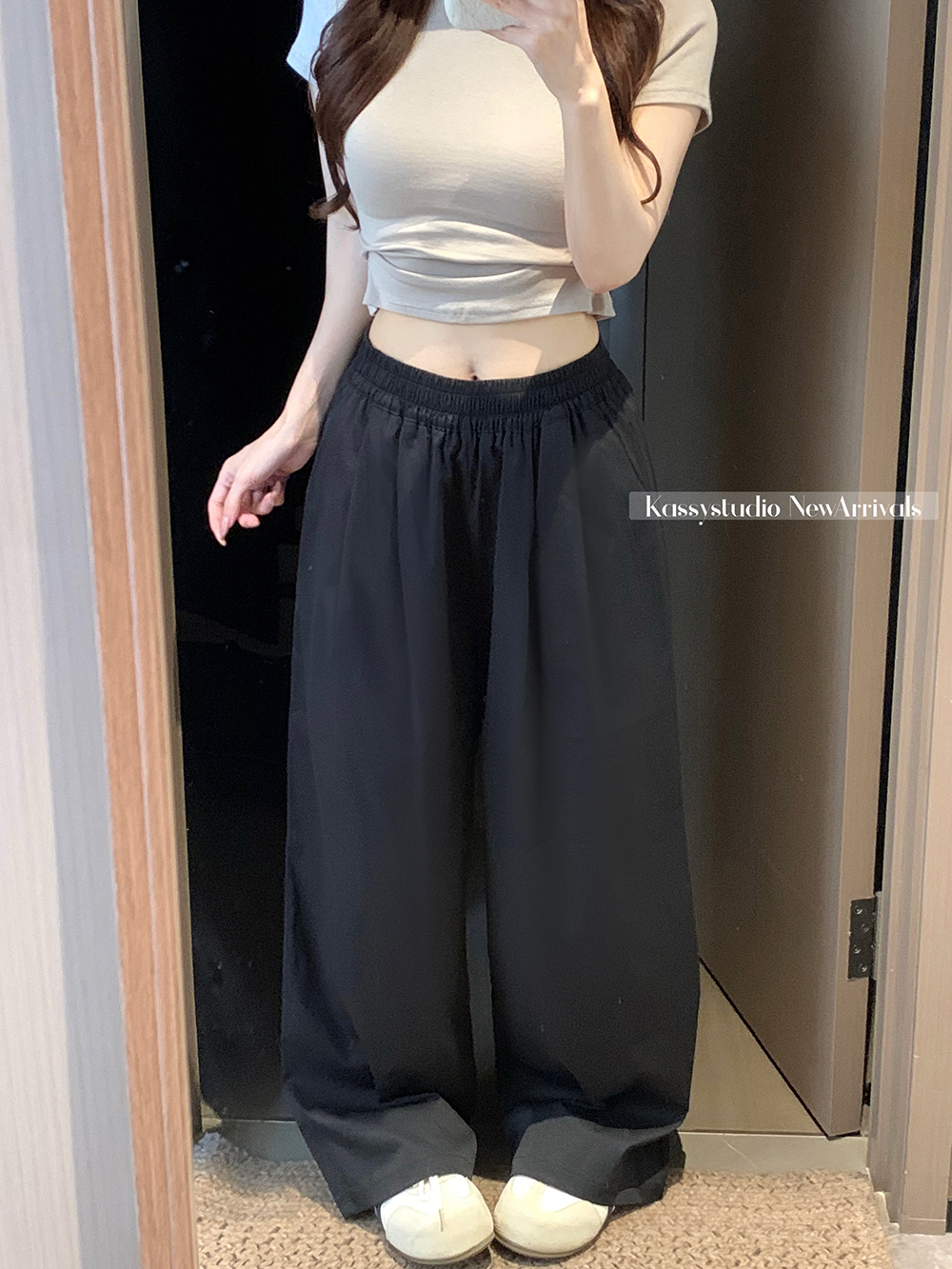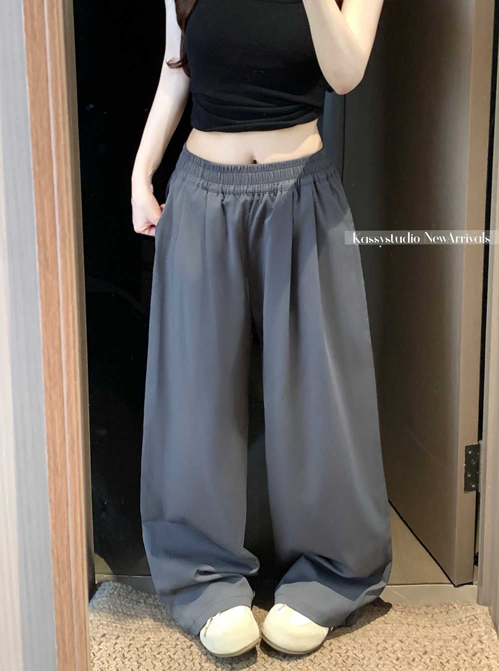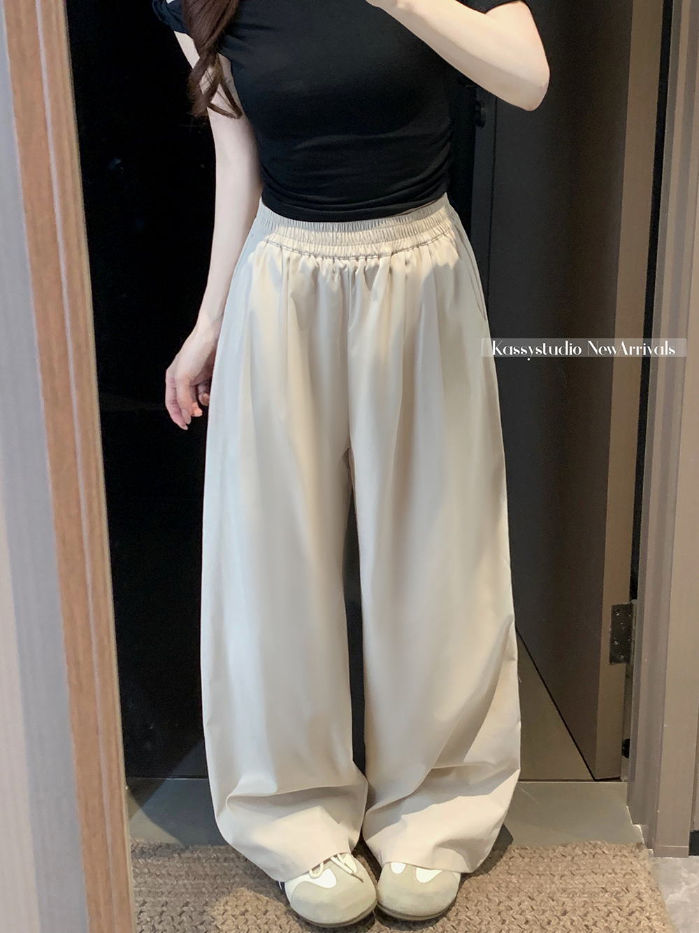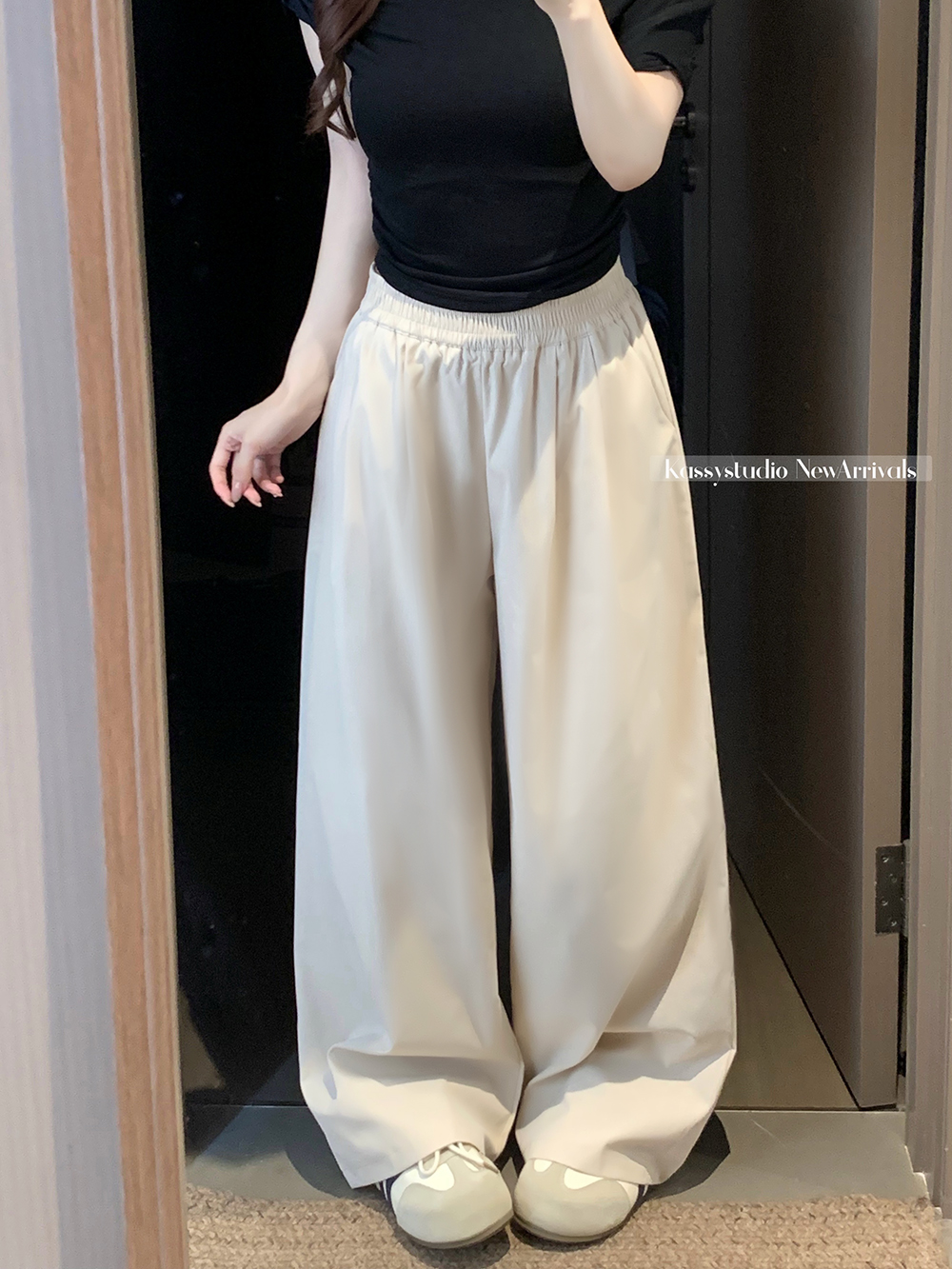 실사 새로운 허리밴드 슬림해 보이는 캐주얼 바지 여성 루즈핏 와이드 레그 팬츠