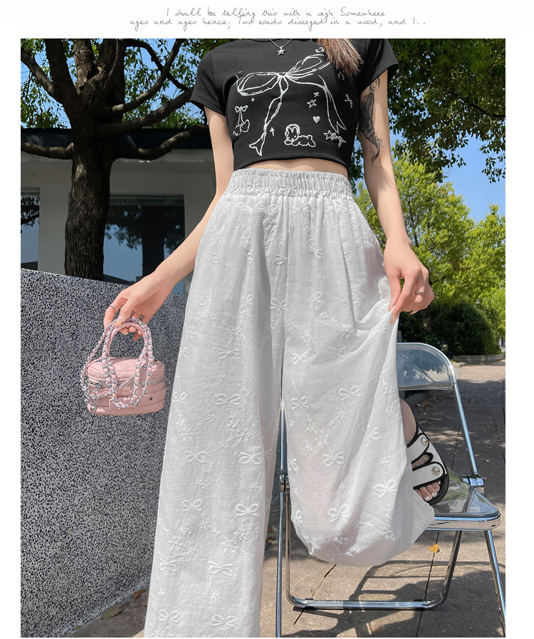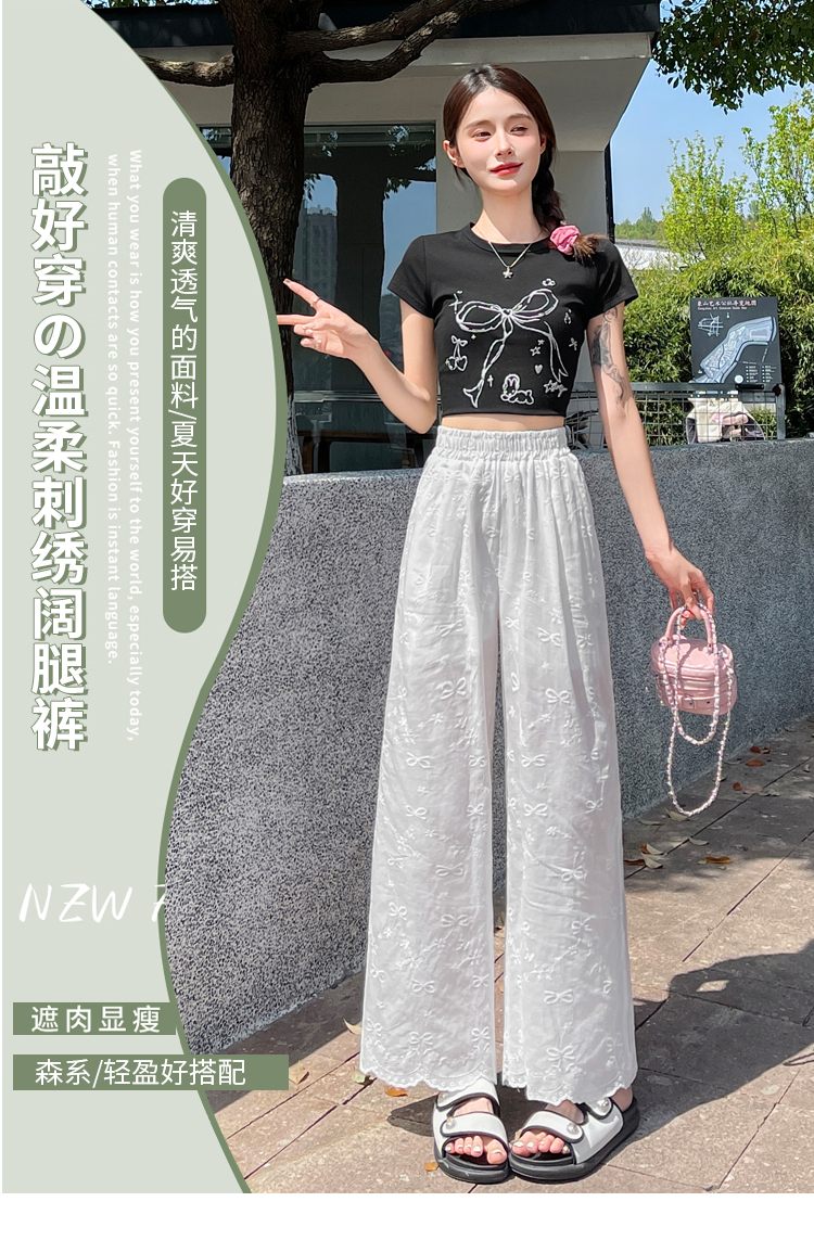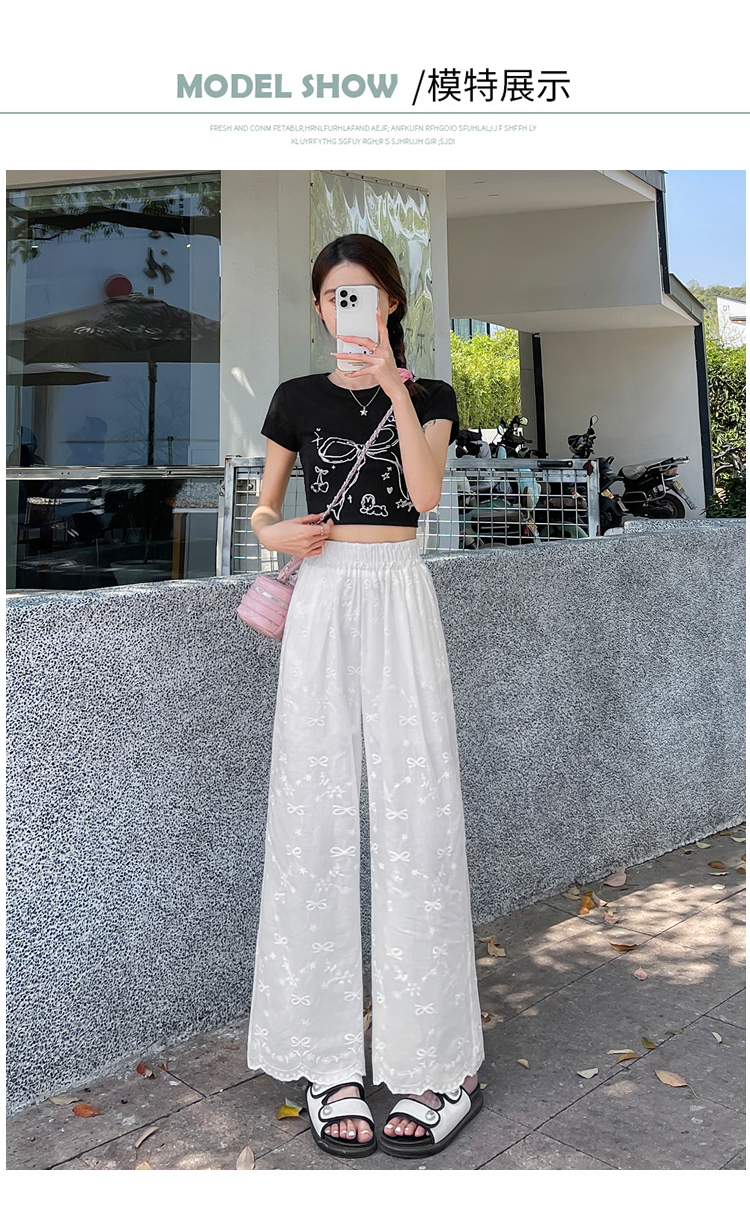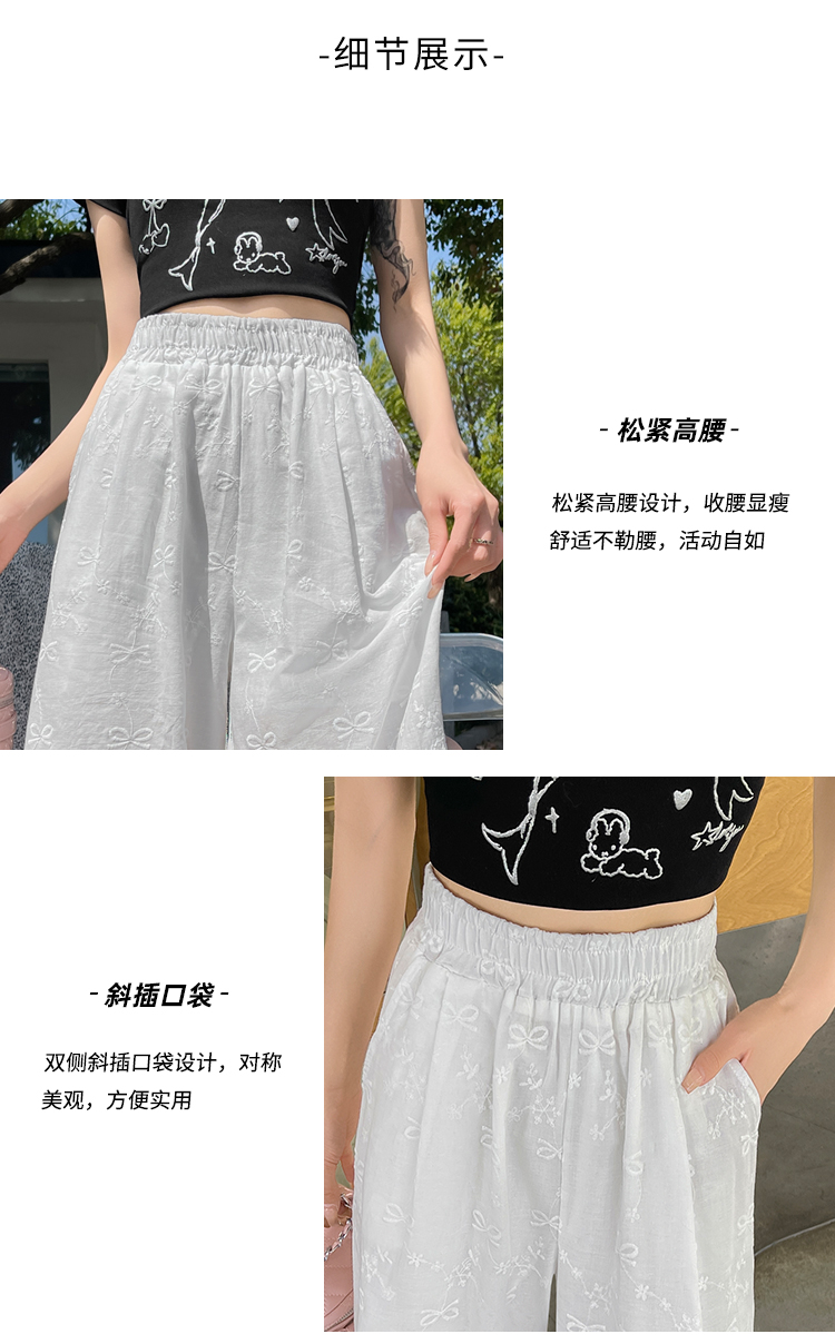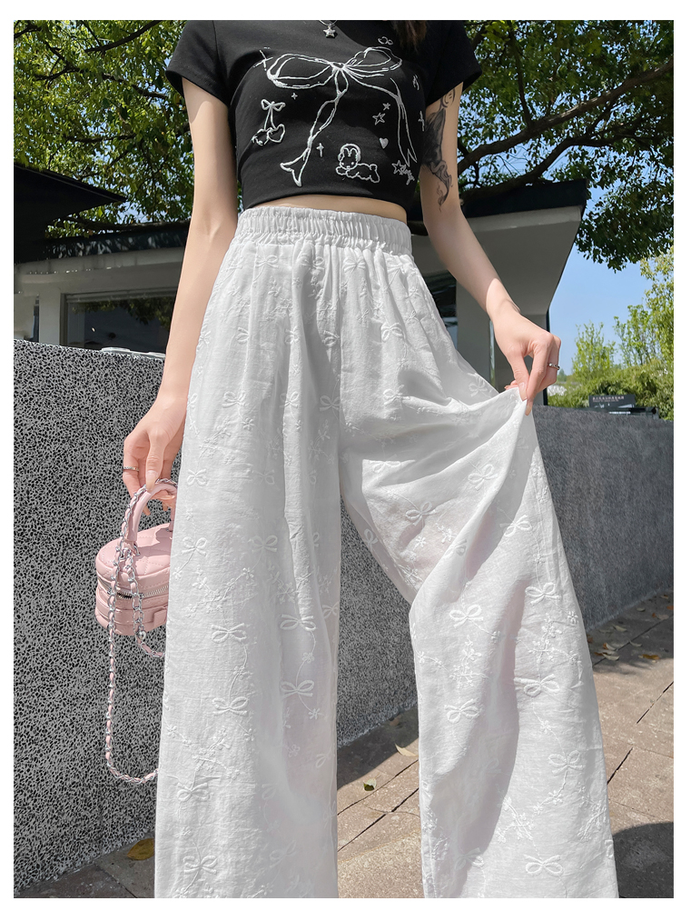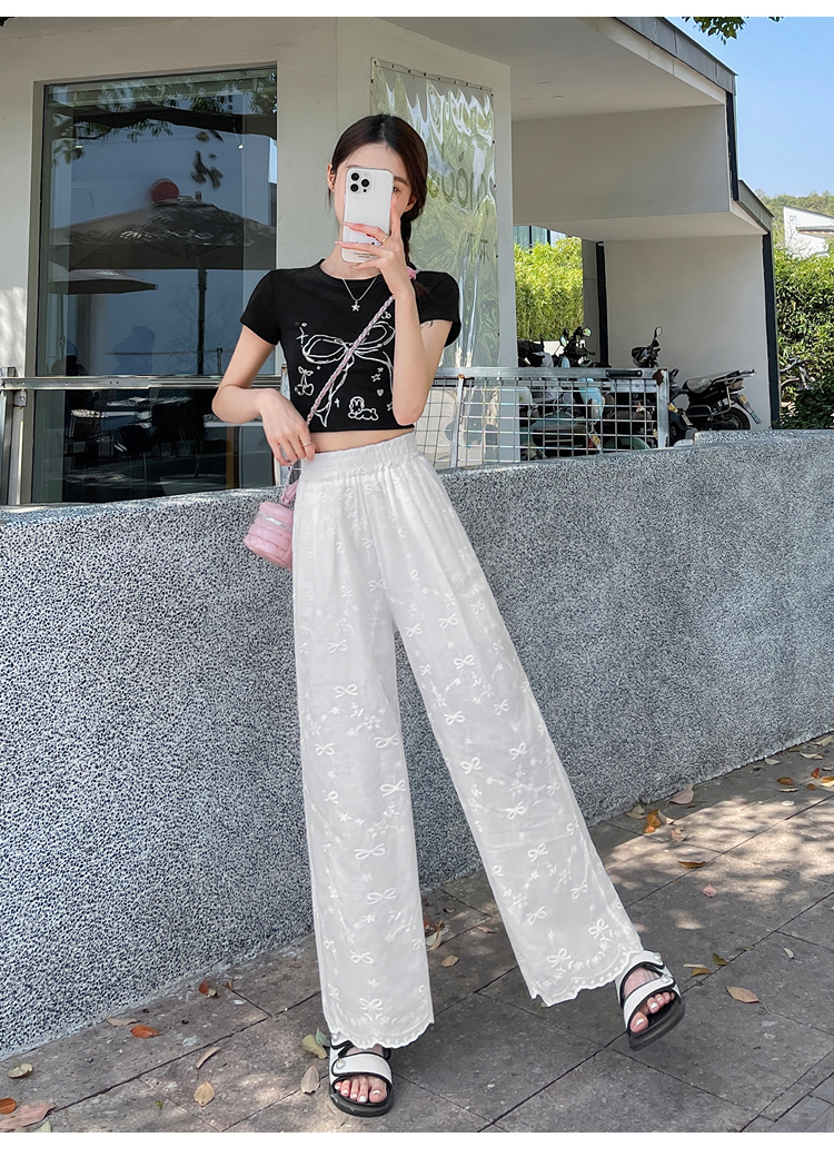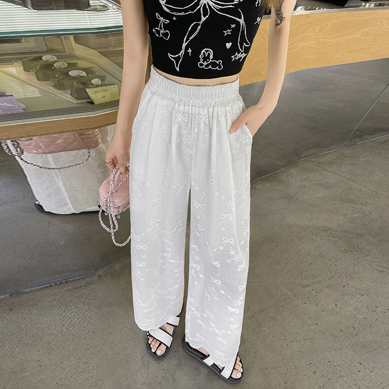 실사 여름 새로운 얇은 스타일 화이트 홀로우 아웃 레이스 나비 매듭 자수 캐주얼 루즈핏 스트레이트 와이드 레깅스 바지