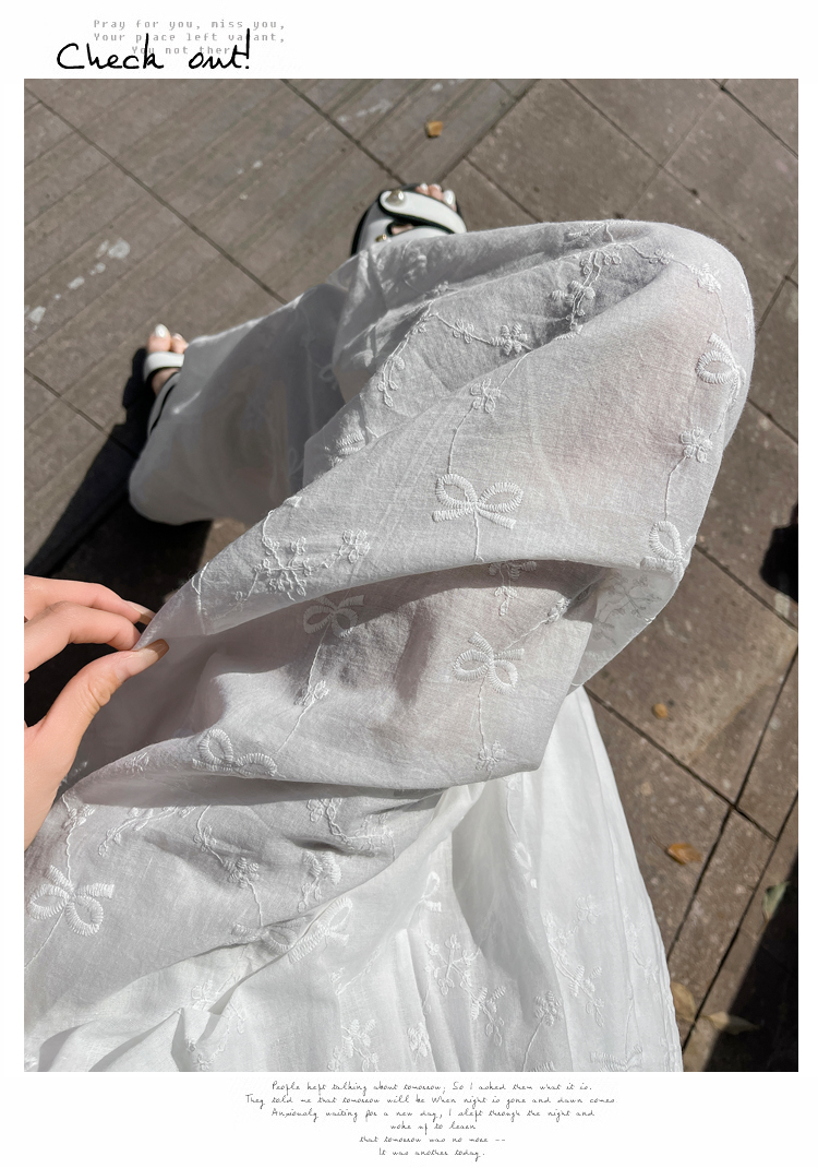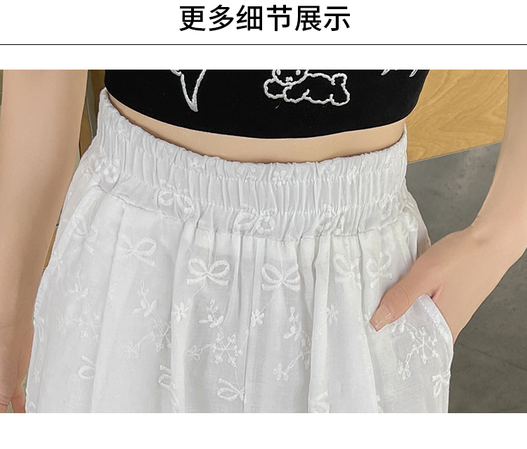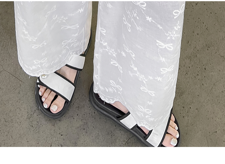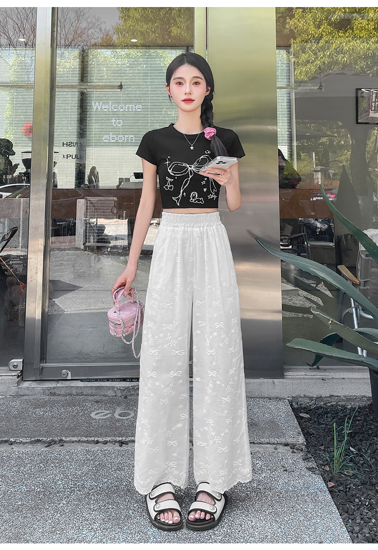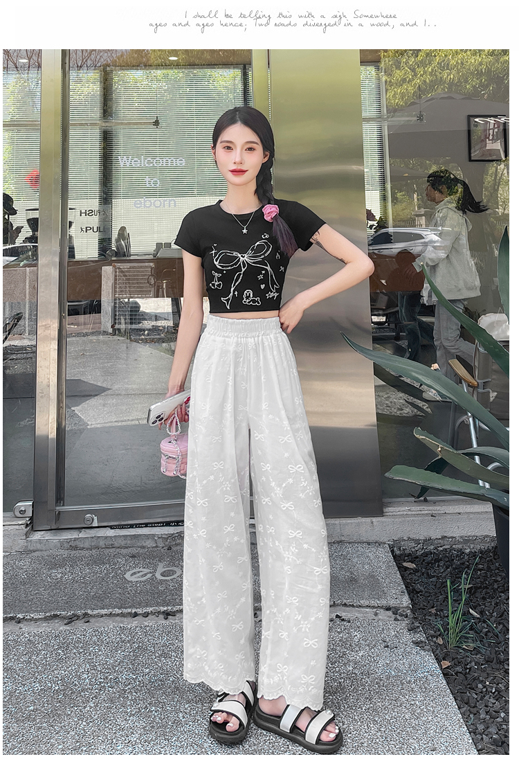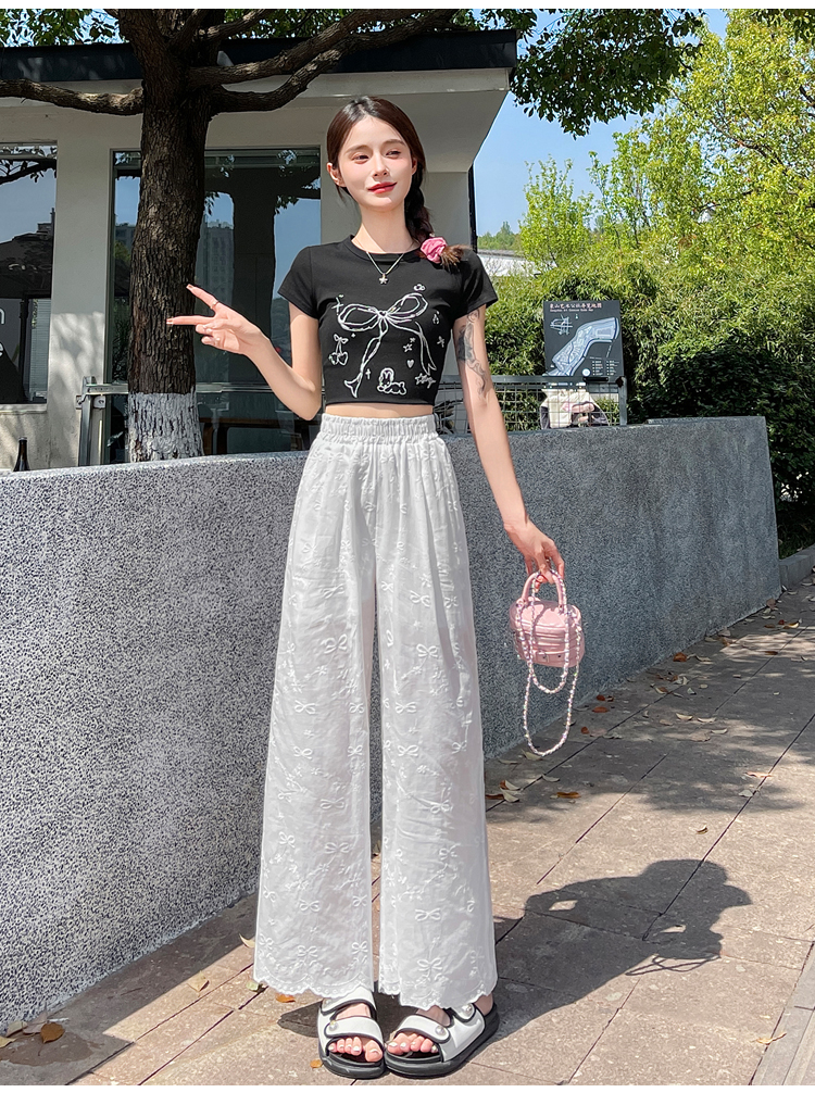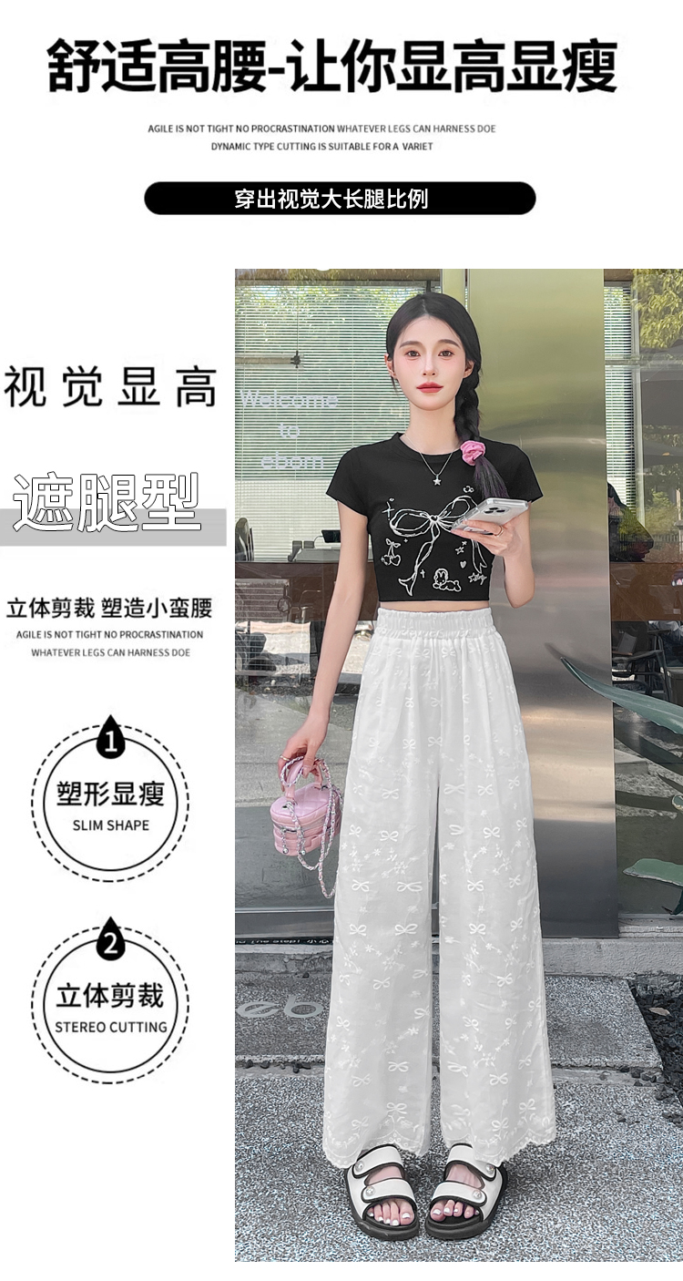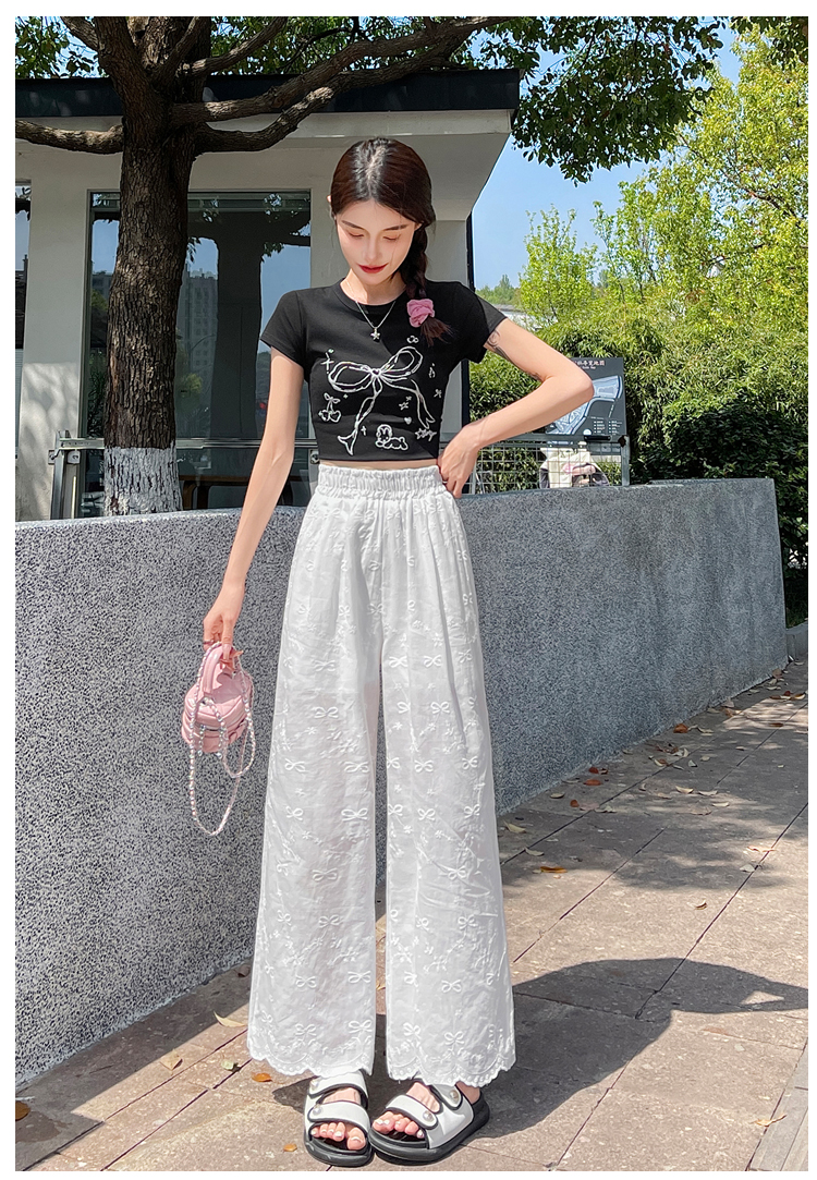 실사 여름 새로운 얇은 스타일 화이트 홀로우 아웃 레이스 나비 매듭 자수 캐주얼 루즈핏 스트레이트 와이드 레깅스 바지