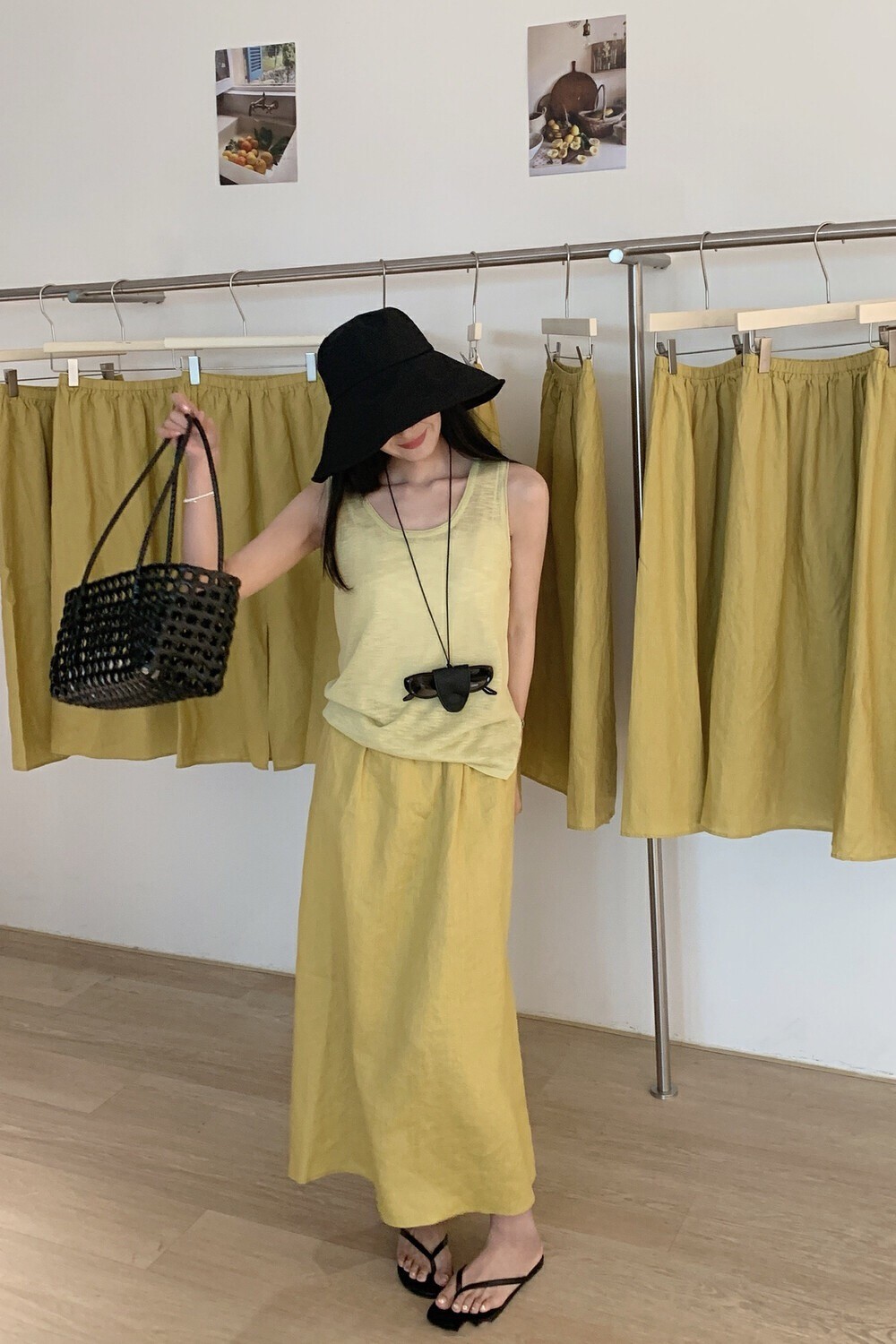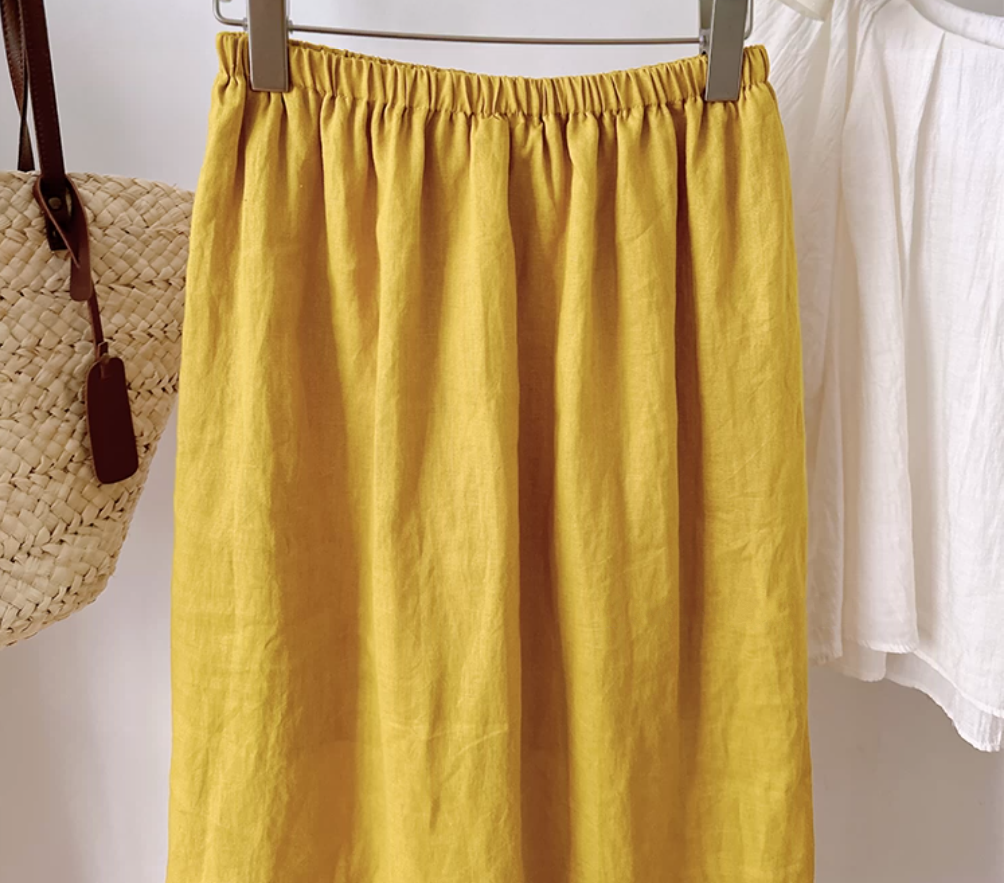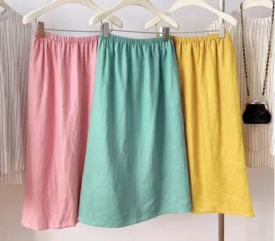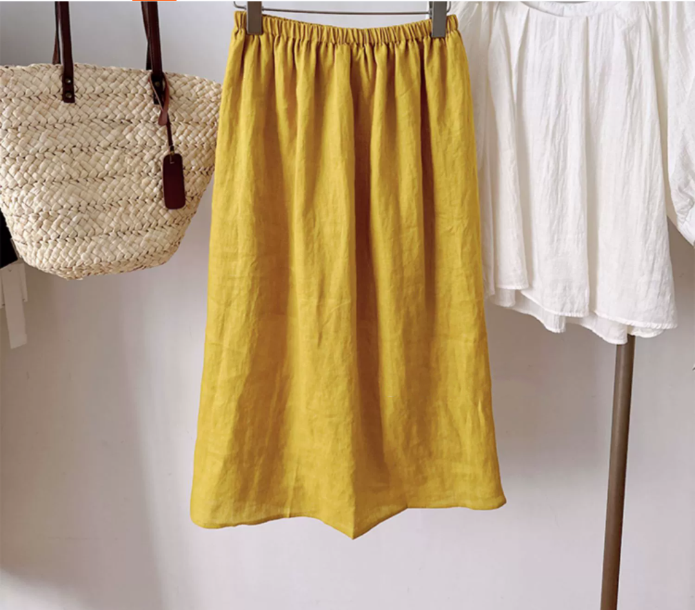 실사 일본식 레트로 면 린넨 반신 스커트 여름 얇은 스타일 작은 키 트임 밴딩 하이웨이스트 스트레이트 한 마디 롱 스커트