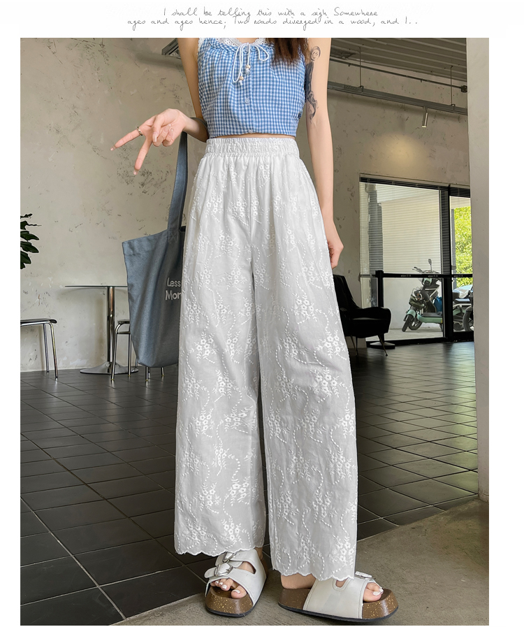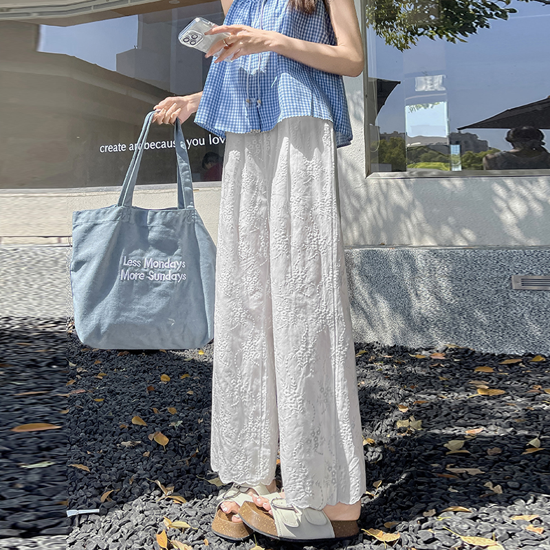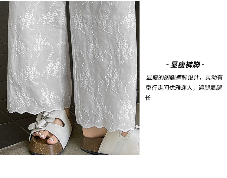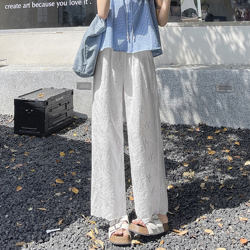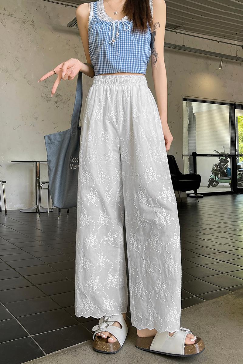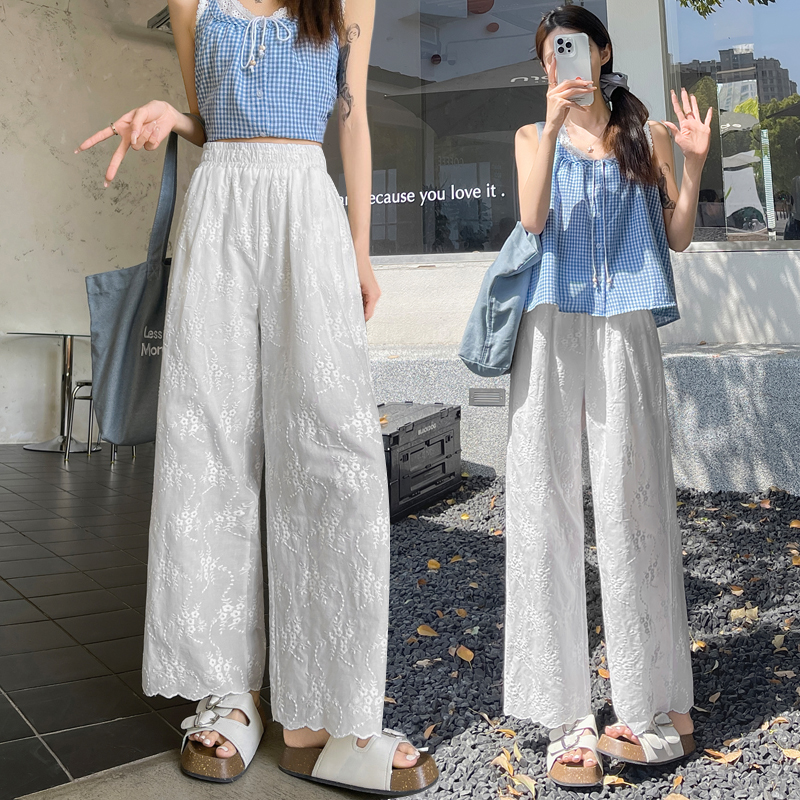 실사 여름 새로운 얇은 스타일 화이트 홀로우 아웃 레이스 자수 벽오동 바지 캐주얼 루즈핏 스트레이트 와이드 레깅스 바지