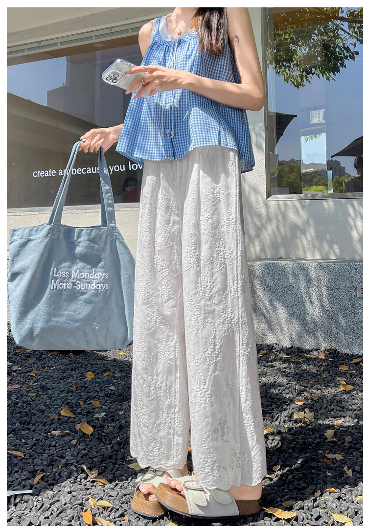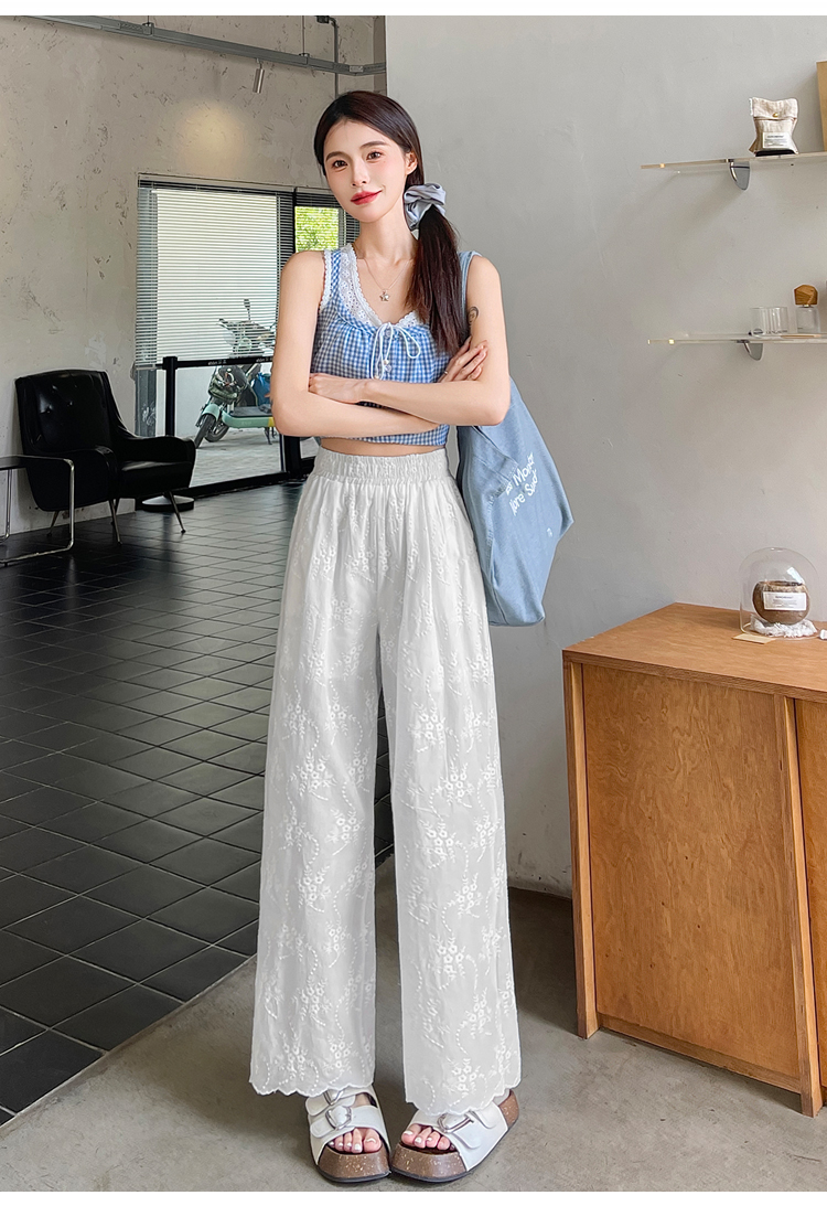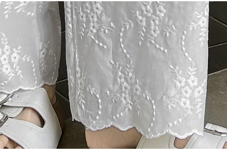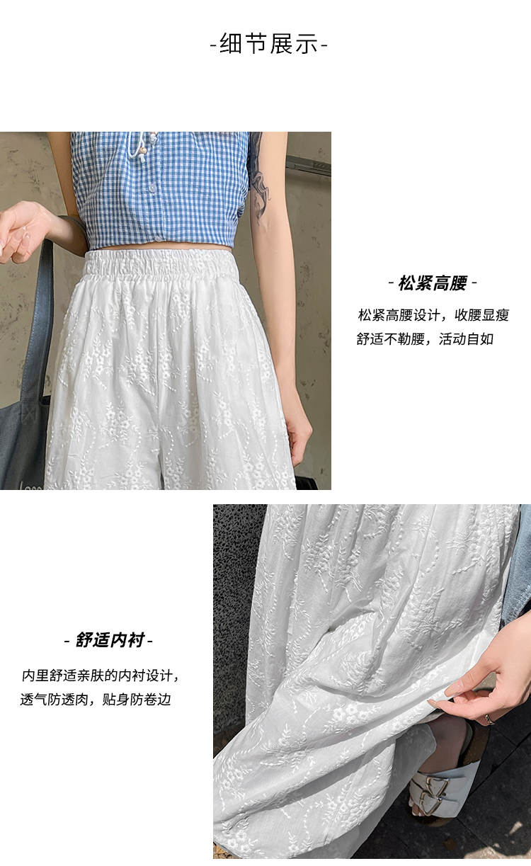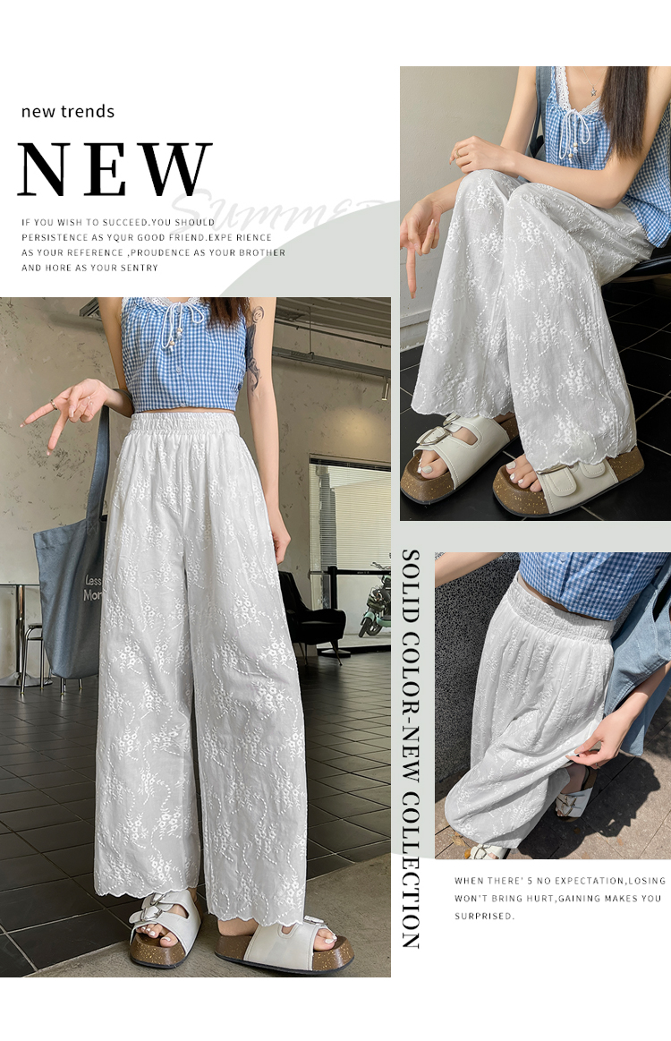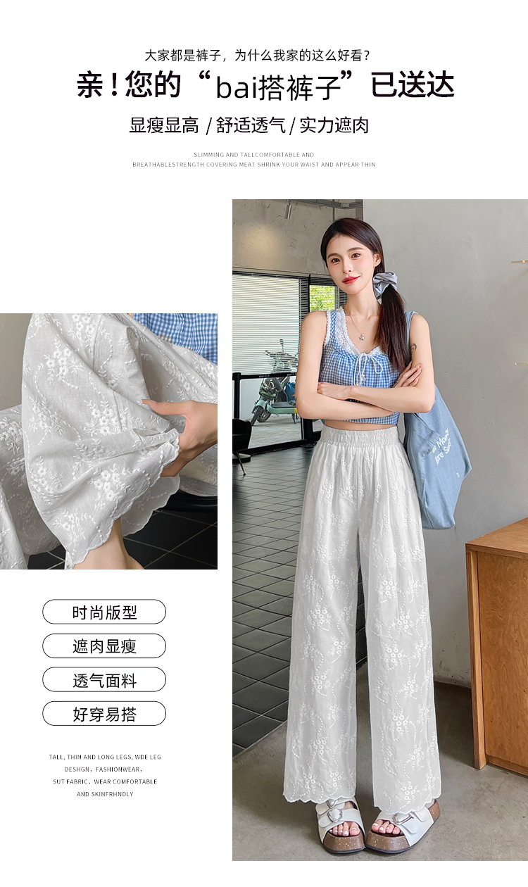 실사 여름 새로운 얇은 스타일 화이트 홀로우 아웃 레이스 자수 벽오동 바지 캐주얼 루즈핏 스트레이트 와이드 레깅스 바지