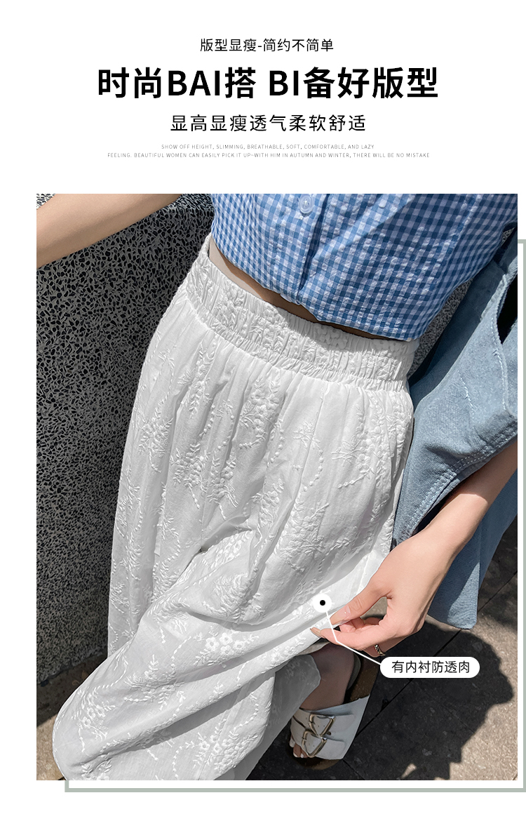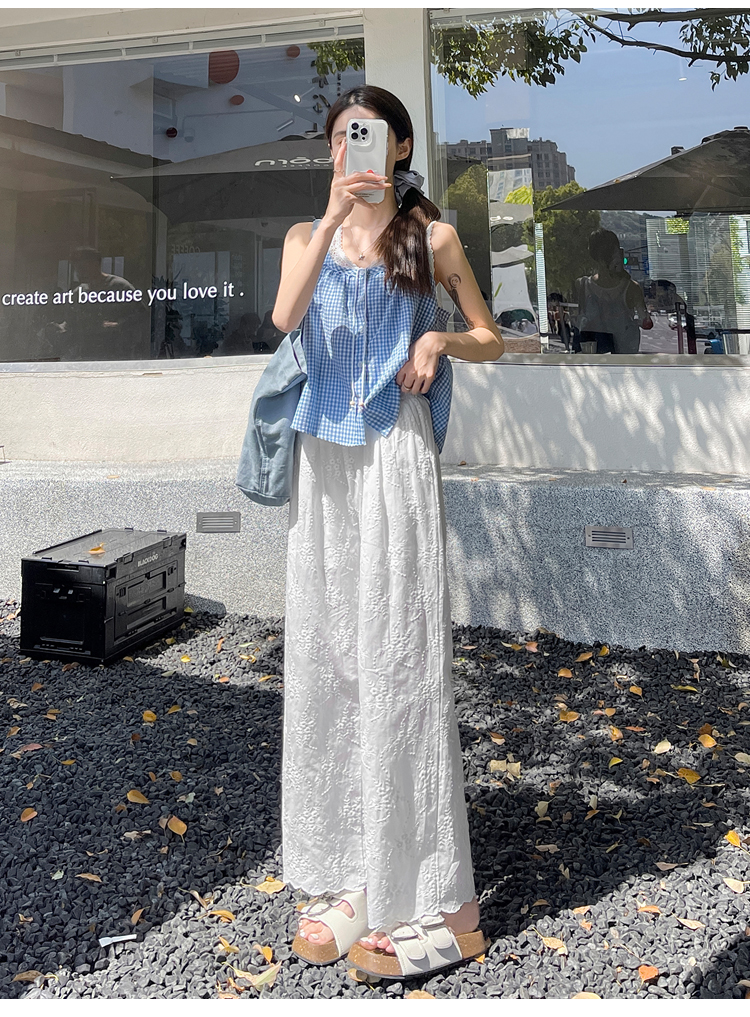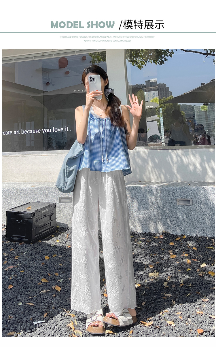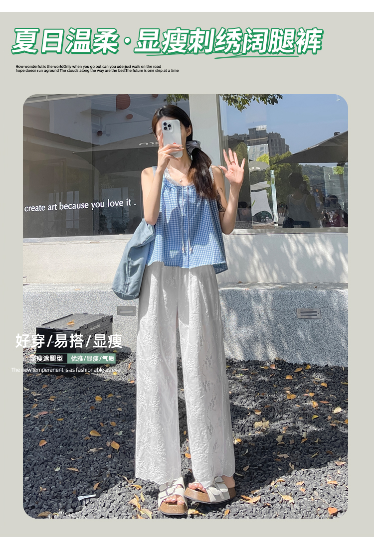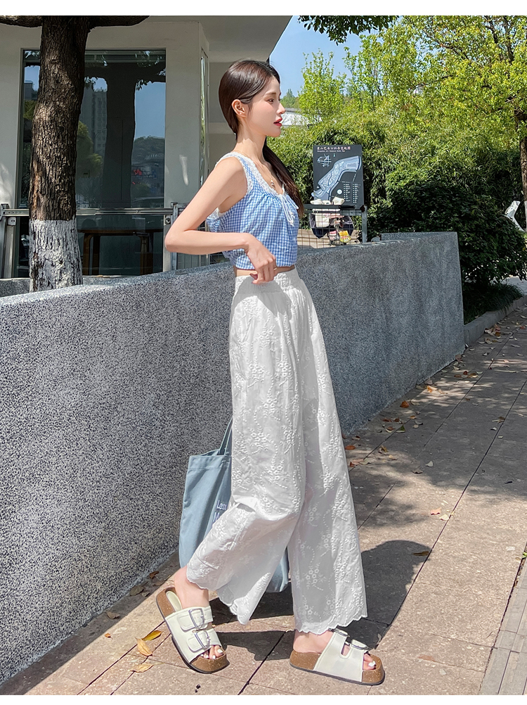실사 여름 새로운 얇은 스타일 화이트 홀로우 아웃 레이스 자수 벽오동 바지 캐주얼 루즈핏 스트레이트 와이드 레깅스 바지