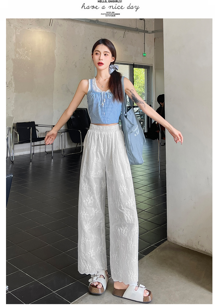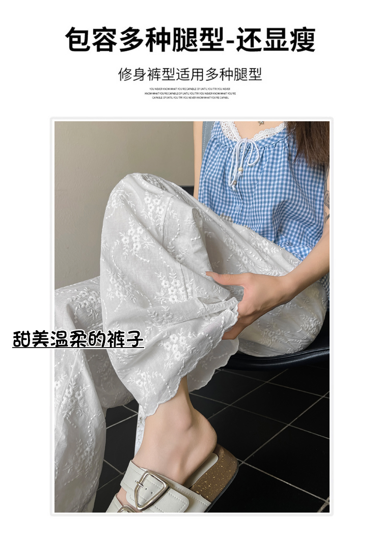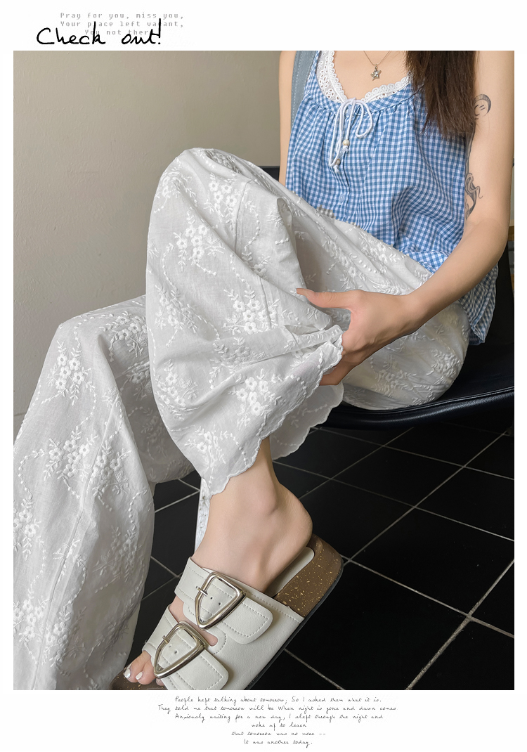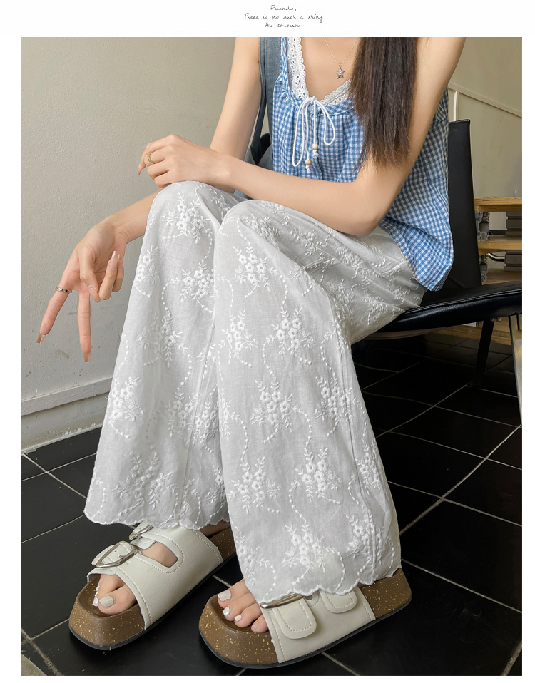 실사 여름 새로운 얇은 스타일 화이트 홀로우 아웃 레이스 나비 매듭 자수 캐주얼 루즈핏 스트레이트 와이드 레깅스 바지