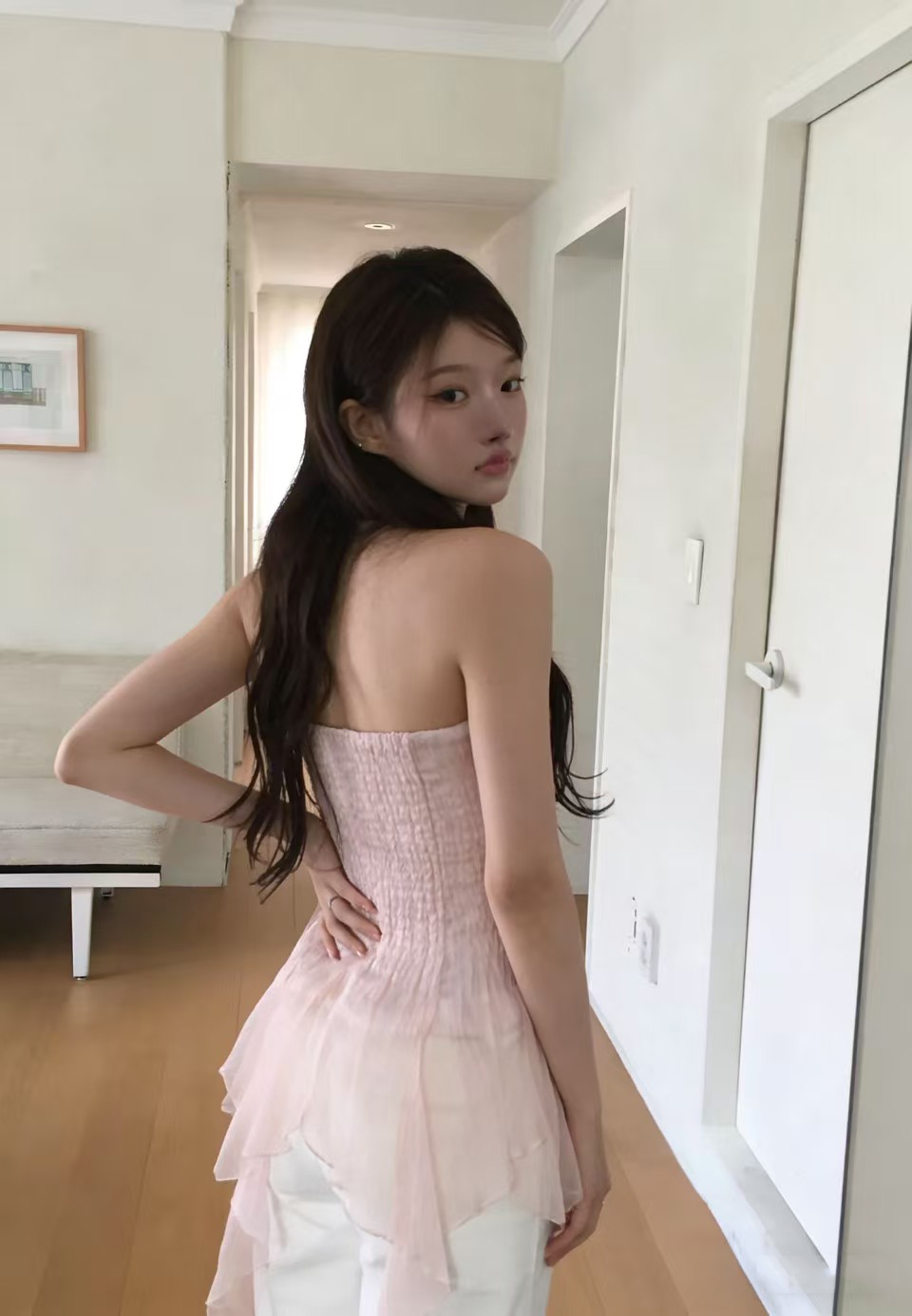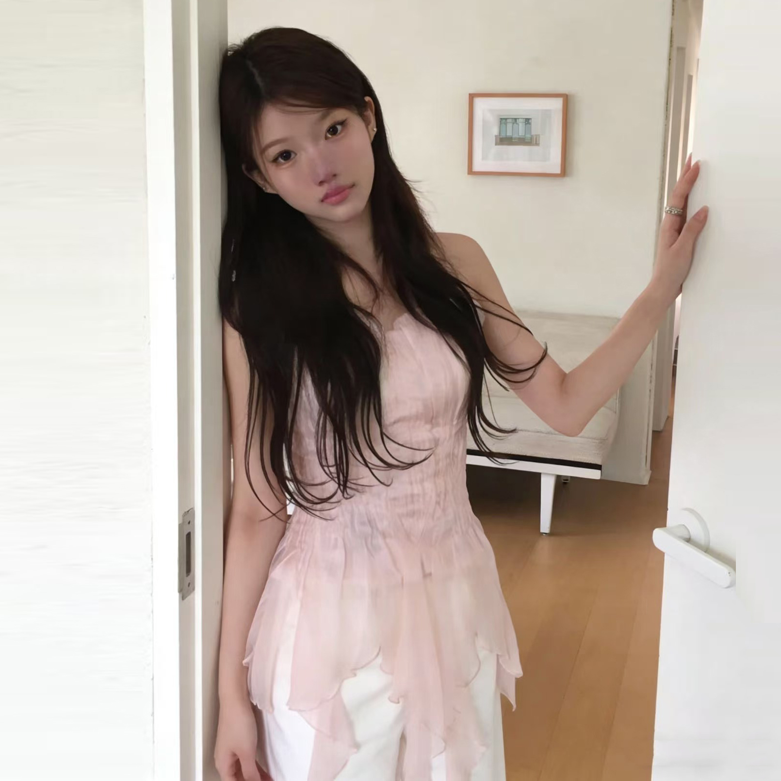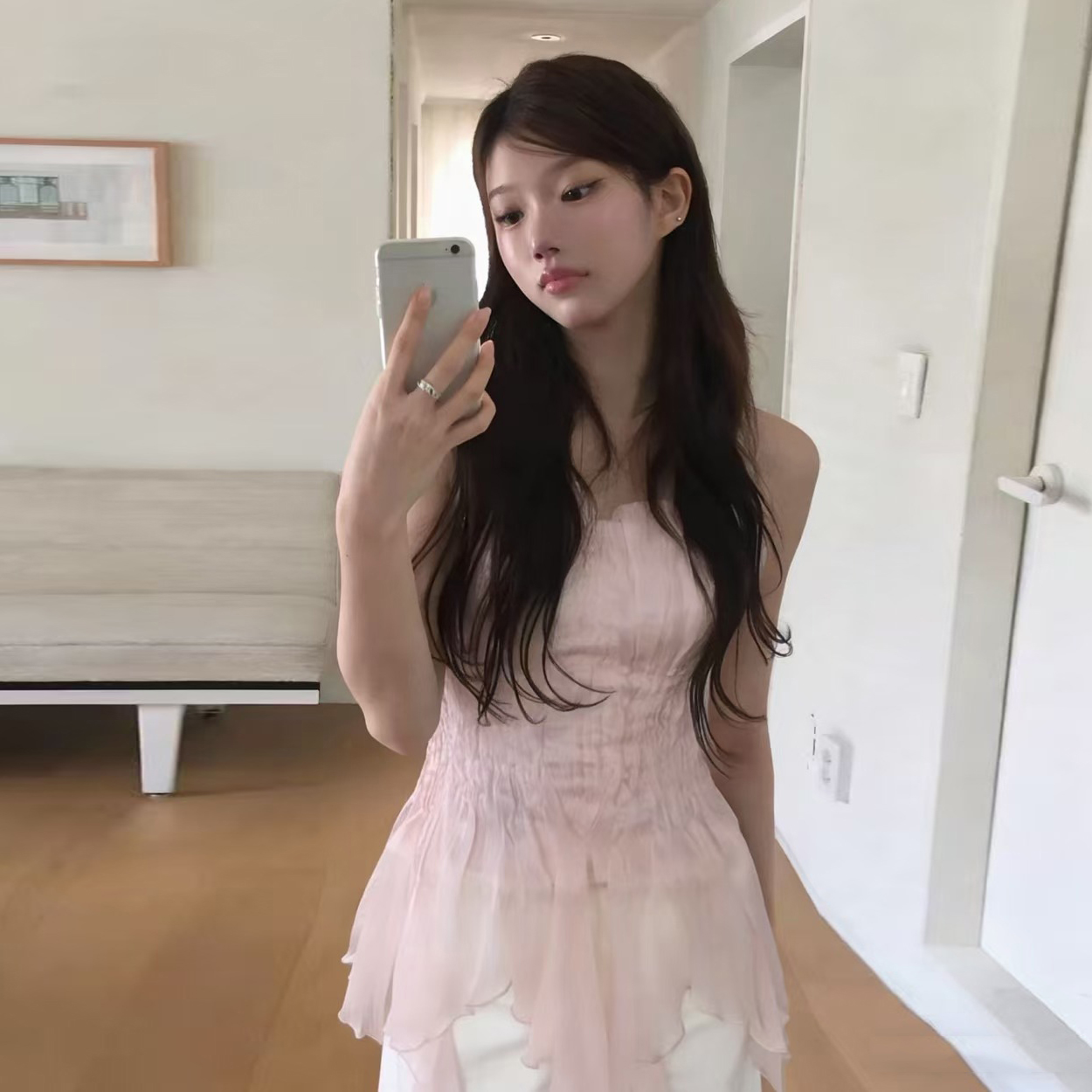 크기 있음 업데이트 실사 프랑스식 섹시함 무거운 작업 오프숄더 튜브탑 조끼 디자인 센스 작은 대중 슬림해 보이는 맨위