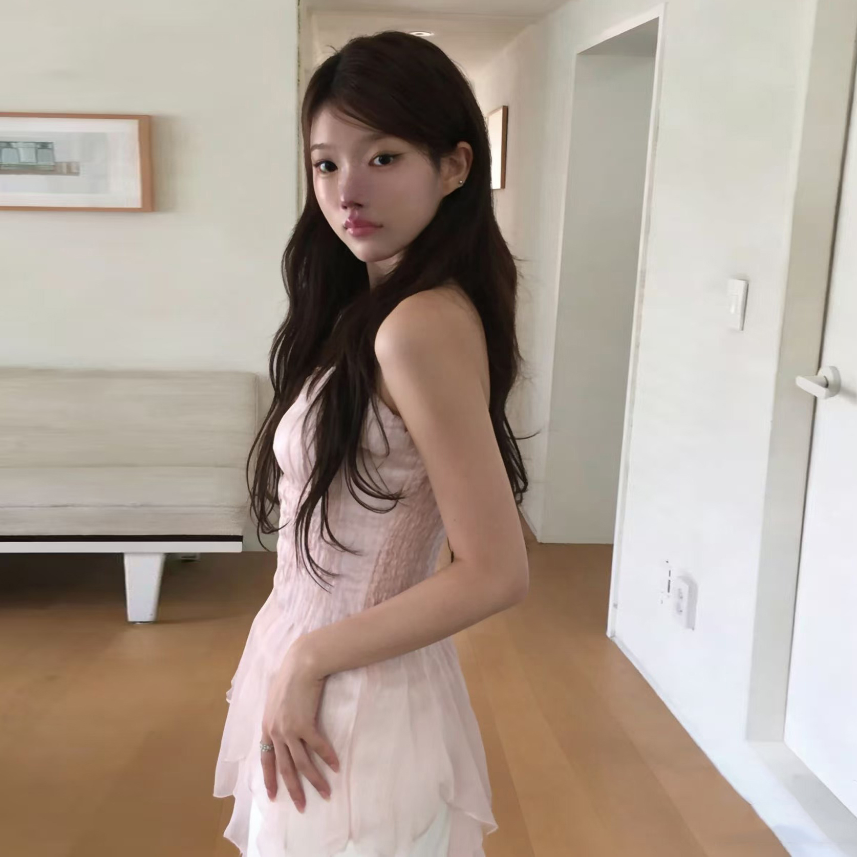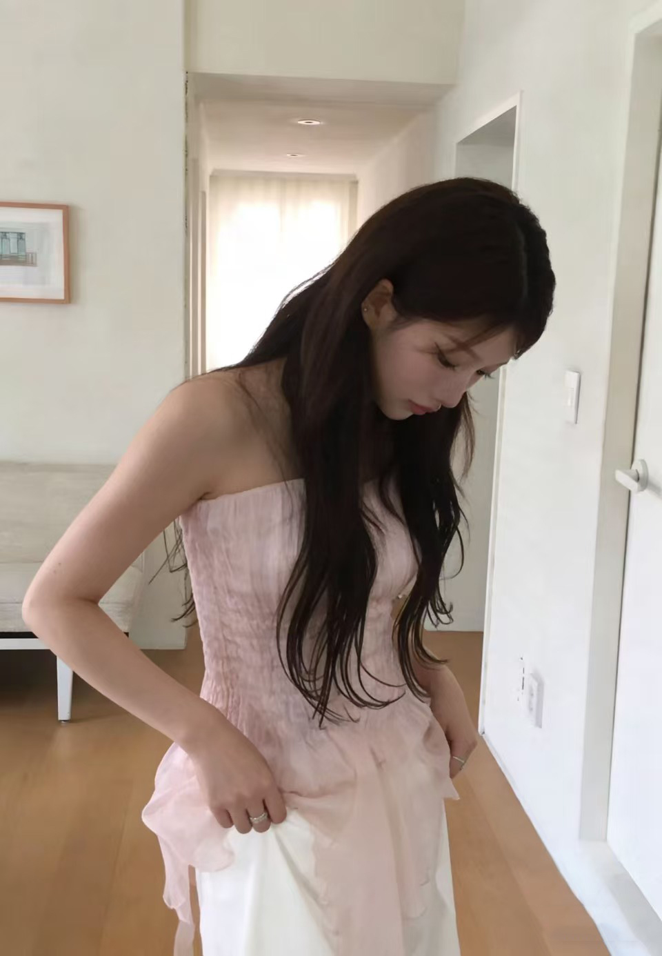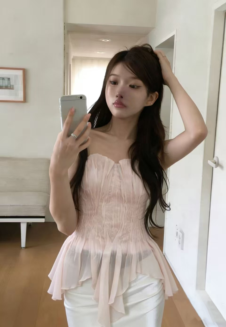 크기 있음 업데이트 실사 프랑스식 섹시함 무거운 작업 오프숄더 튜브탑 조끼 디자인 센스 작은 대중 슬림해 보이는 맨위