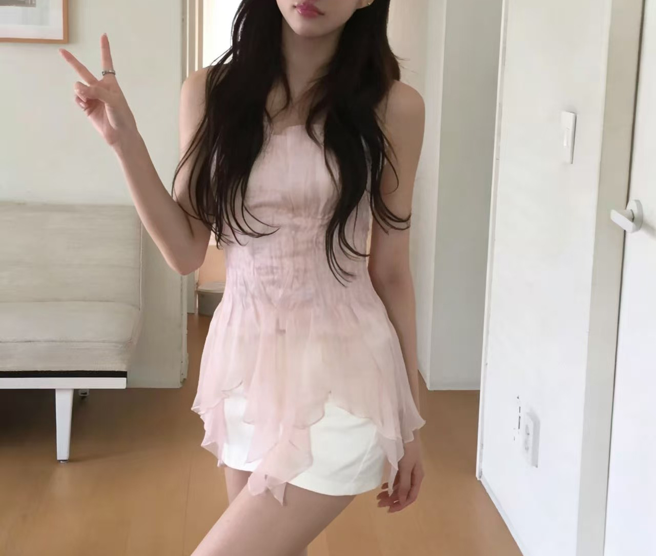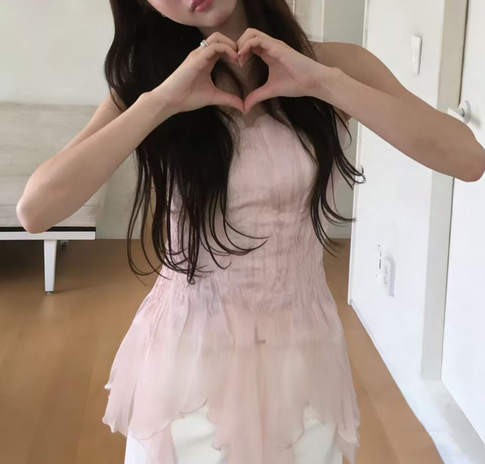 ins 보 주님 섹션 한 부서 귀여운 연령 감소 층 프릴 민소매 다용도 조끼 맨위