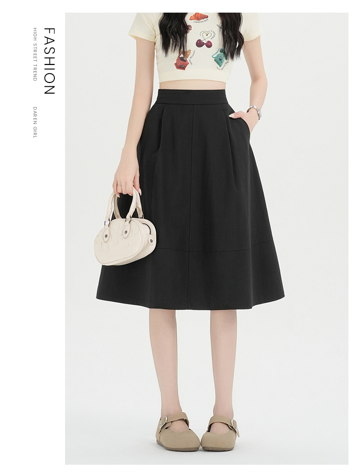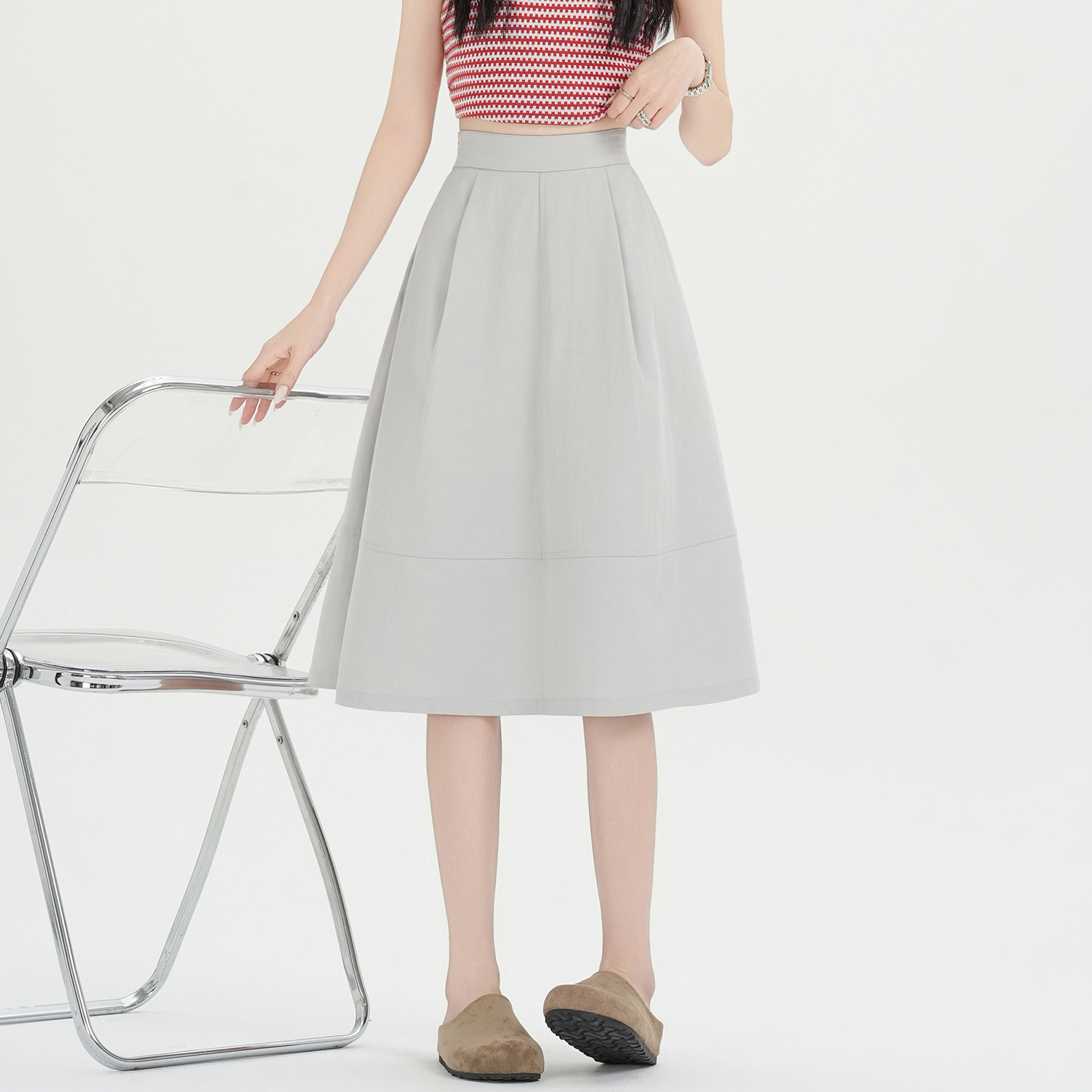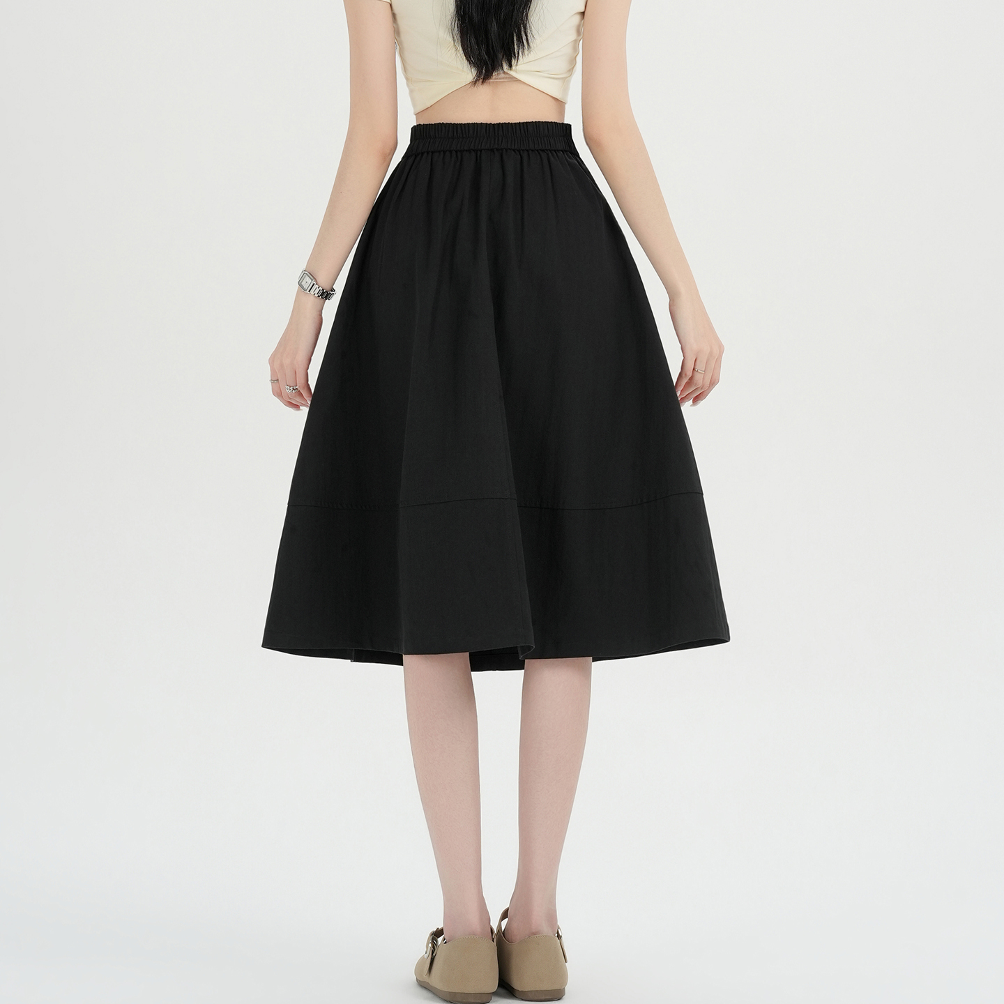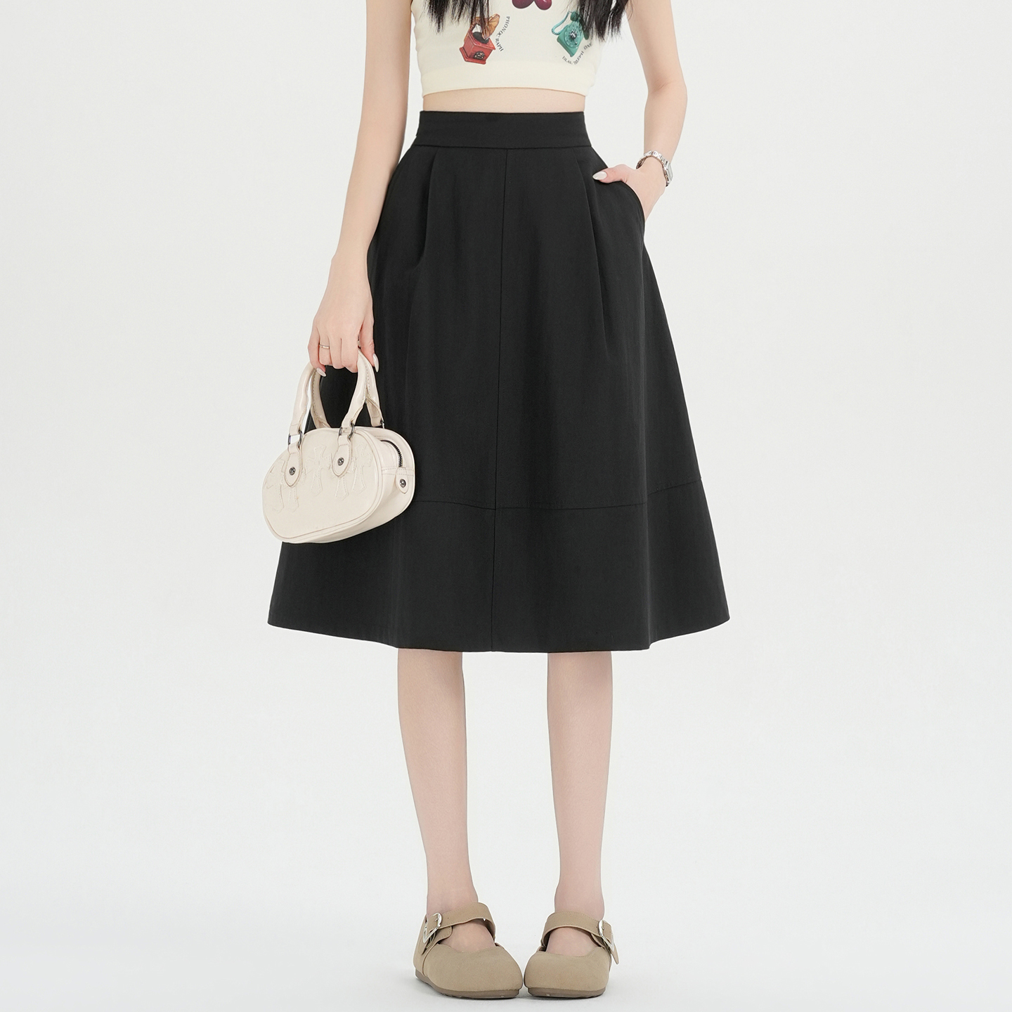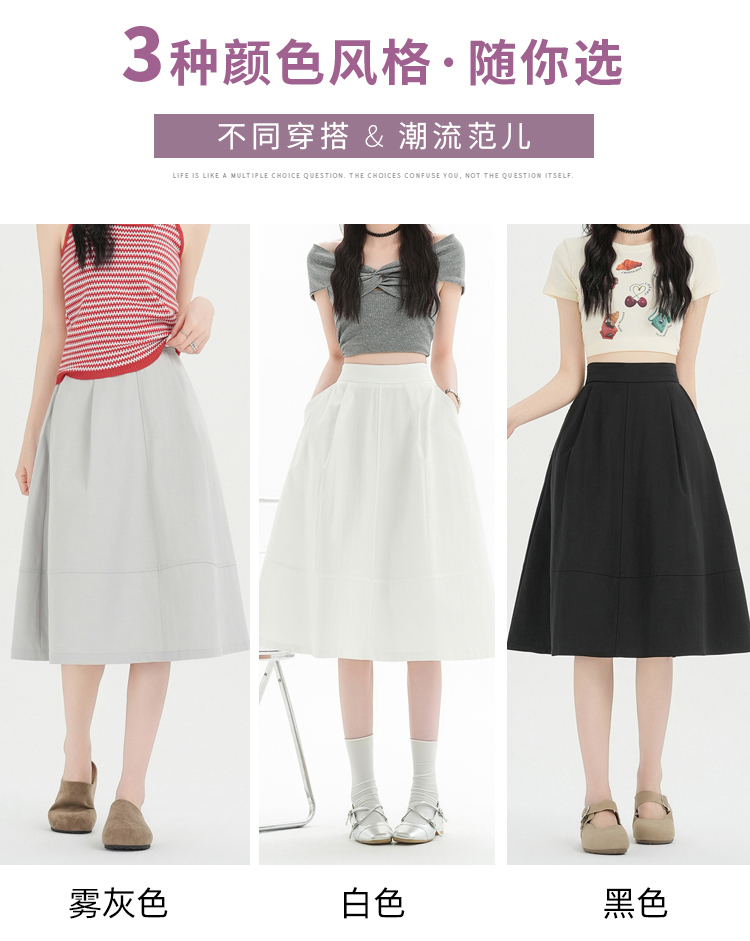 실사 2026 봄 여름 새로운 단색 다용도 중간 스커트 여성 하이웨이스트 슬림해 보이는 큰 진자 한 마디 롱 코트 우산 치마 반신 스커트