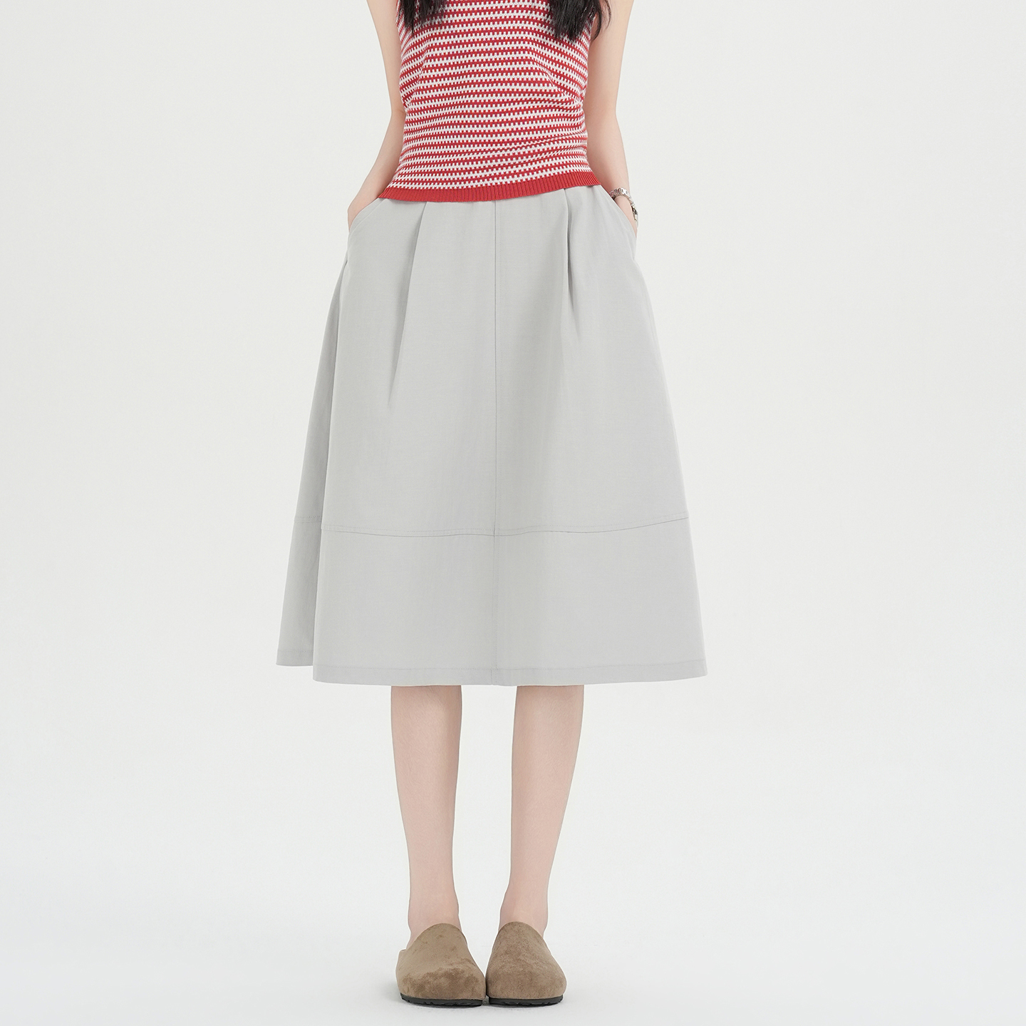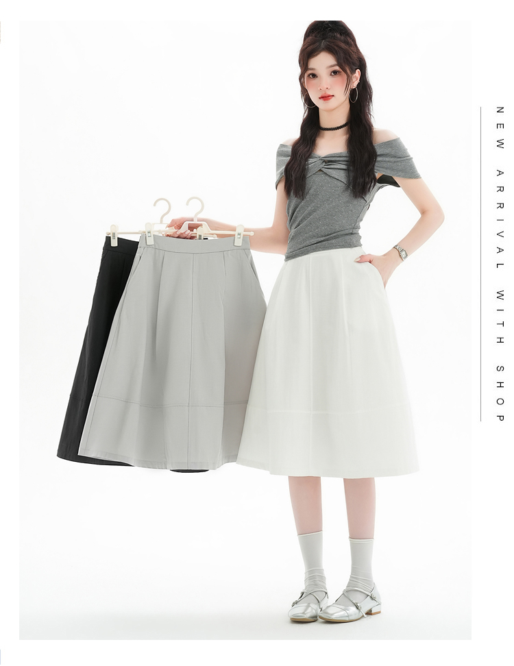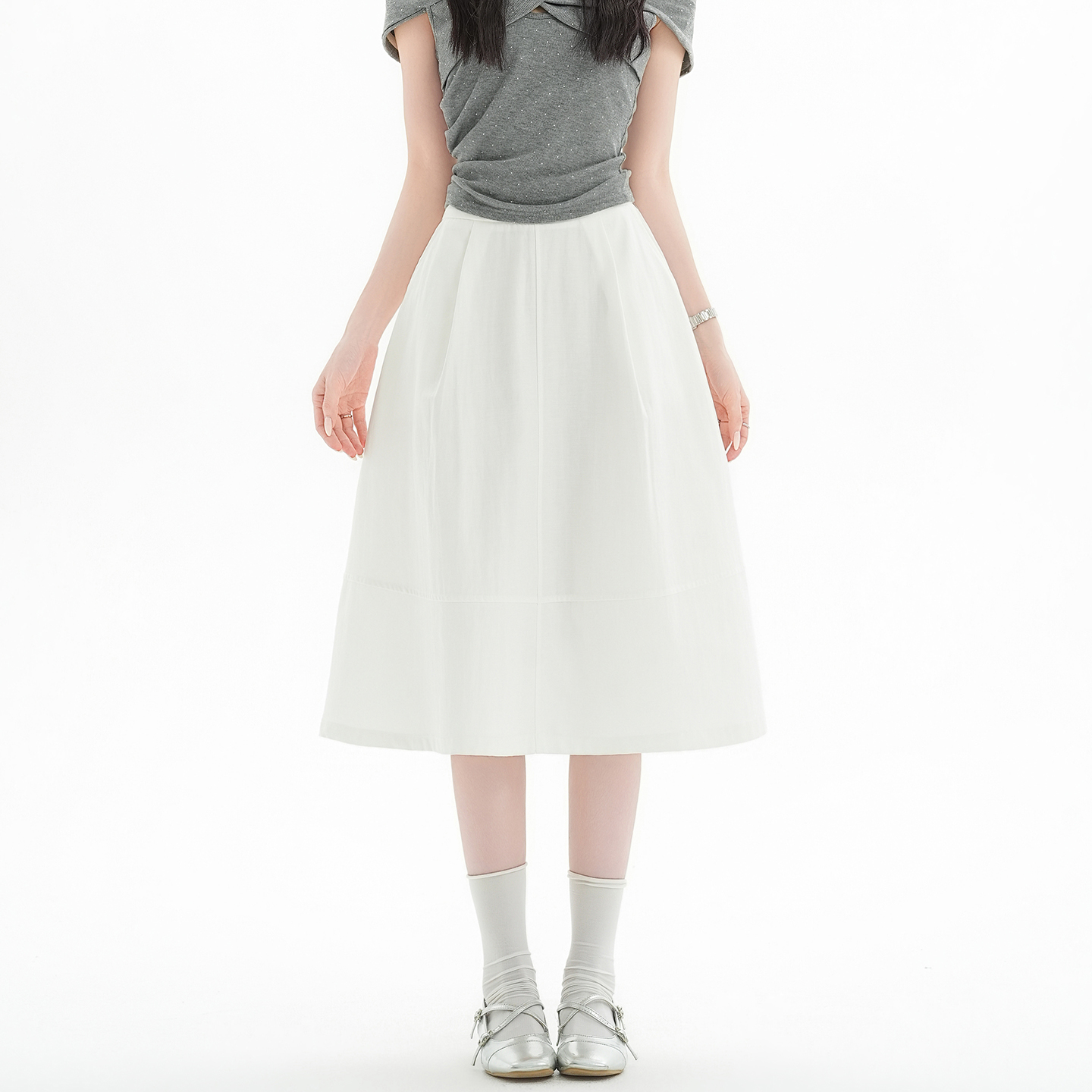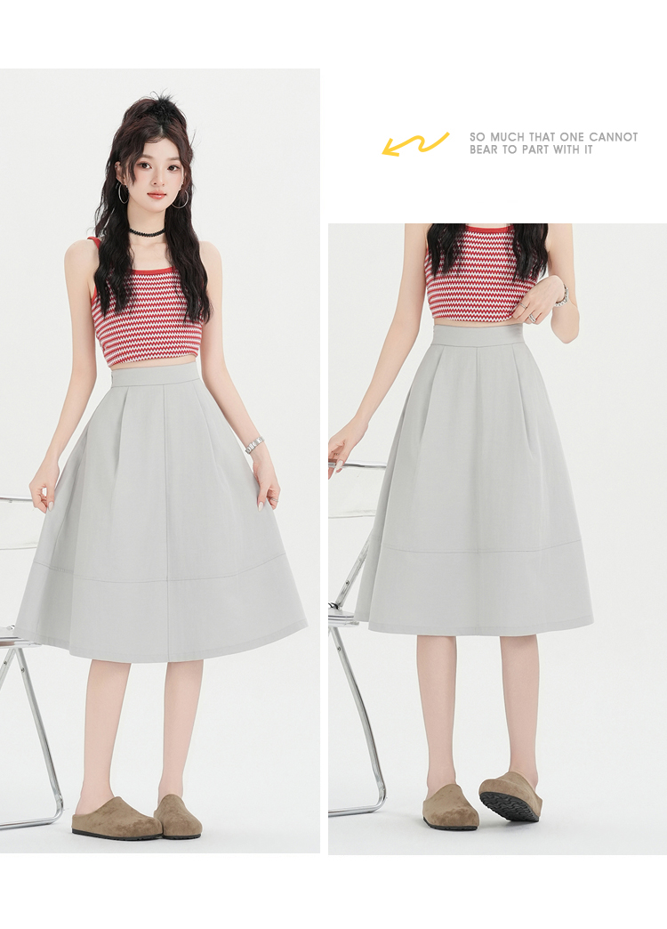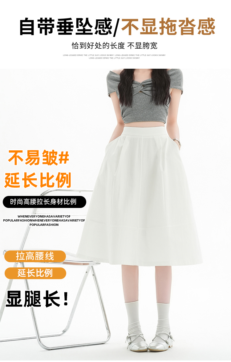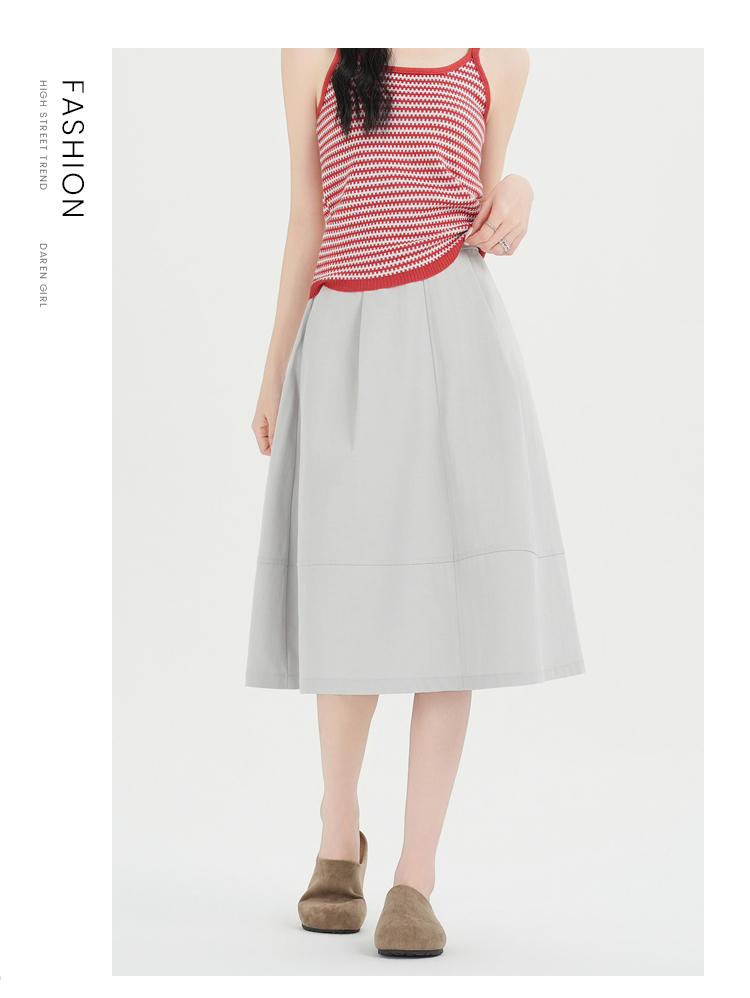 실사 2026 봄 여름 새로운 단색 다용도 중간 스커트 여성 하이웨이스트 슬림해 보이는 큰 진자 한 마디 롱 코트 우산 치마 반신 스커트