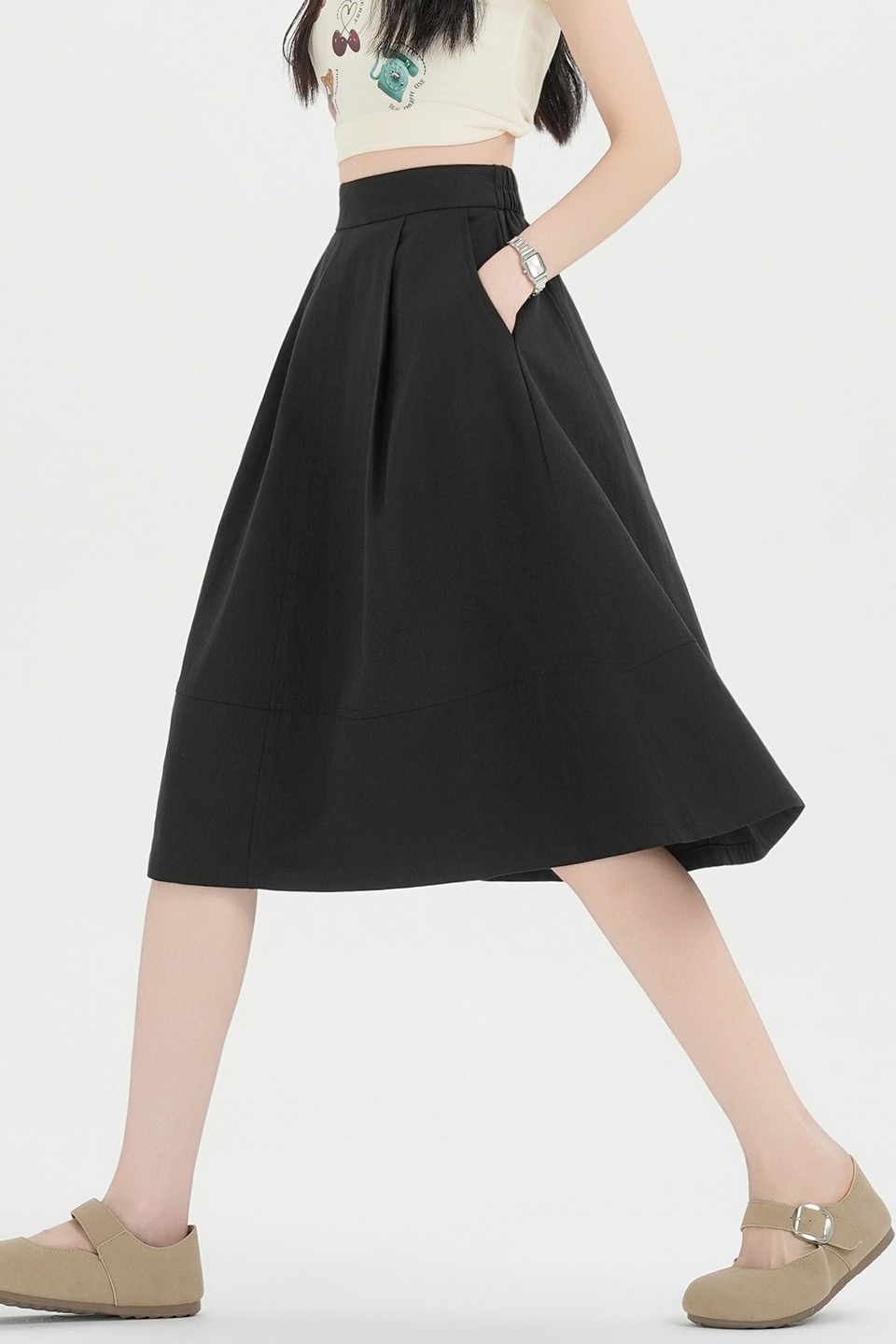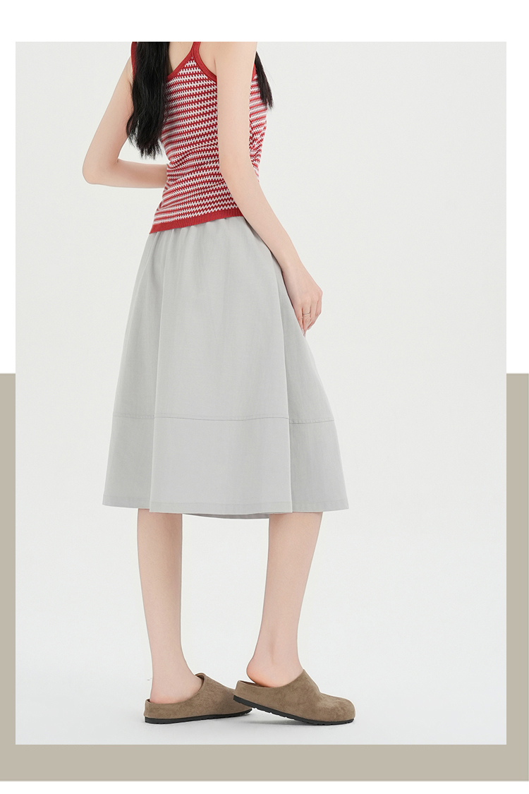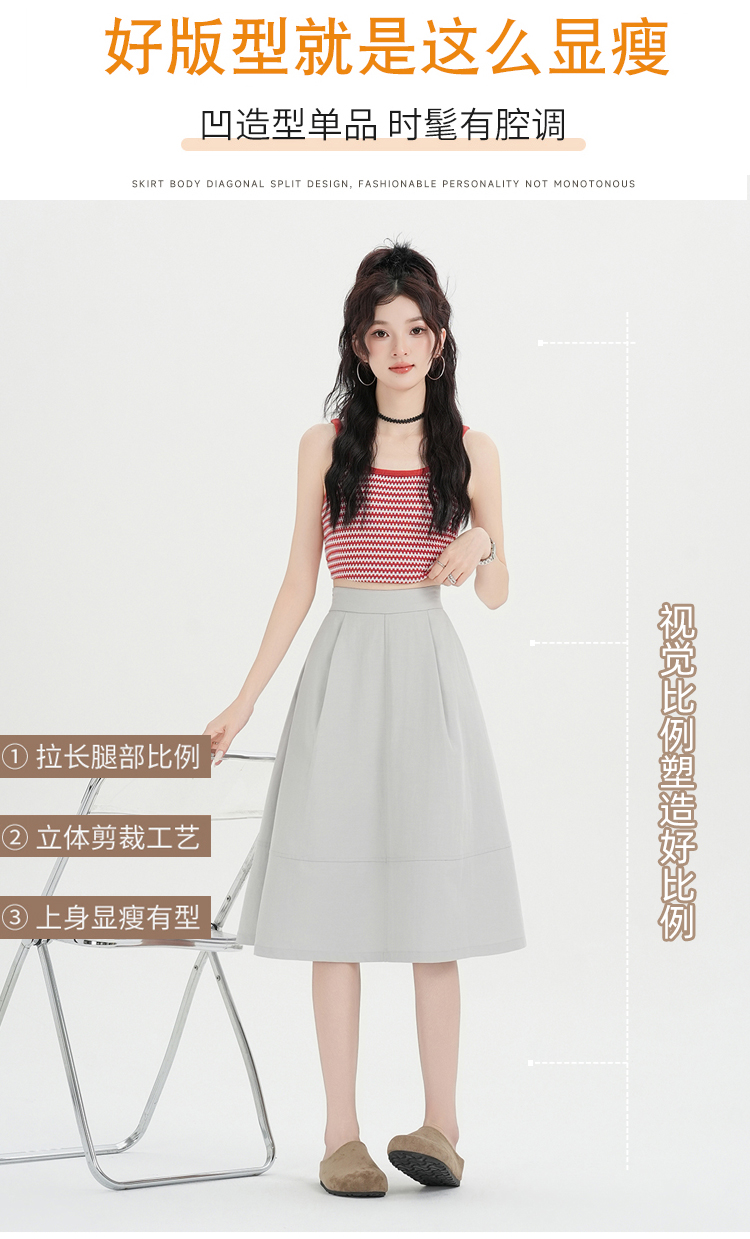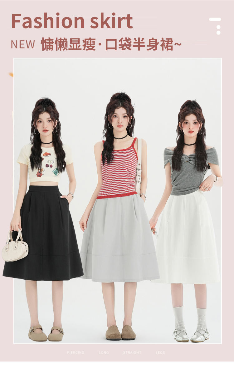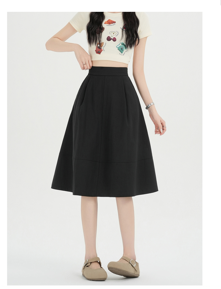 실사 2026 봄 여름 새로운 단색 다용도 중간 스커트 여성 하이웨이스트 슬림해 보이는 큰 진자 한 마디 롱 코트 우산 치마 반신 스커트