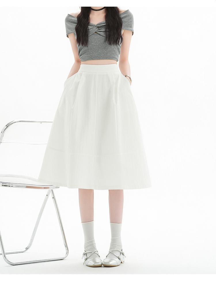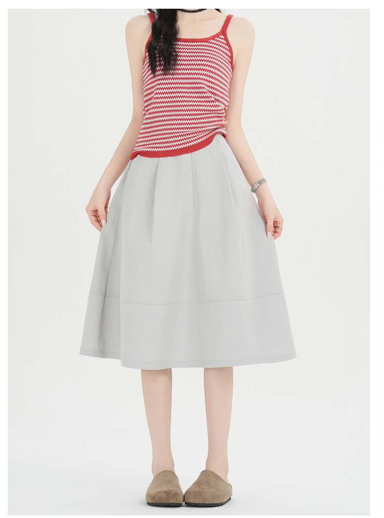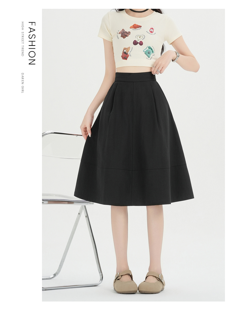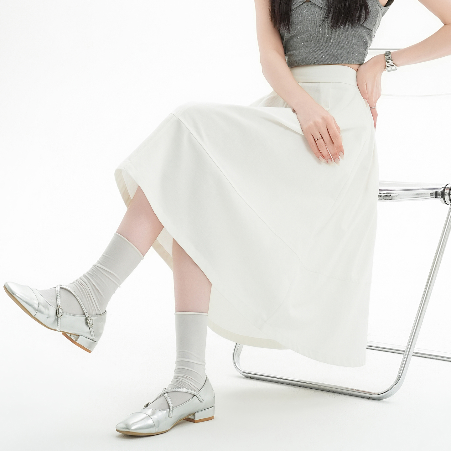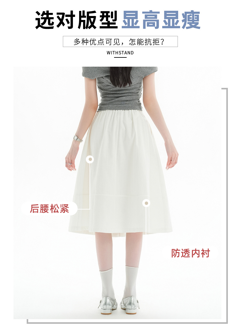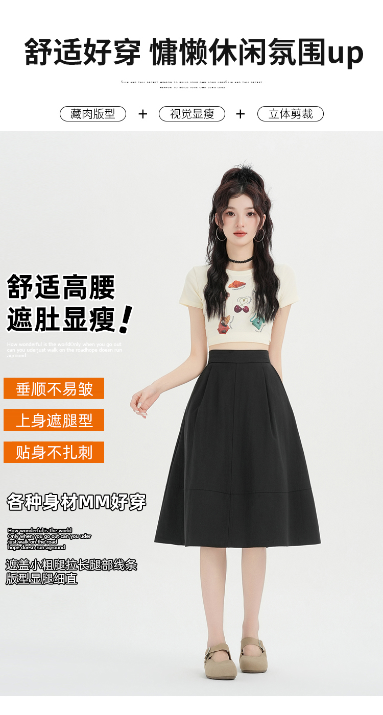실사 2026 봄 여름 새로운 단색 다용도 중간 스커트 여성 하이웨이스트 슬림해 보이는 큰 진자 한 마디 롱 코트 우산 치마 반신 스커트