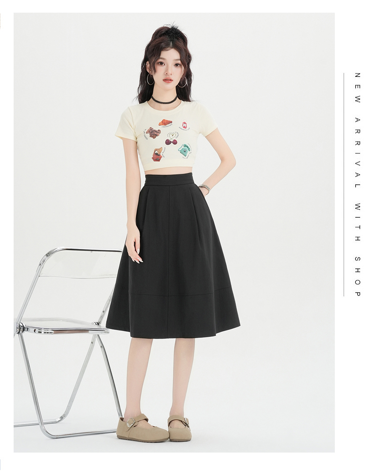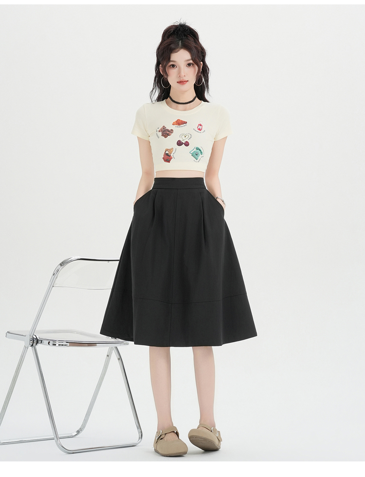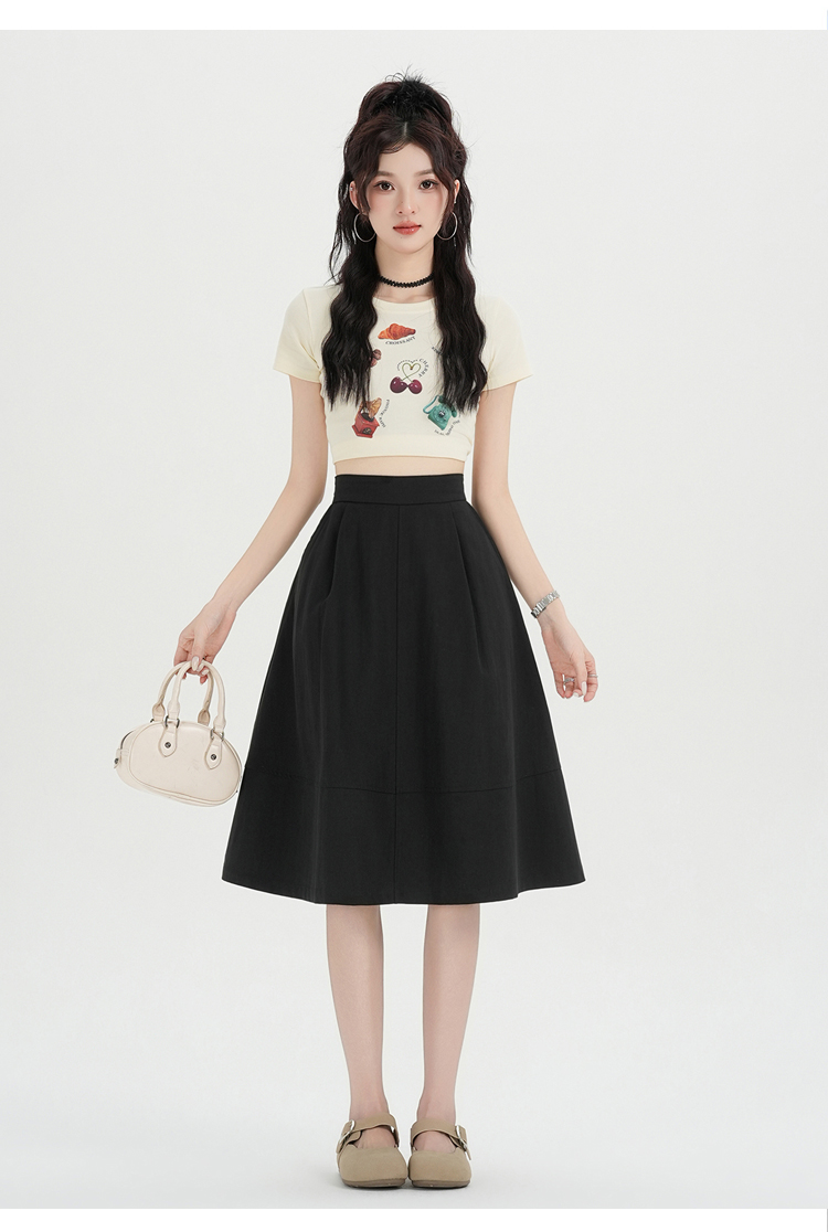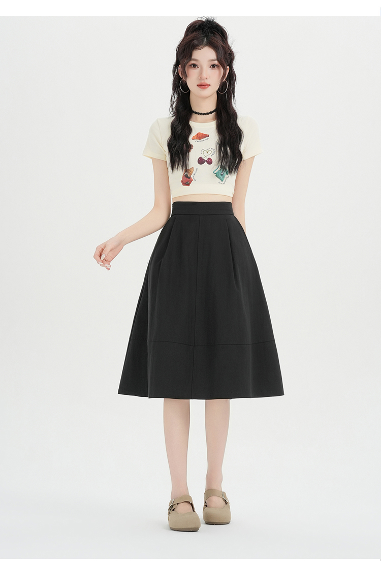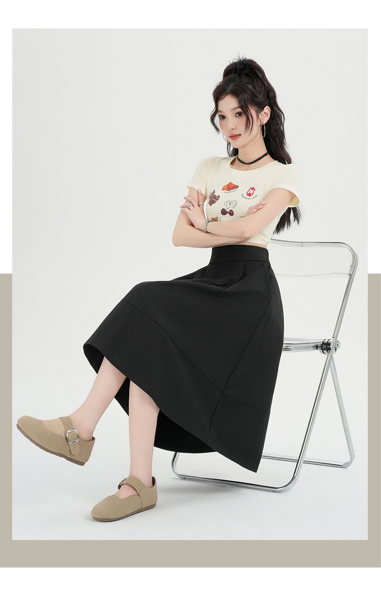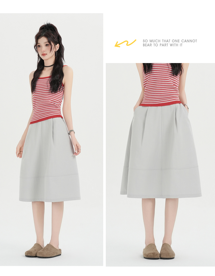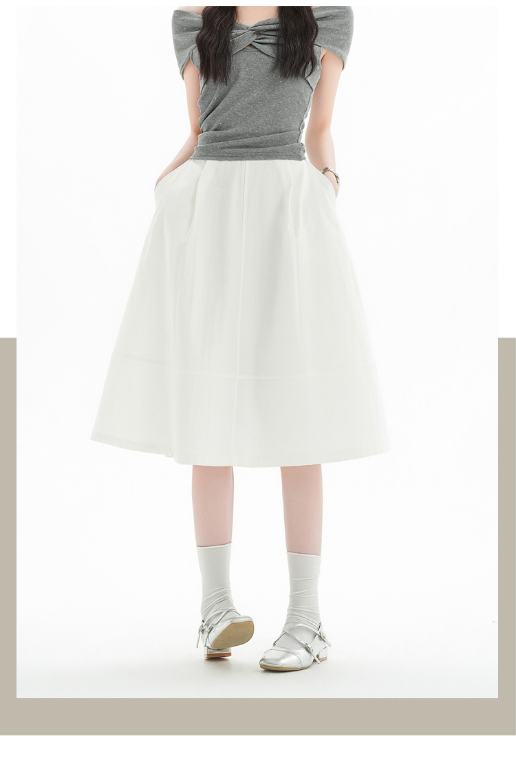 실사 2026 봄 여름 새로운 단색 다용도 중간 스커트 여성 하이웨이스트 슬림해 보이는 큰 진자 한 마디 롱 코트 우산 치마 반신 스커트