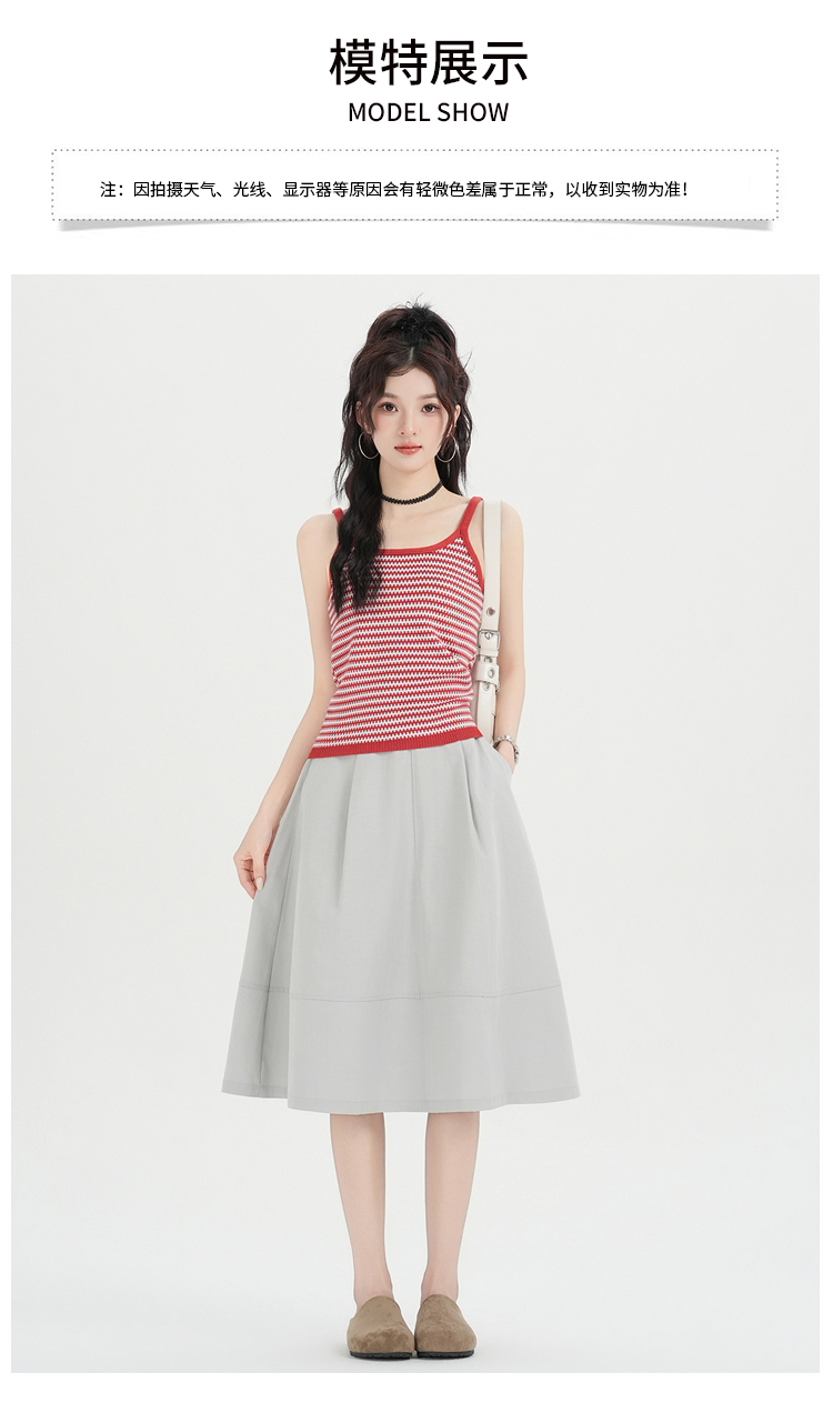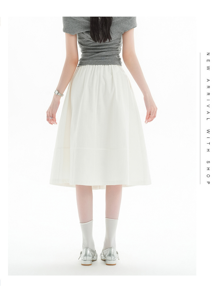 실사 한국 스타일 레트로 하이웨이스트 밴딩 반신 스커트 2026 봄 여름 새로운 큰 진자 A라인 스커트 도루 센스 다용도 여성