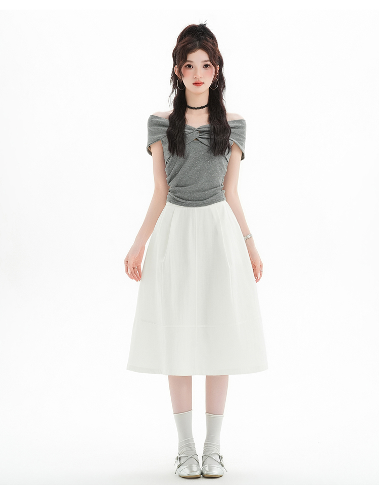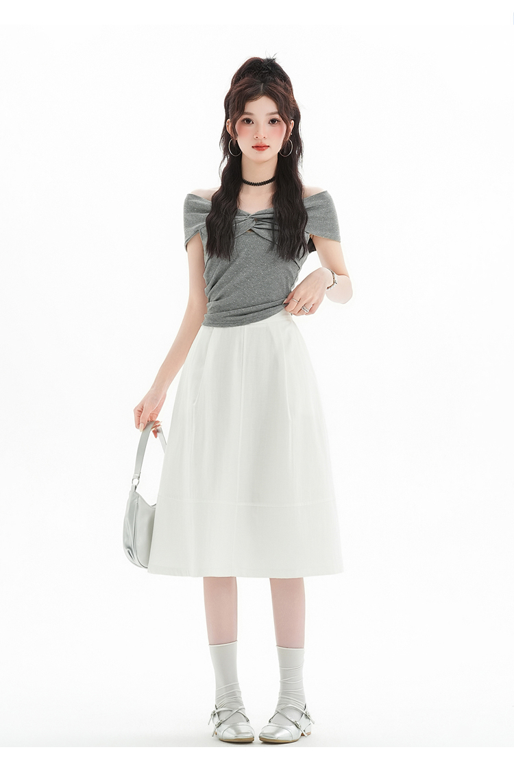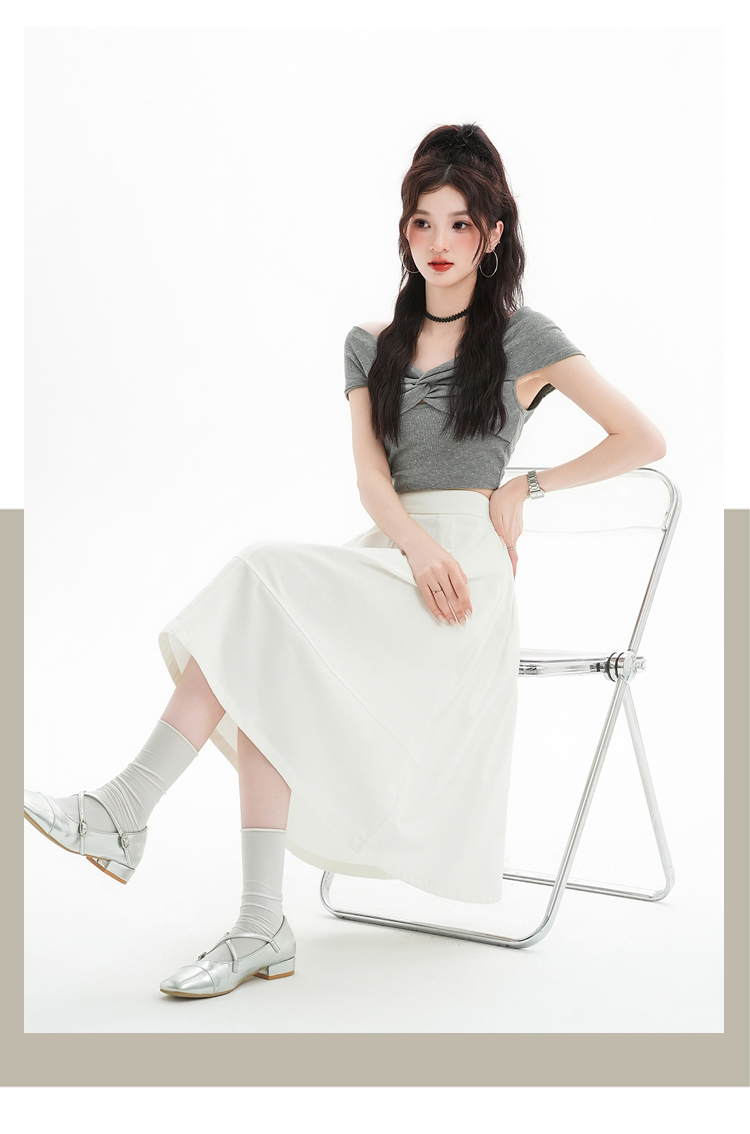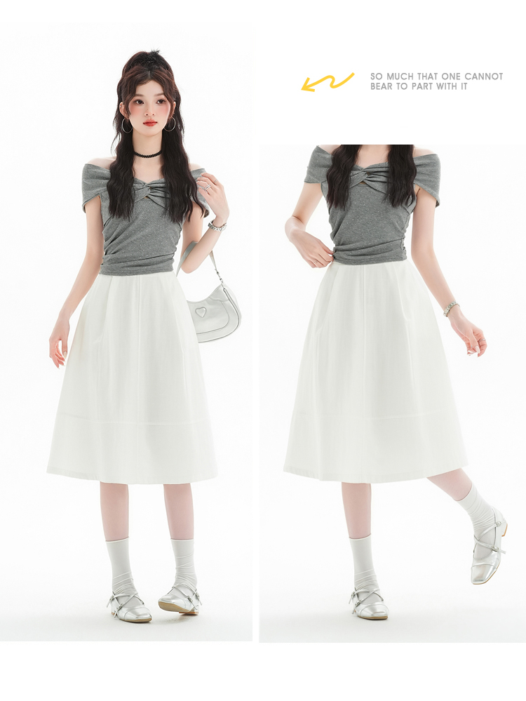 실사 2026 봄 여름 새로운 미니멀리즘 작은 대중 디자인 품격 화이트 꽃밭 중간 길이 반신 스커트 꽃밭 반 스커트