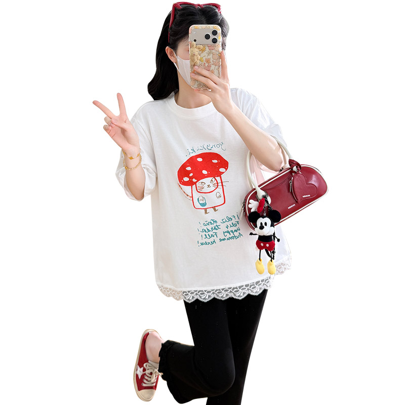 실사 신제품 임산부 봄 여름 외출용 디자인 센스 루즈핏 다용도 연령 감소 티셔츠 복부 지지 슬림해 보이는 치마 세트