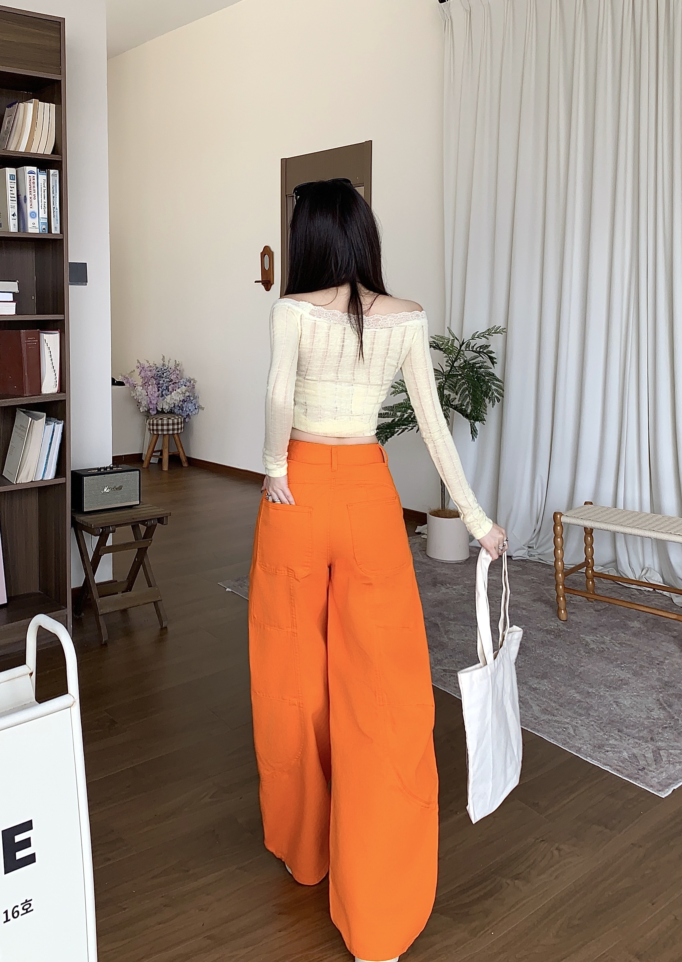 주간 실크 아마 화이트 패션 루즈핏 슬림해 보이는 다용도 배 모양 마이크로 지방 착용 가져 가라. 캐주얼 바지 여성 여름 스트레이트 바닥 청소 바지