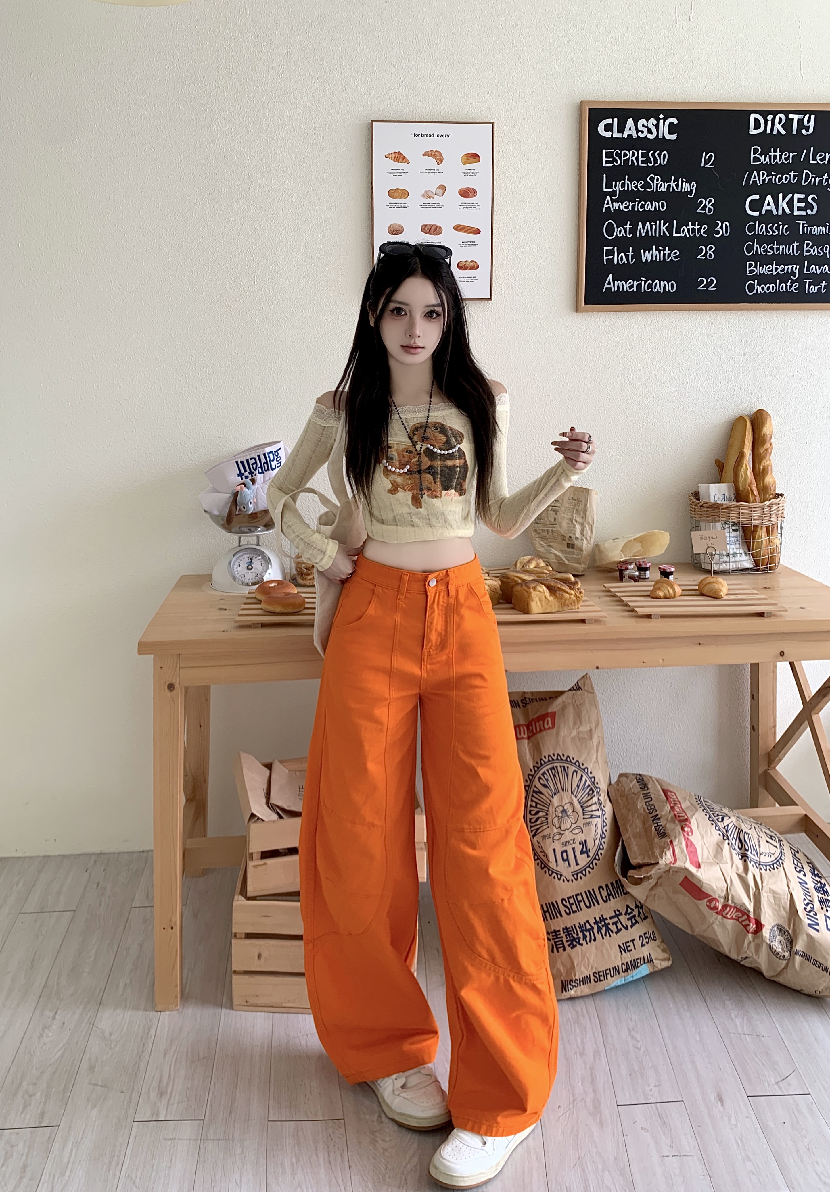 실사 정가 아메리칸 레트로 무거운 작업 불규칙 폴딩 데님 모통이 칼 바지 겨울 핫걸 넓은 다리 낫 바지