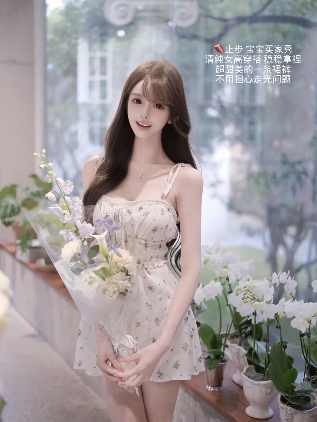 실사 정가 디자인 센스 핫걸 홀로우 아웃 트임 청바지 수공 3 차원 꽃 루즈핏 와이드 레그 팬츠 긴 바지