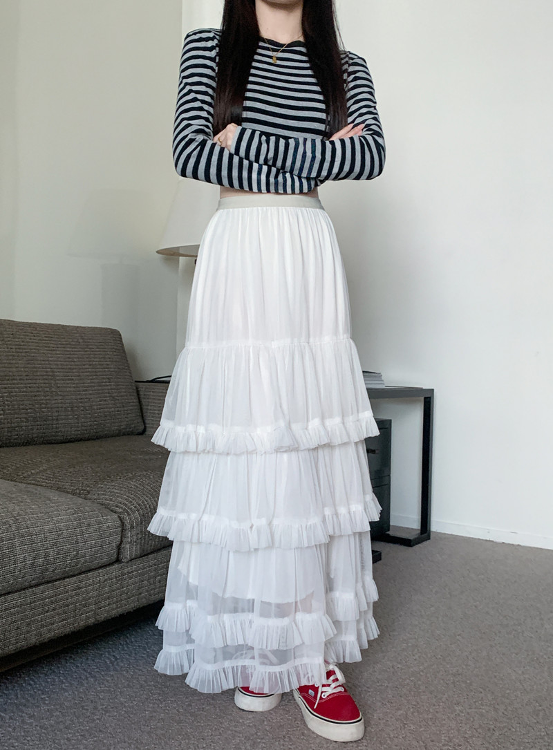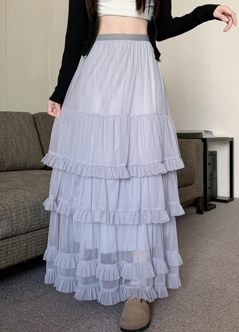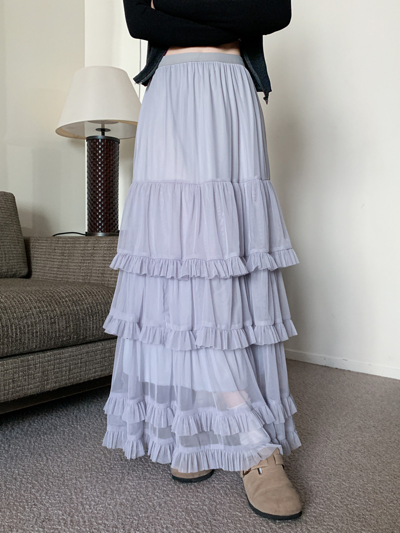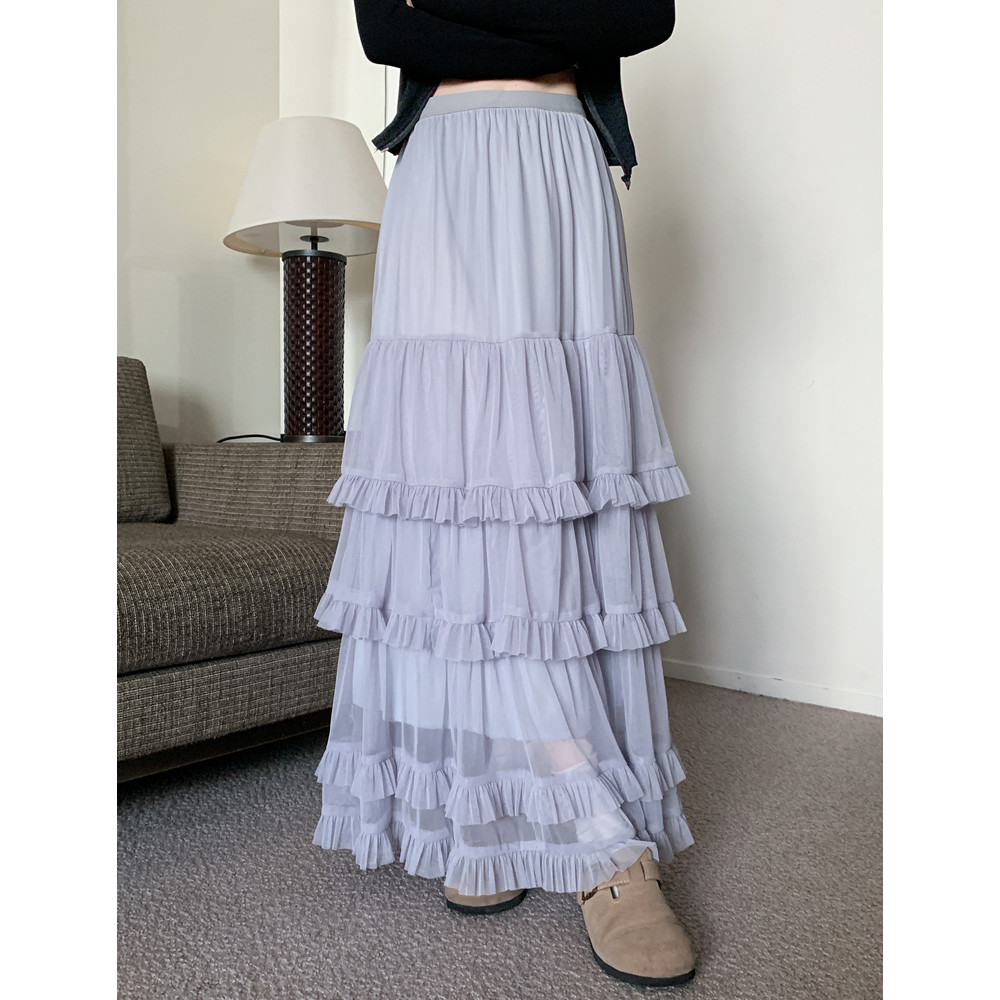 프릴 망사 플리츠 케이크 드레스 빅 사이즈 여성 의류 여름 하이웨이스트 도루 센스 반신 스커트 큰 진자 한 마디 롱 스커트 단어