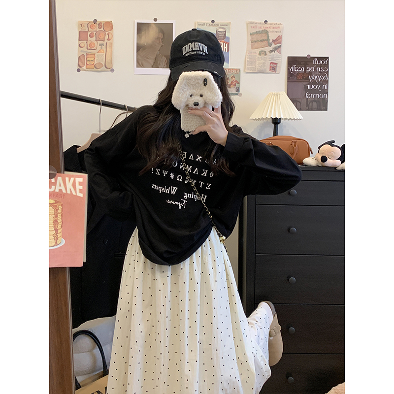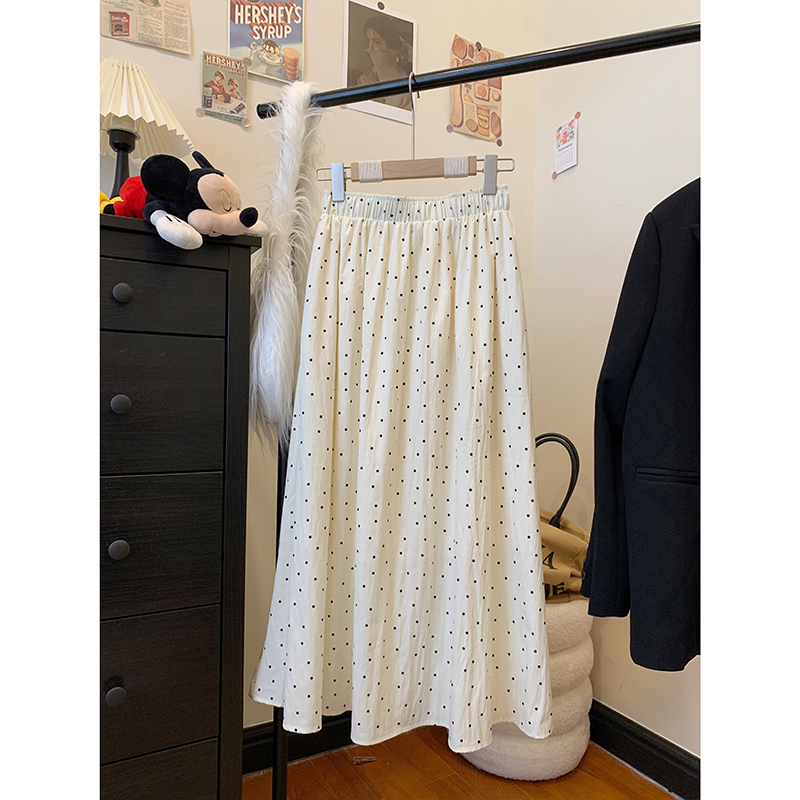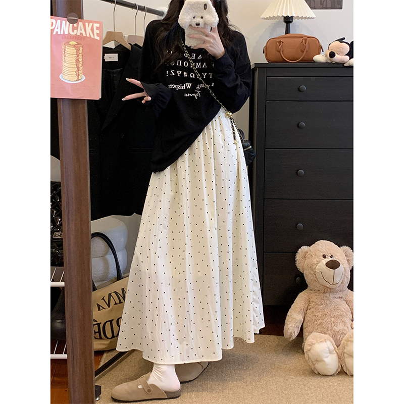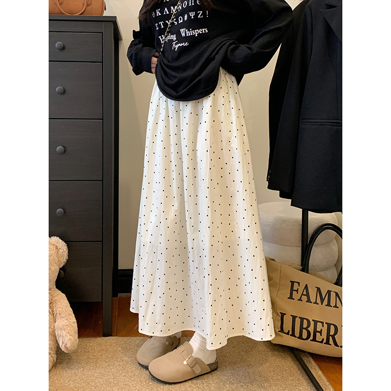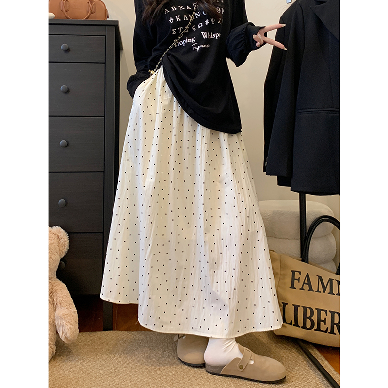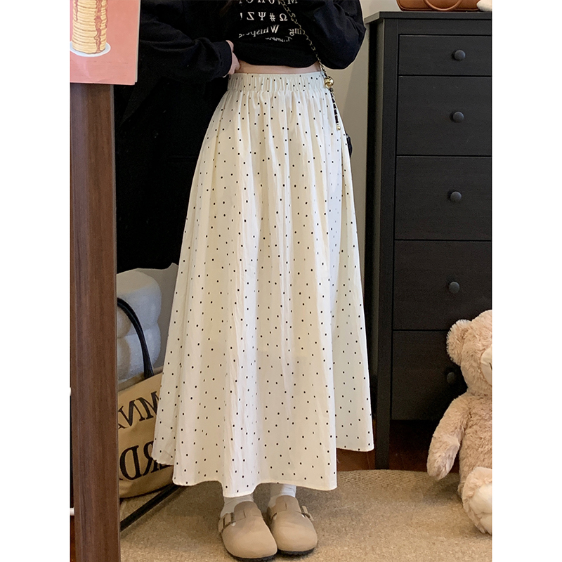 실사 빅 사이즈 여성 의류 도트 무늬 한 마디 반신 스커트 부드러운 한 부서 다용도 표지 넓적 다리 중간 길이 하이웨이스트 슬림해 보이는 롱 스커트