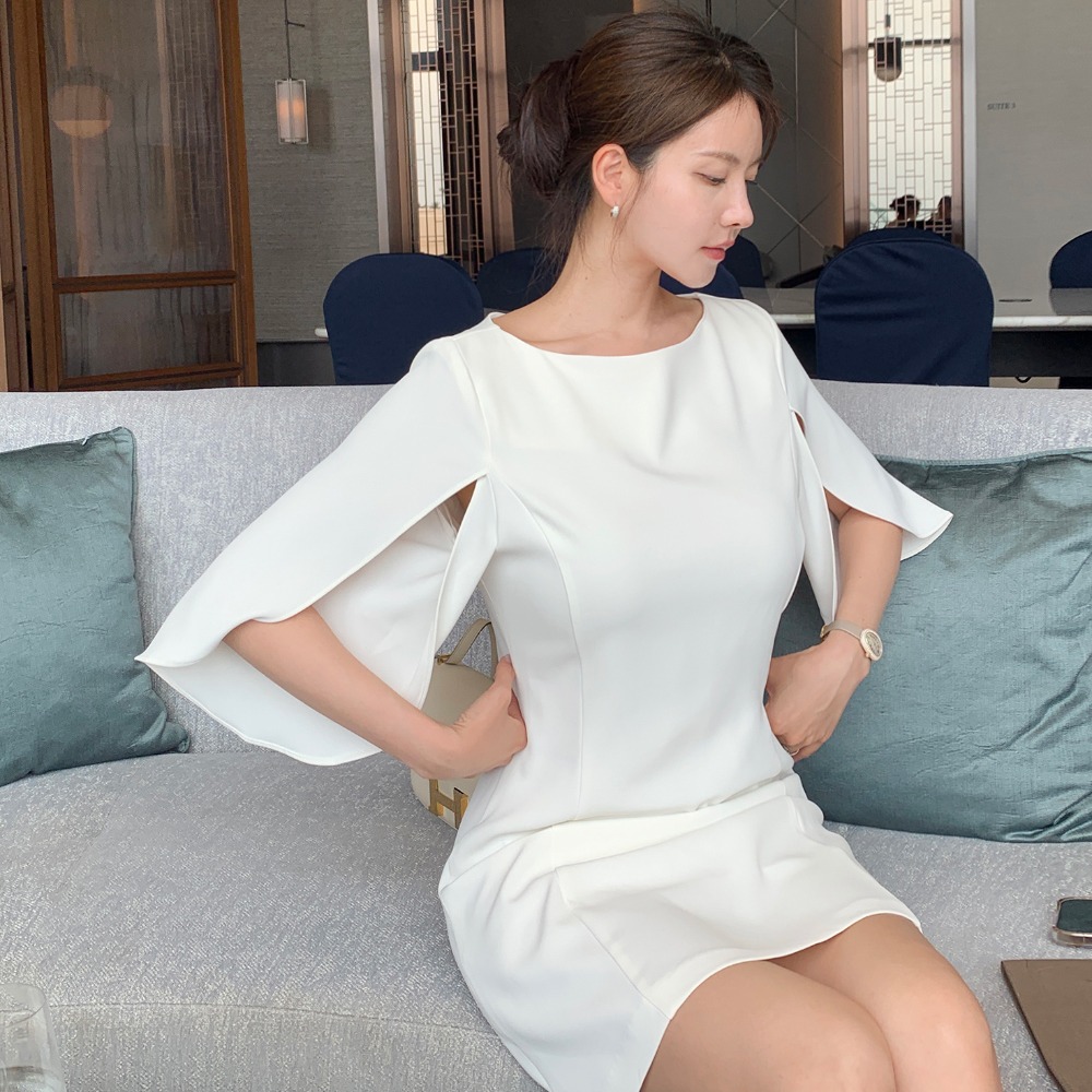 크기 있음 업데이트 프랑스식 우아함 품격 레트로 트임 소매 허리 수축 슬림해 보이는 빛 요리 한 바람 드레스